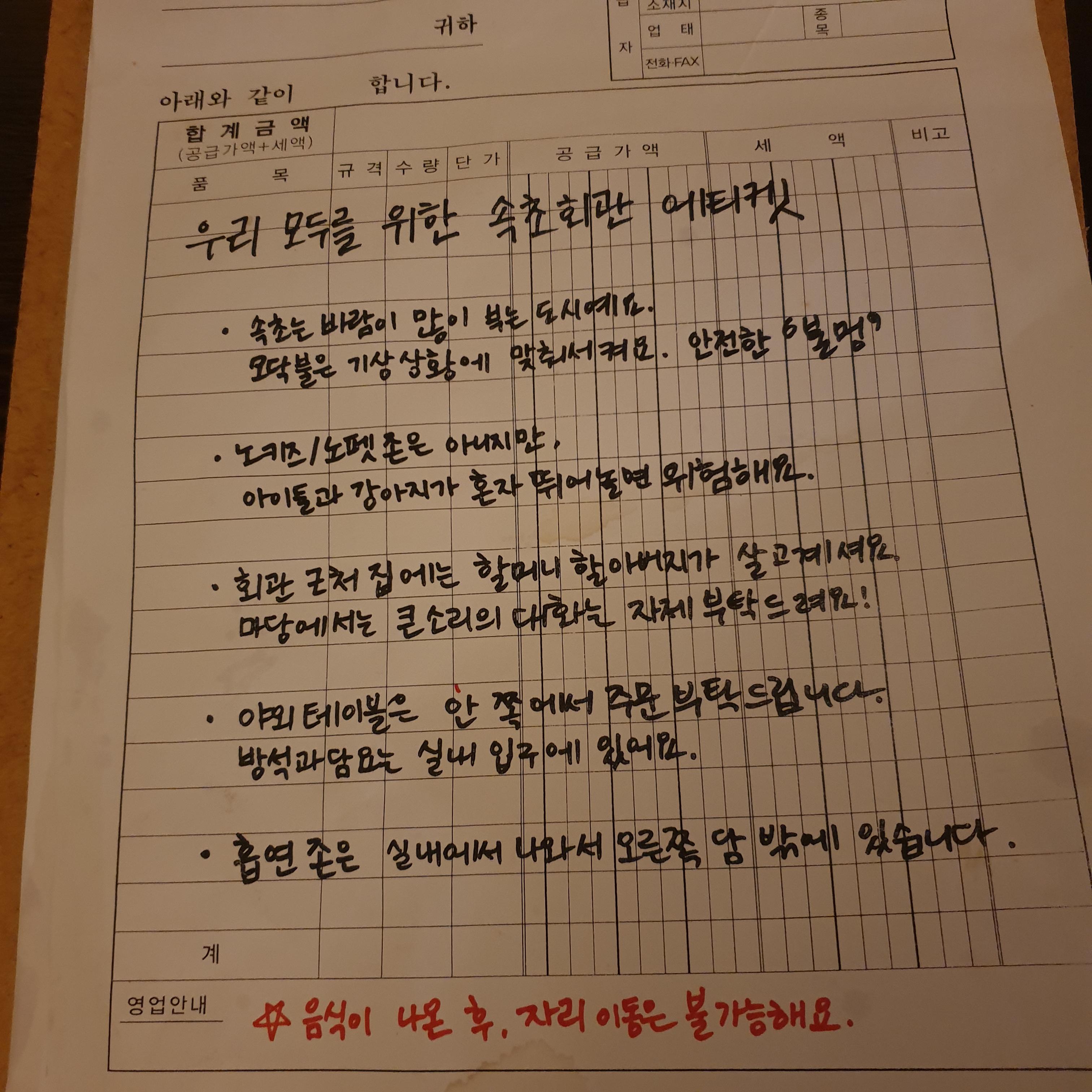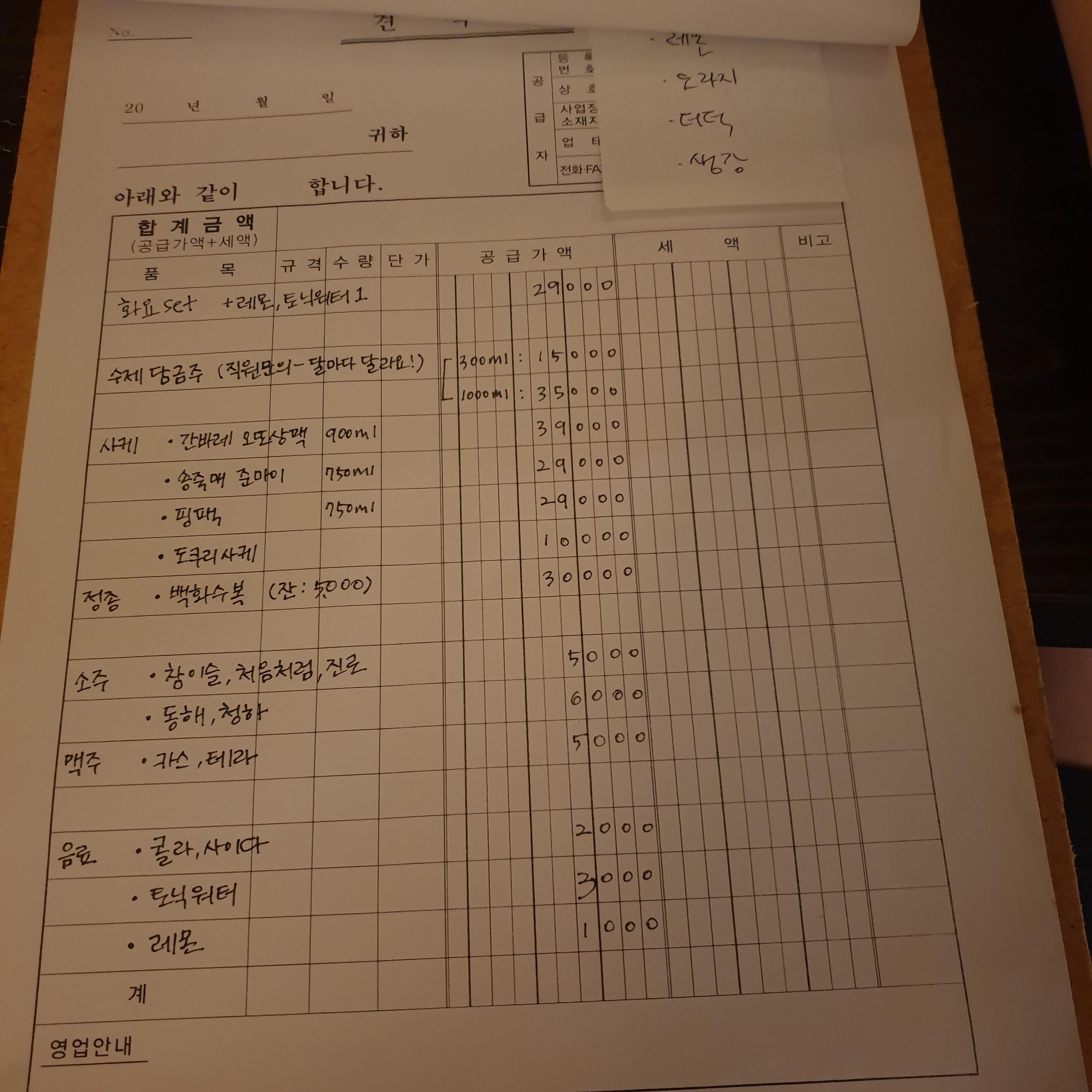 참고로 술주문 좀 더한거같은데 핸드폰 베터리가 다되어서 음식 사진과 술사진을 촬영을 못했습니다.