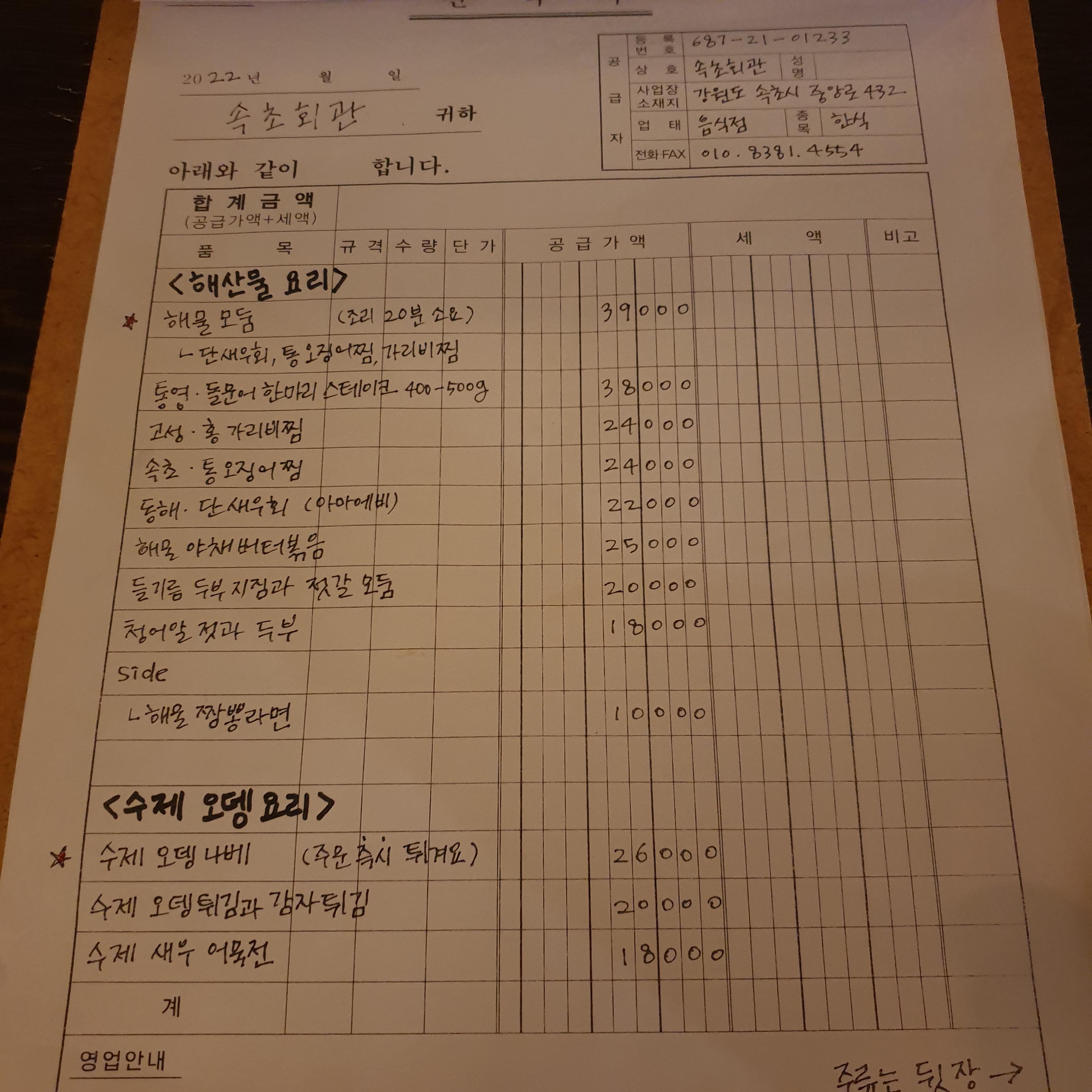 속초회관은 속초 등대항 장사항 근처에 위치한 요리주점입니다.
