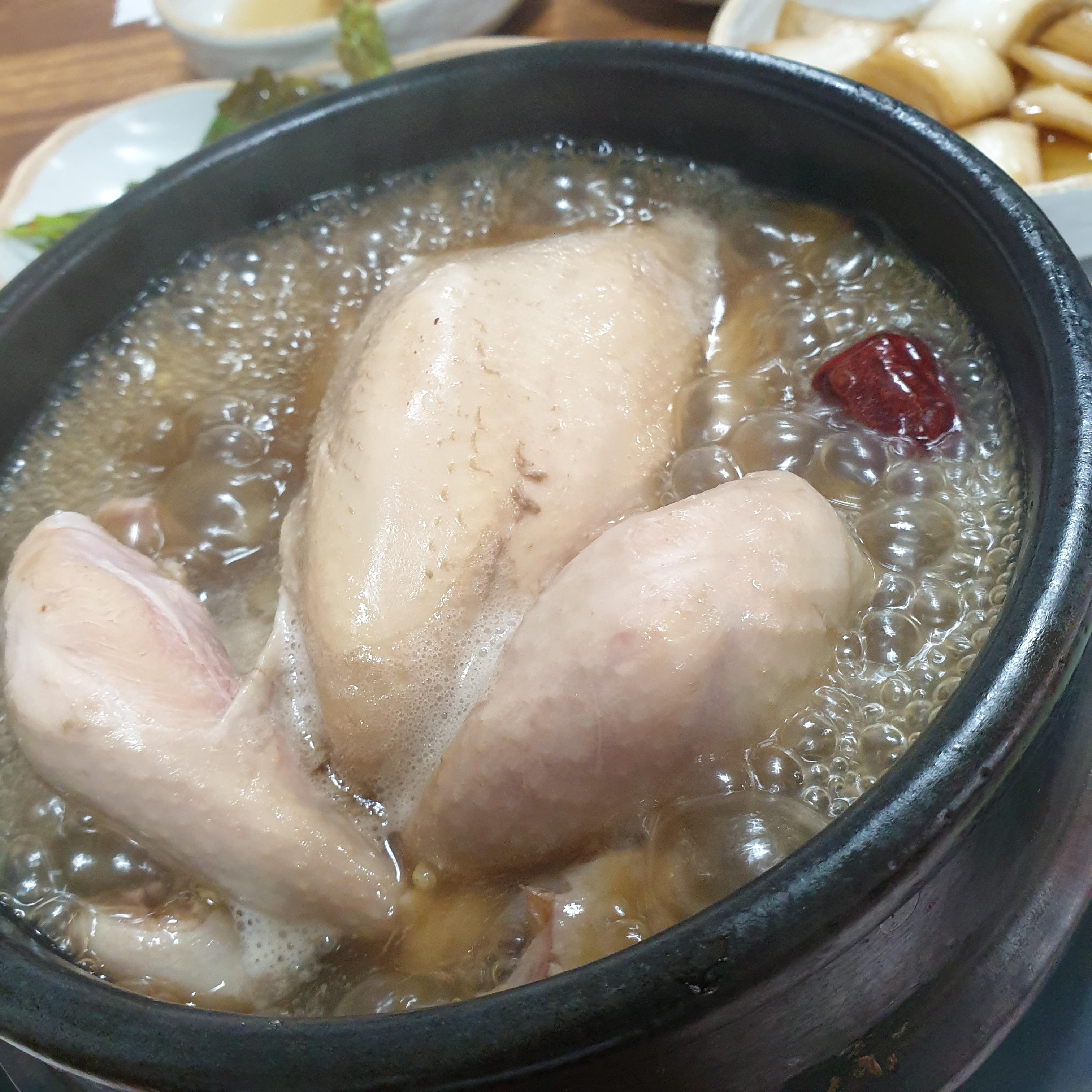 근본 뚝배기에 제공되며 닭 사이즈도 작은 사이즈가 아니고 뚝배기 사이즈도 큽니다.