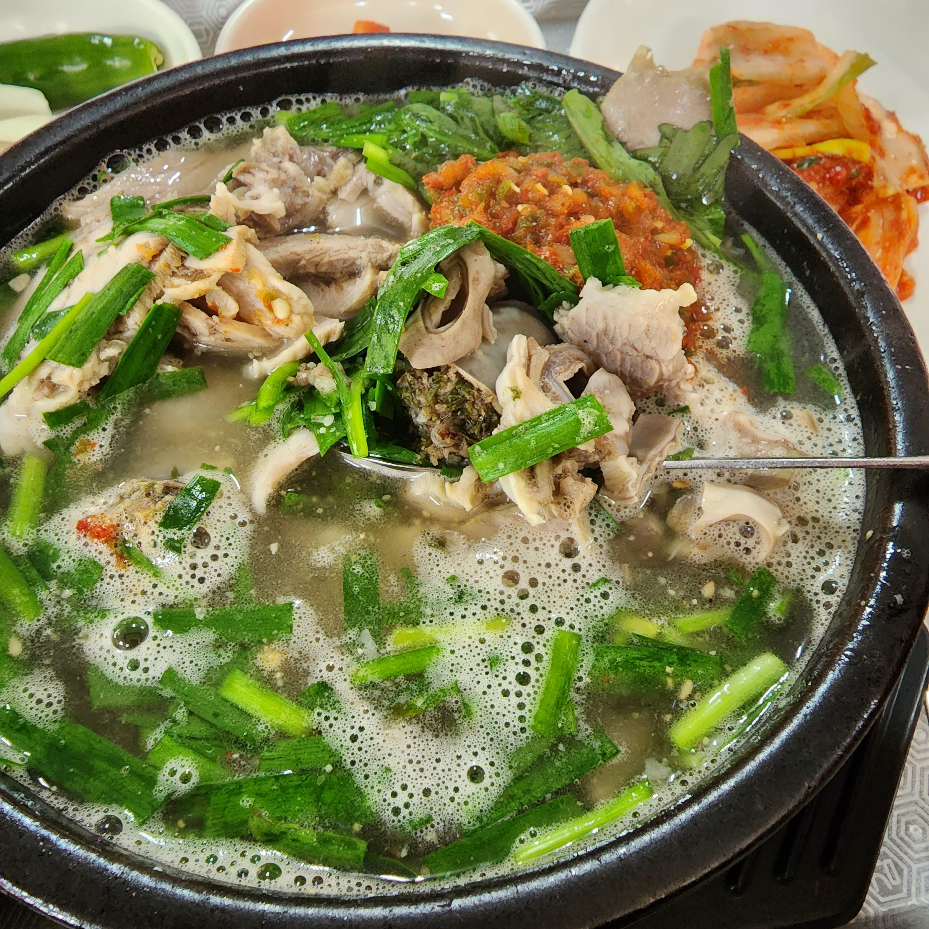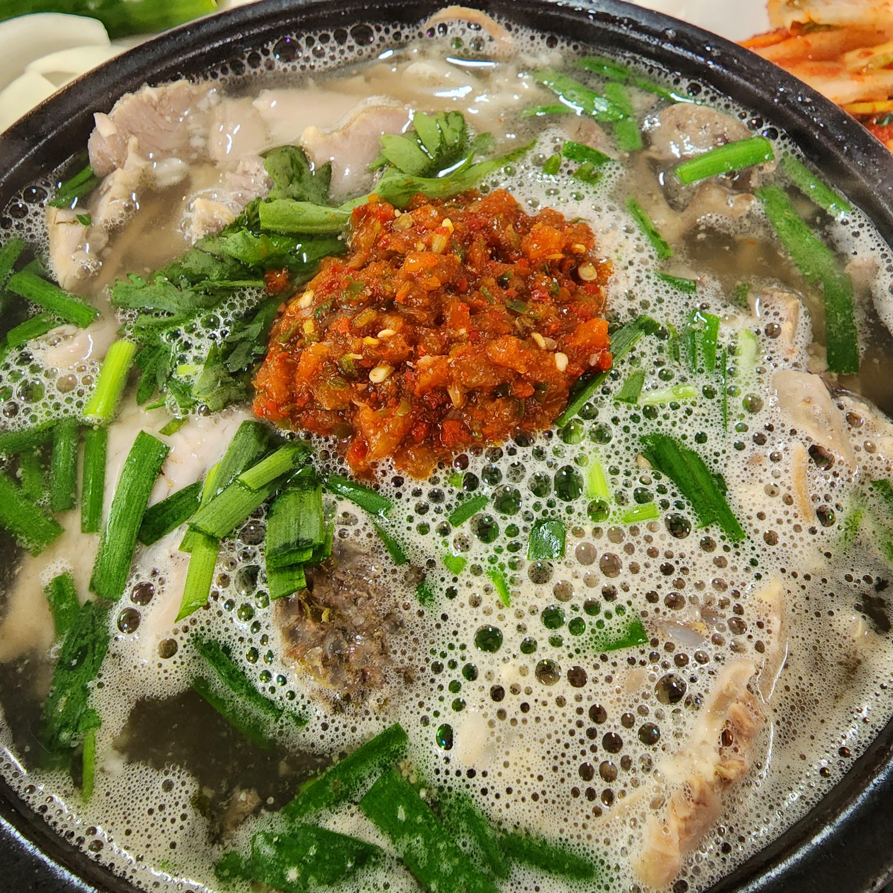 정말 괴물같은 양입니다. 개인적으로 국밥의 돼지고기는 두툼하면서 쫀쫀 부드러운것을 좋아하는데요. 신라국밥은 일단 고기가 두툼한편은 아니었습니다. 얇게 썰린 상태였는데 그래도 식감은 부드러운 편이었습니다. 고기고 고기지만 국물도 정말 맛있었습니다(국물충). 저는 기본 다대기 이외에 뭘 추가하지 않고 먹었는데요. 뜨끈하고 부드러운 맛이 정말 좋았습니다. 저의 맛 미터기(땀)가 풀로 가동되는 점심식사였습니다. 이 주변에 또 오게 된다면 한번쯤 다시 방문해볼것 같습니다. 아실만한 안동분들은 이미 아시는거같은, 점심에 가면 사람이 조금 복작복작한 안동의 국밥맛집. 신라국밥은 맛집으로 추천합니다.
