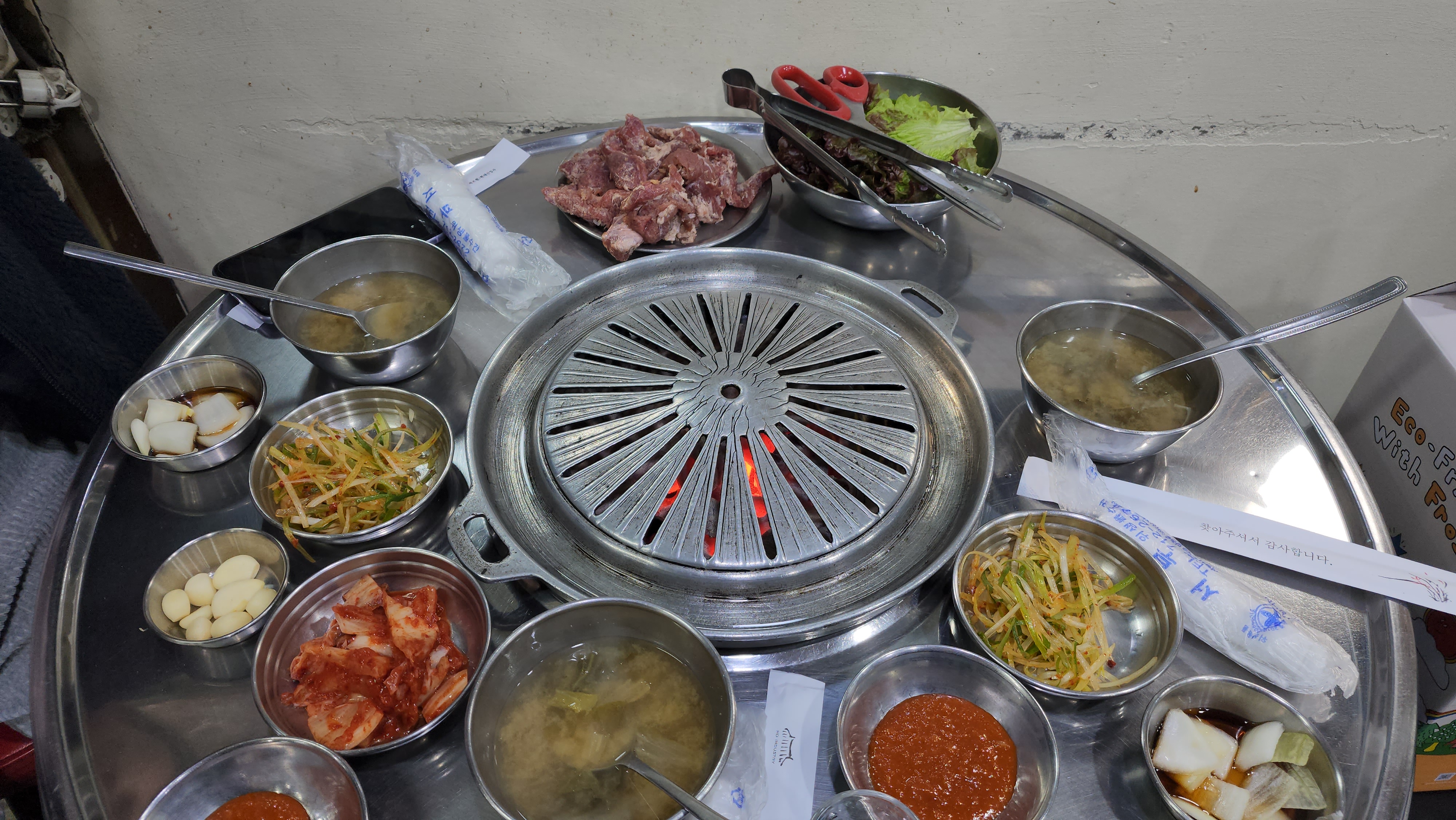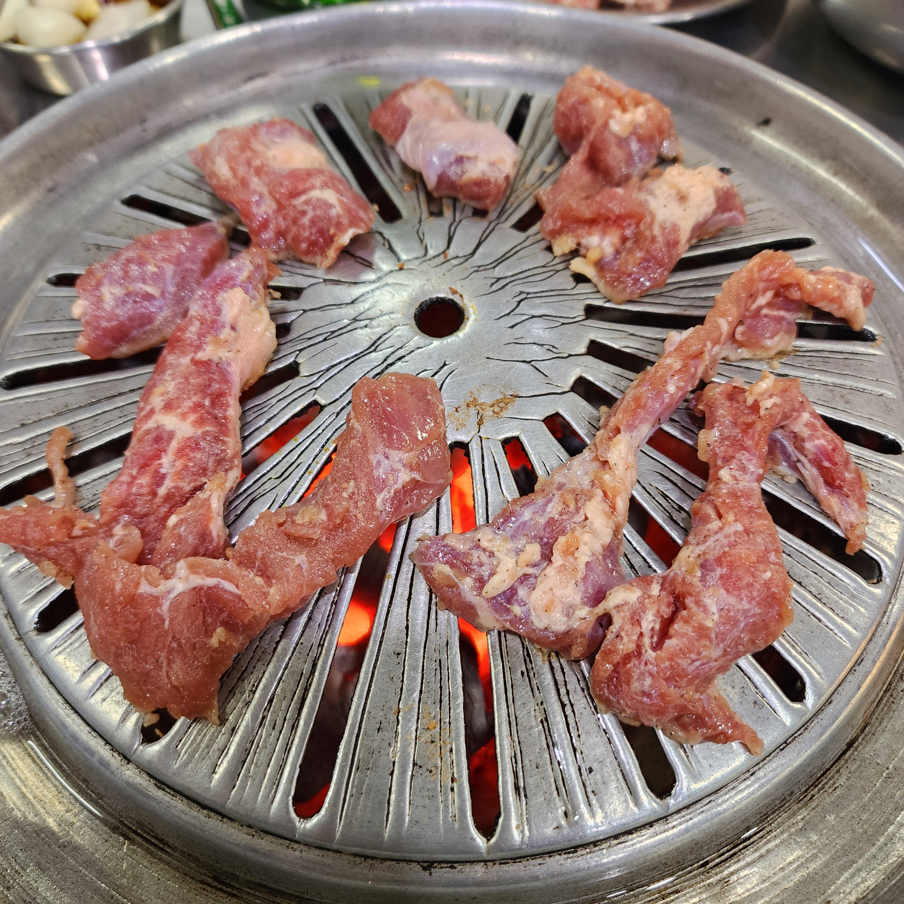 아무튼 집게는 빼앗겨버렸습니다. 이번에도 저는 고기를 만지지 못하고, 그게 사실 모두를 위한 선택인것은 맞습니다. 아무튼 이 집 불판도 장난이 아닌데요. 숯도 정말 장난 아닙니다. 틈새로 보이는 저 뜨거운 숯. 열기가 틈으로 나오는 것만 해도 정말 뜨끈하더라고요.
