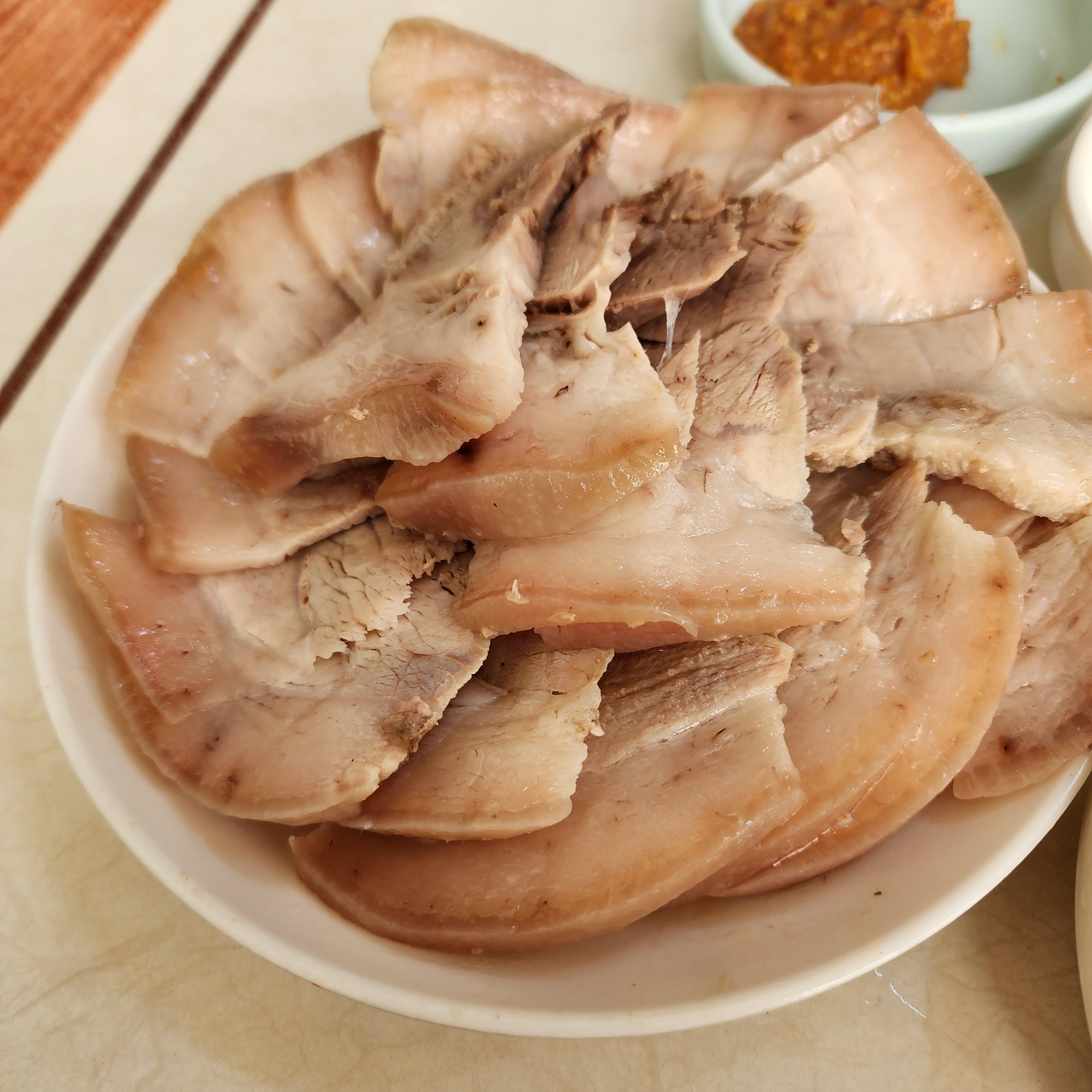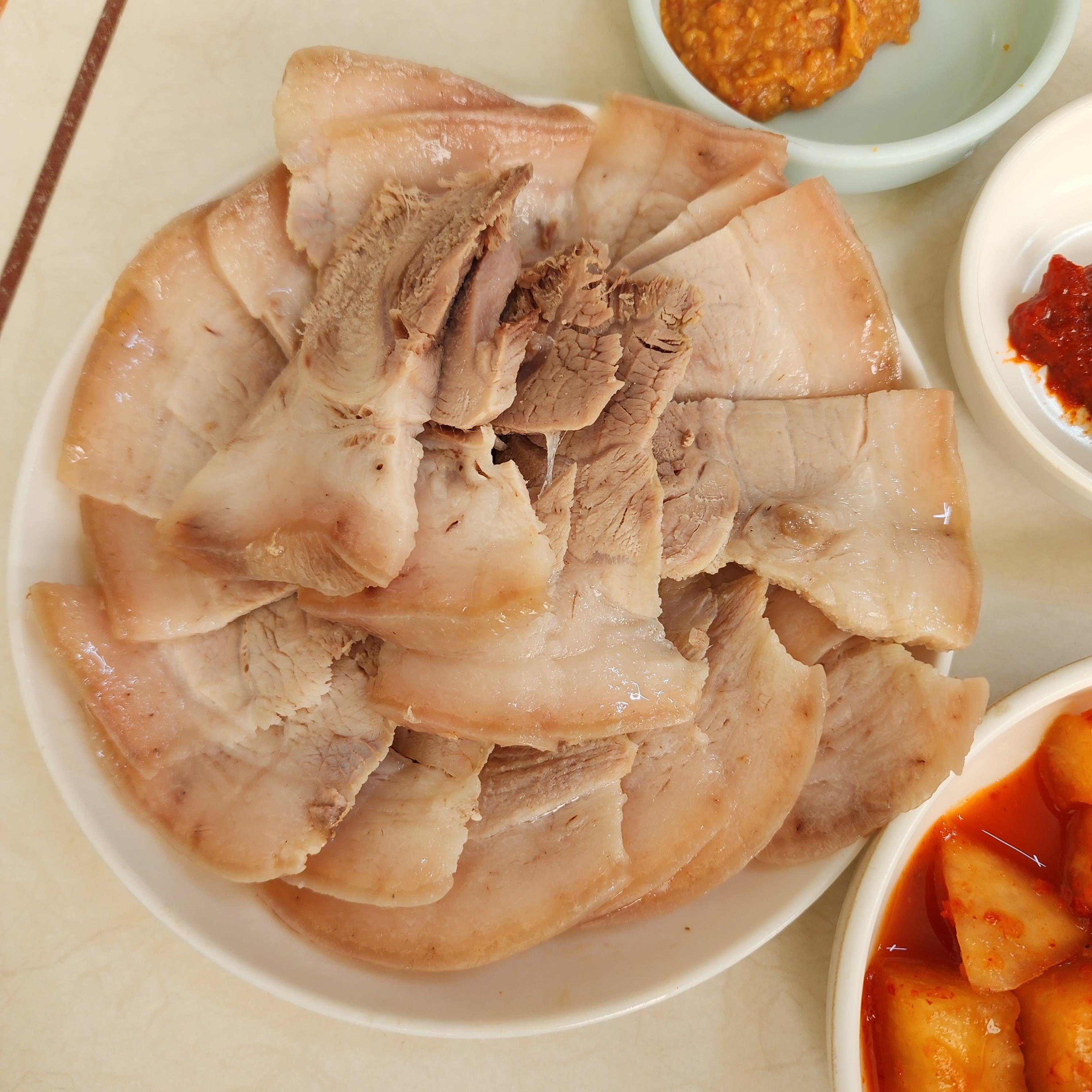 동곡할매국밥의 수육 소자 (15,000원)입니다. 수육이 먼저 나오더군요. 국밥을 기다리면서 수육 사진도 이리저리 찍고 국밥을 기다리며 업무카톡을 좀 하고있었는데 서버 할머니께서 오시더니 왜 안먹고 있냐고 물어보시더군요. 저는 하하 했지만 옆의 다른 테이블 손님들과도 이야기를 나누시는 모습을 보고 이동네 터줏대감 그런분이신가 보다 생각했습니다.(추후 서버 할머니는 서빙 실수로 여자사장과 말다툼을 함)