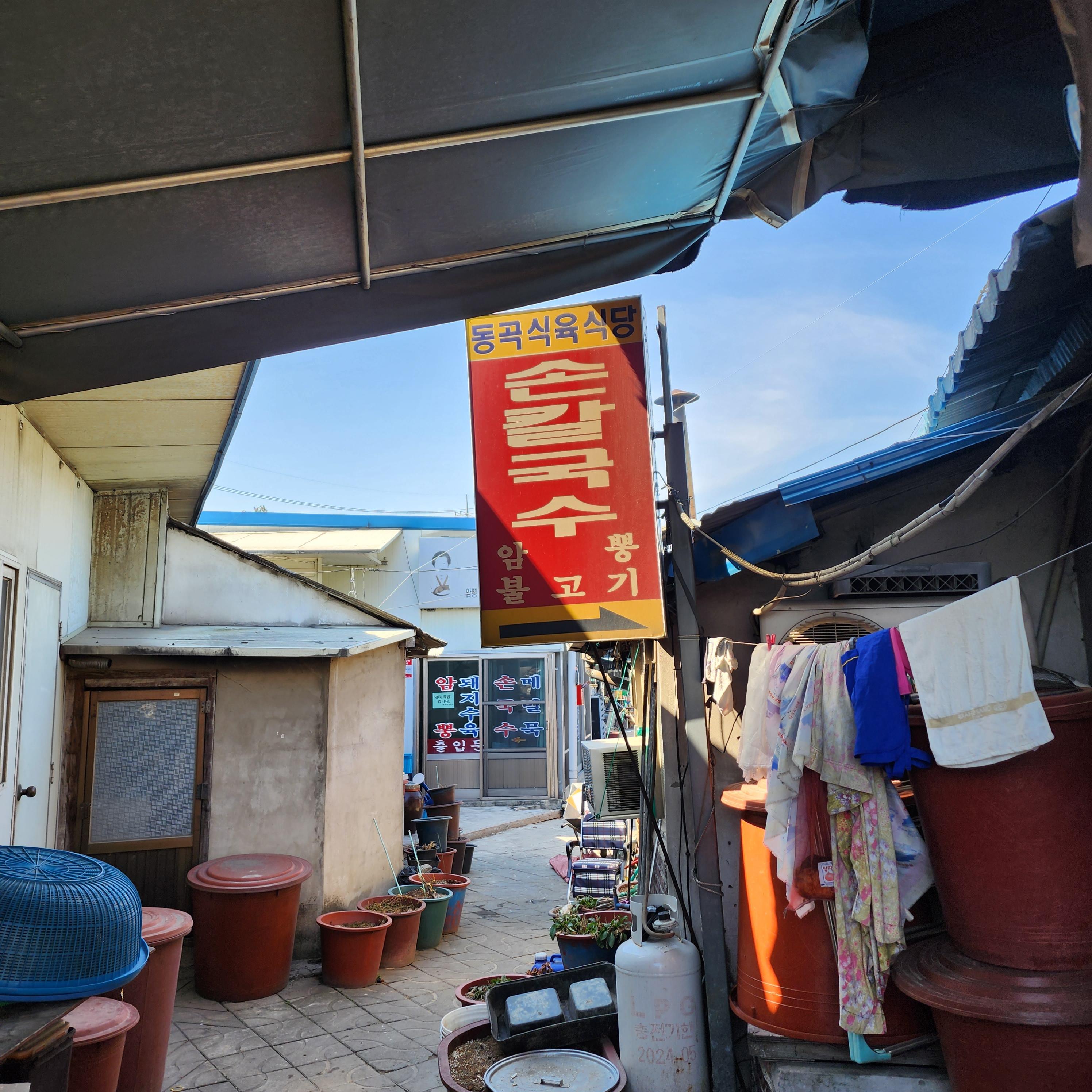 동곡할매국밥집 외관 사진은 사람들이 조금 있어서 찍지를 못했는데 이 골목에 있습니다. 사실 이 골목에서 서로 다른 가게인지 분간도 가질 않으며 그냥 다 같은 가게일수도 있다는 생각이 듭니다. 아무튼 완전 오래된 다 무너져가는 판자건물 느낌의 노포입니다. 주변에 주거단지보다는 공장단지가 있는 느낌인데 그래서 그런지 사람들이 많습니다. 그런데 또 보면 손님들이 근처에서 일하는 분들은 아닌것 같고 추억의 맛을 찾아 오신 분들도 여럿 있는것 같은 느낌입니다.