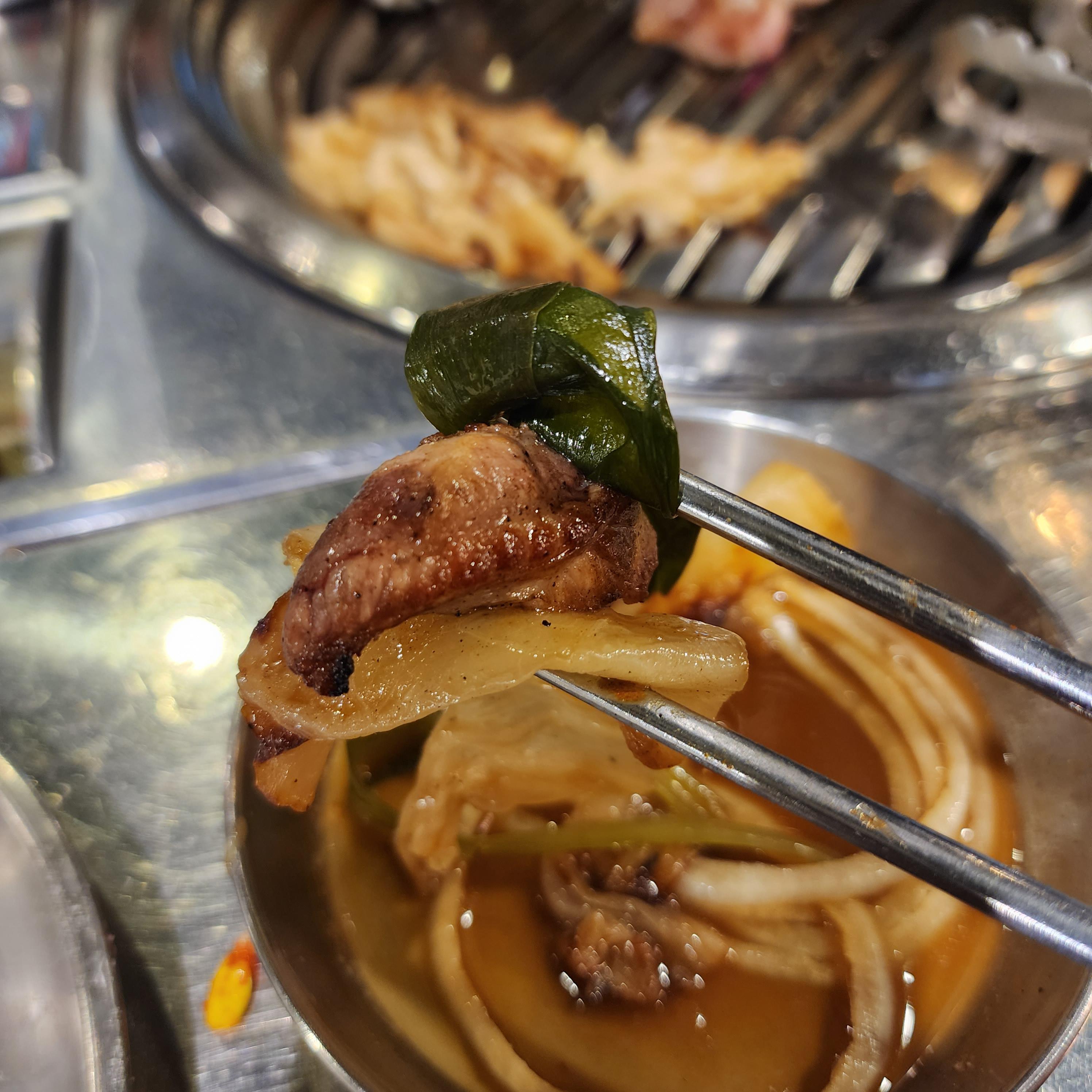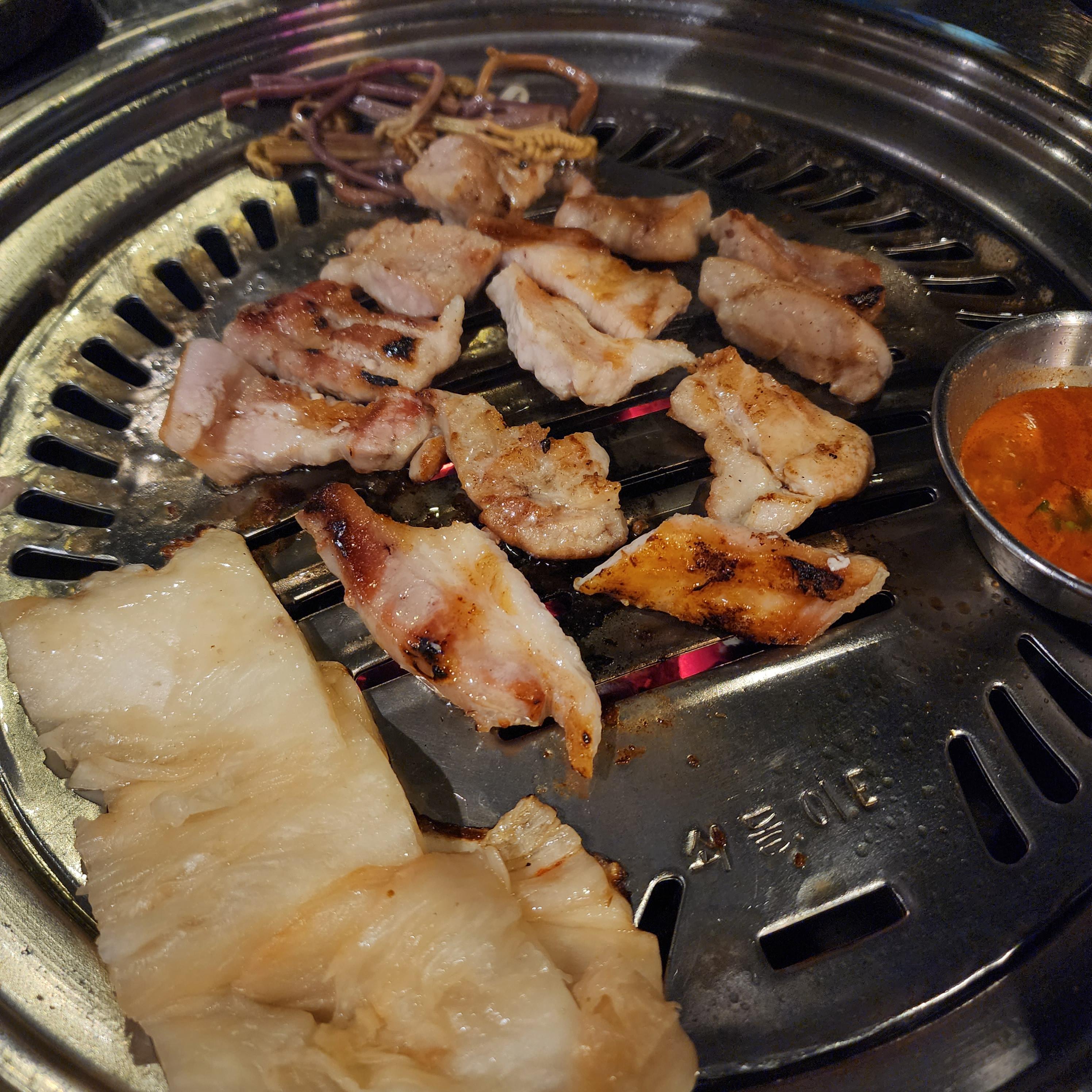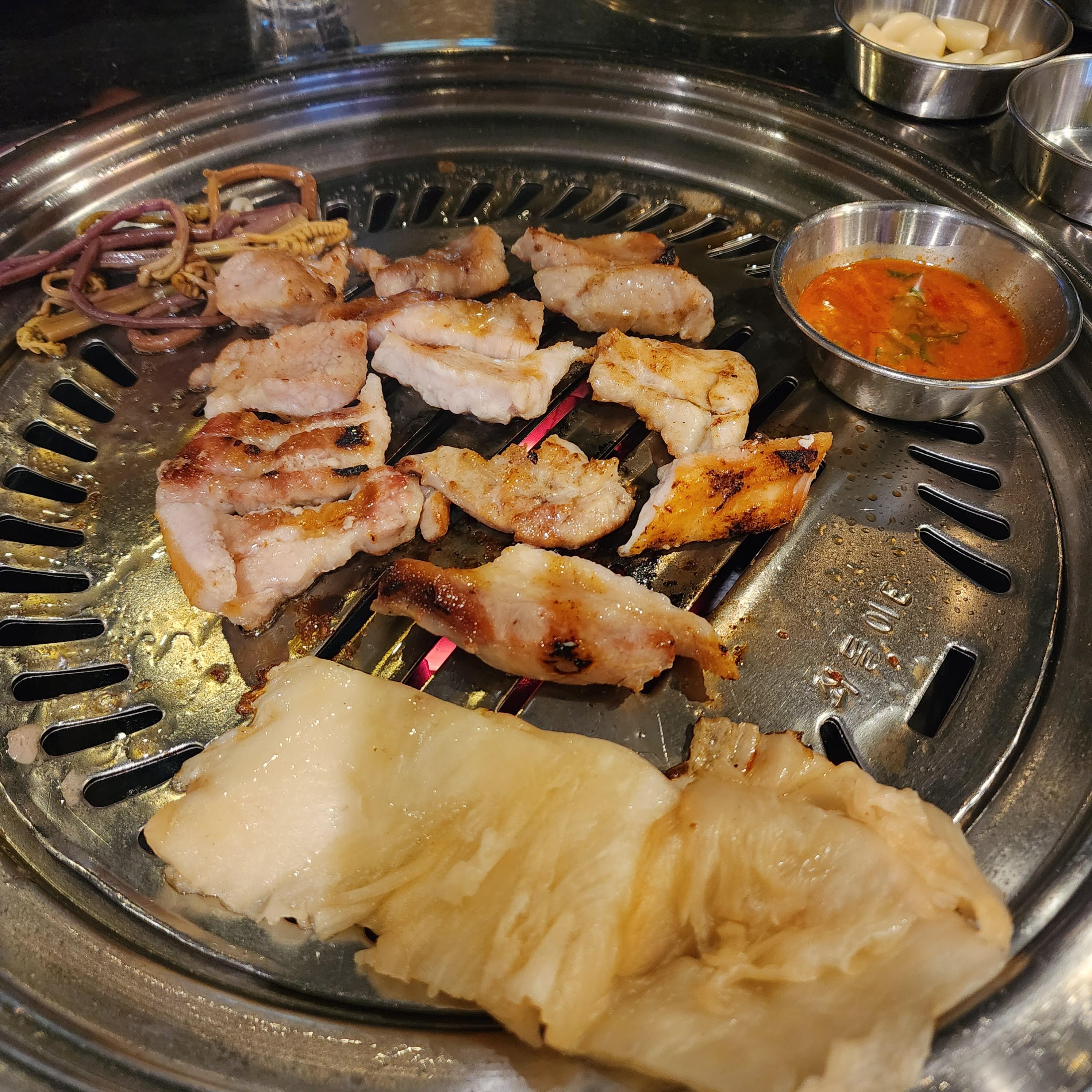 세트 구성의 마지막 돼지껍데기입니다. 껍데기도 정말 맛있었습니다. 고기도 맛있고 반찬도 맛있고 마지막 껍데기까지 맛있어 버리니까 술이 술술술 들어갔습니다. 그리고 사장님도 정말 친절하셔가지고 이런저런 설명도 잘해주시고 고기도 다 구워주시고 먹는 법도 다양하게 알려주십니다. 소래포구 돼지고기 맛집 육통형. 소래포구에 있지만 오늘은 왜인지 회보다는 고기가 땅기신다면 꼭 한번 방문해 보시길 추천합니다.