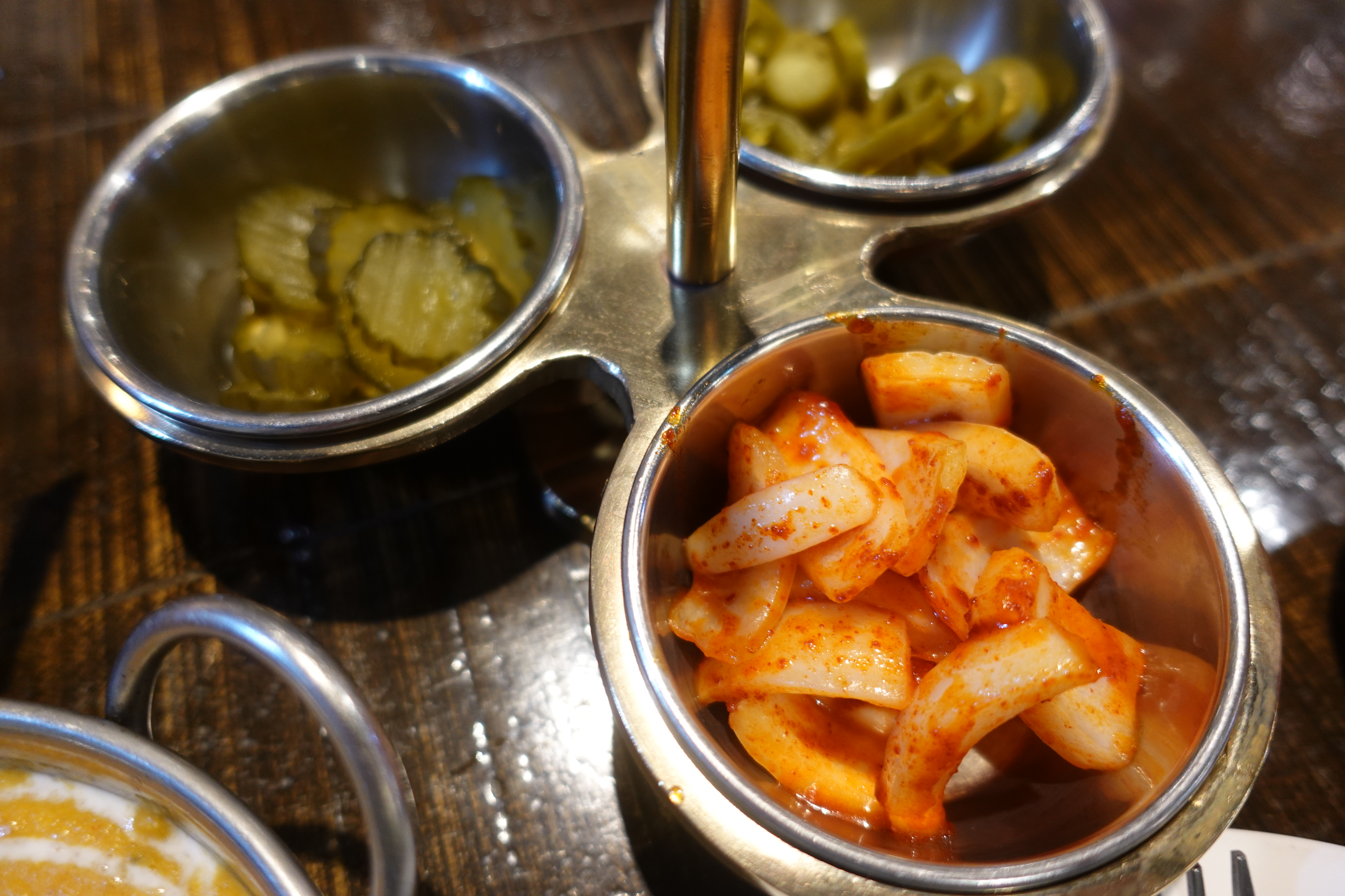 기본 반찬. 할라피뇨, 피클, 양파무침 ? 셋중에는 매콤한 할라피뇨가 가장 입맛에 맞고 그 다음이 양파무침이었습니다. 피클은 그냥 피클맛.