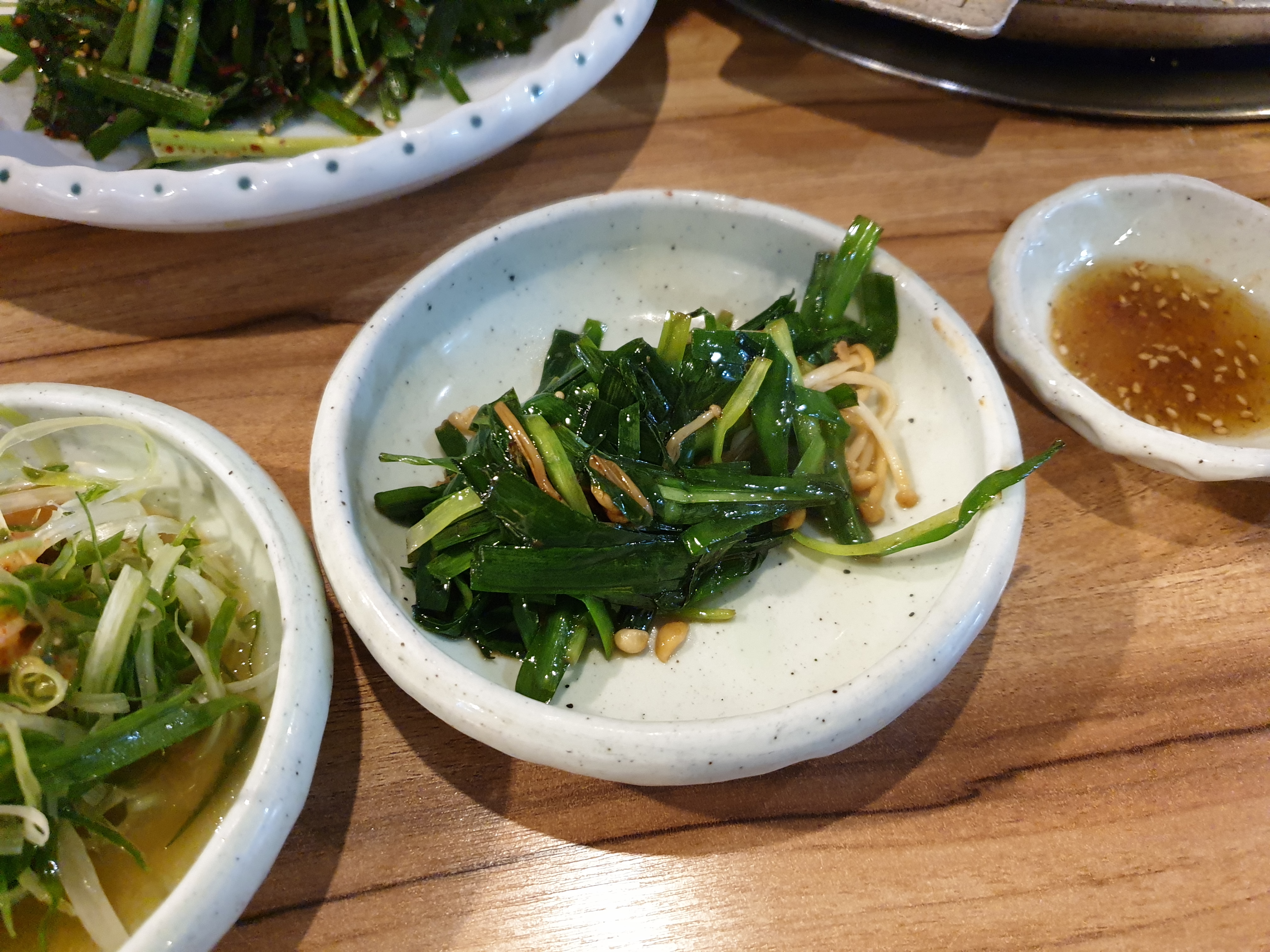 이렇게 소 곱창 기름에 볶아진 부추도 따로 올려주십니다.