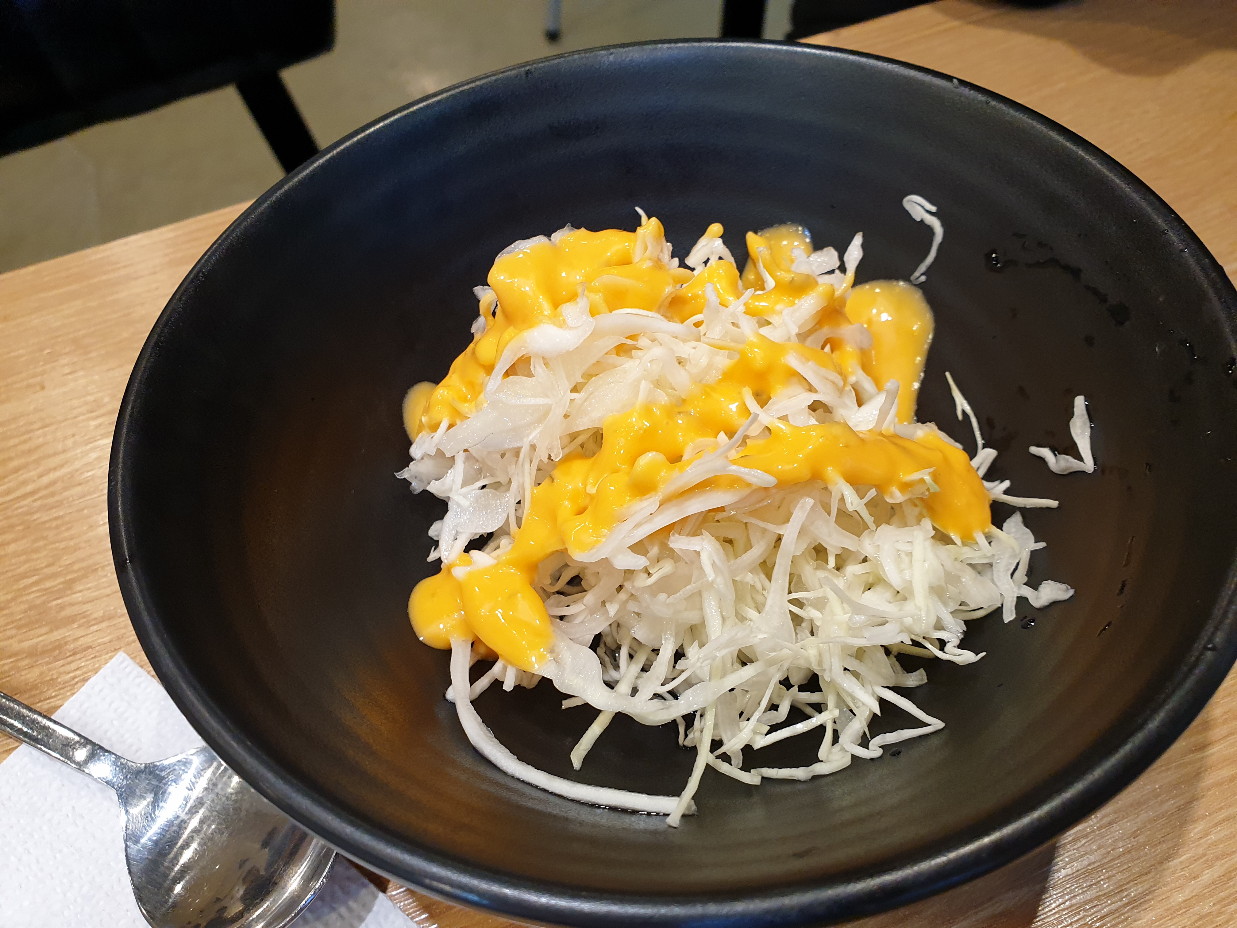 기본 반찬 콩나물, 단무지, 배추김치 와 양배추 샐러드는 특별한것은 없습니다.