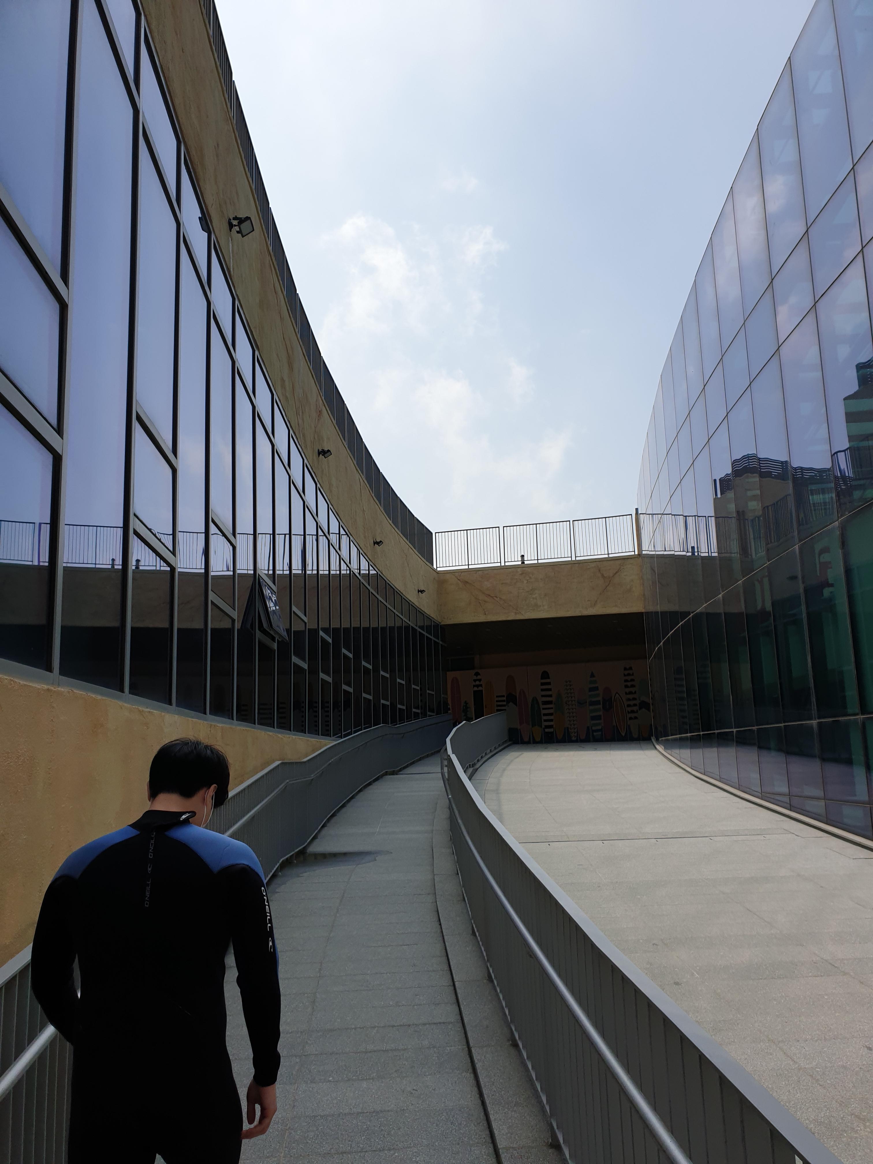 모든 과정을 마치고 이제 진짜 물이있는 웨이브파크 서핑존으로 입장하는 모습입니다.