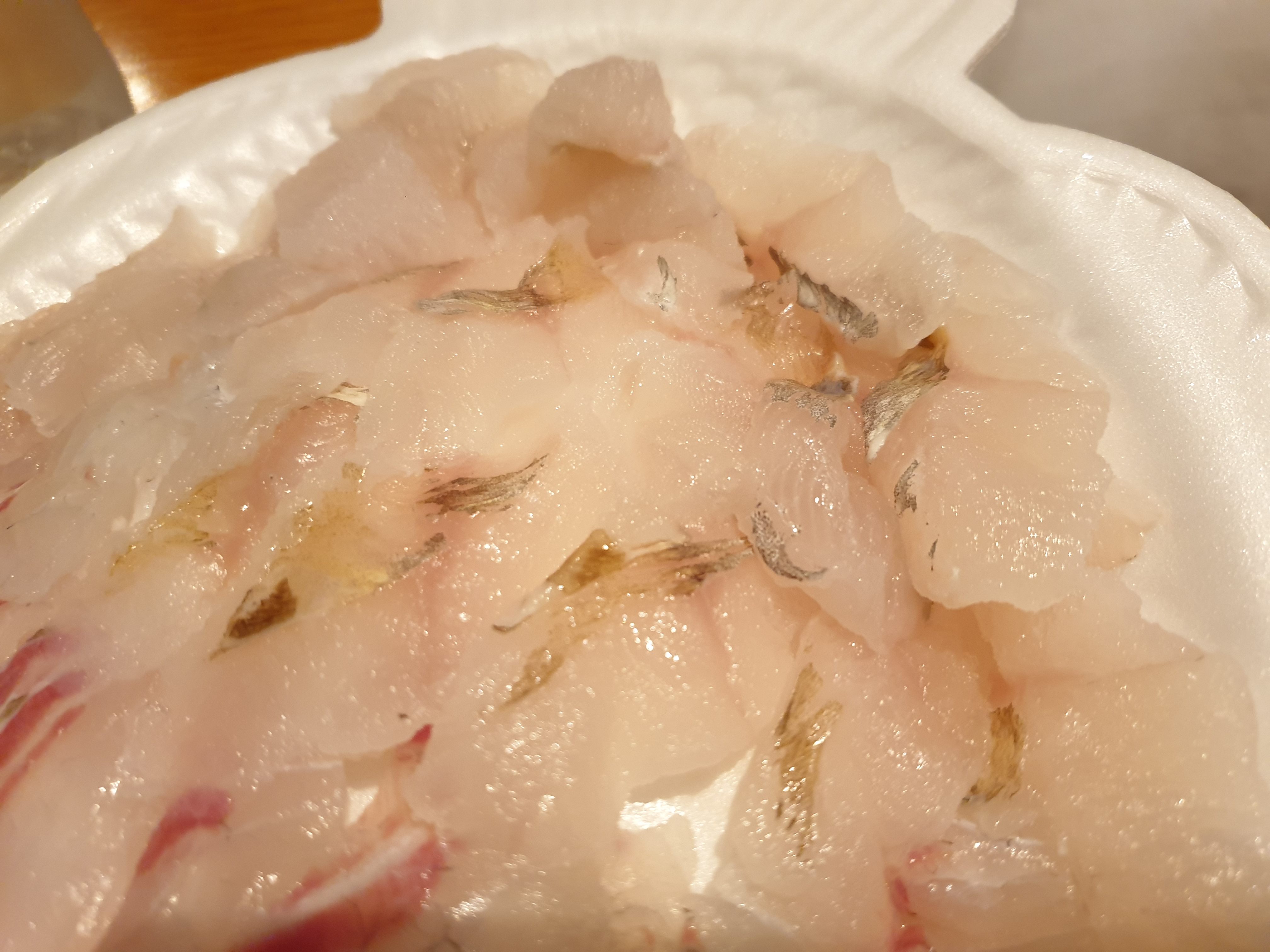이 위쪽의 살이 또랑치 살인데 이게 식감이 상당히 특이합니다. 낯선것 알러지 있으신 분들은 절대 참고하세요. 살의 흰색 표면이 상당히 까슬까슬하고 살이 단단합니다. 연어 참치 처럼 부드러운 식감 아니고, 우럭 광어처럼 쫀득 오돌한 식감도 아닙니다. 상당히 새로운 식감이었습니다. 맛은 뭐 그냥 그닥 쏘쏘