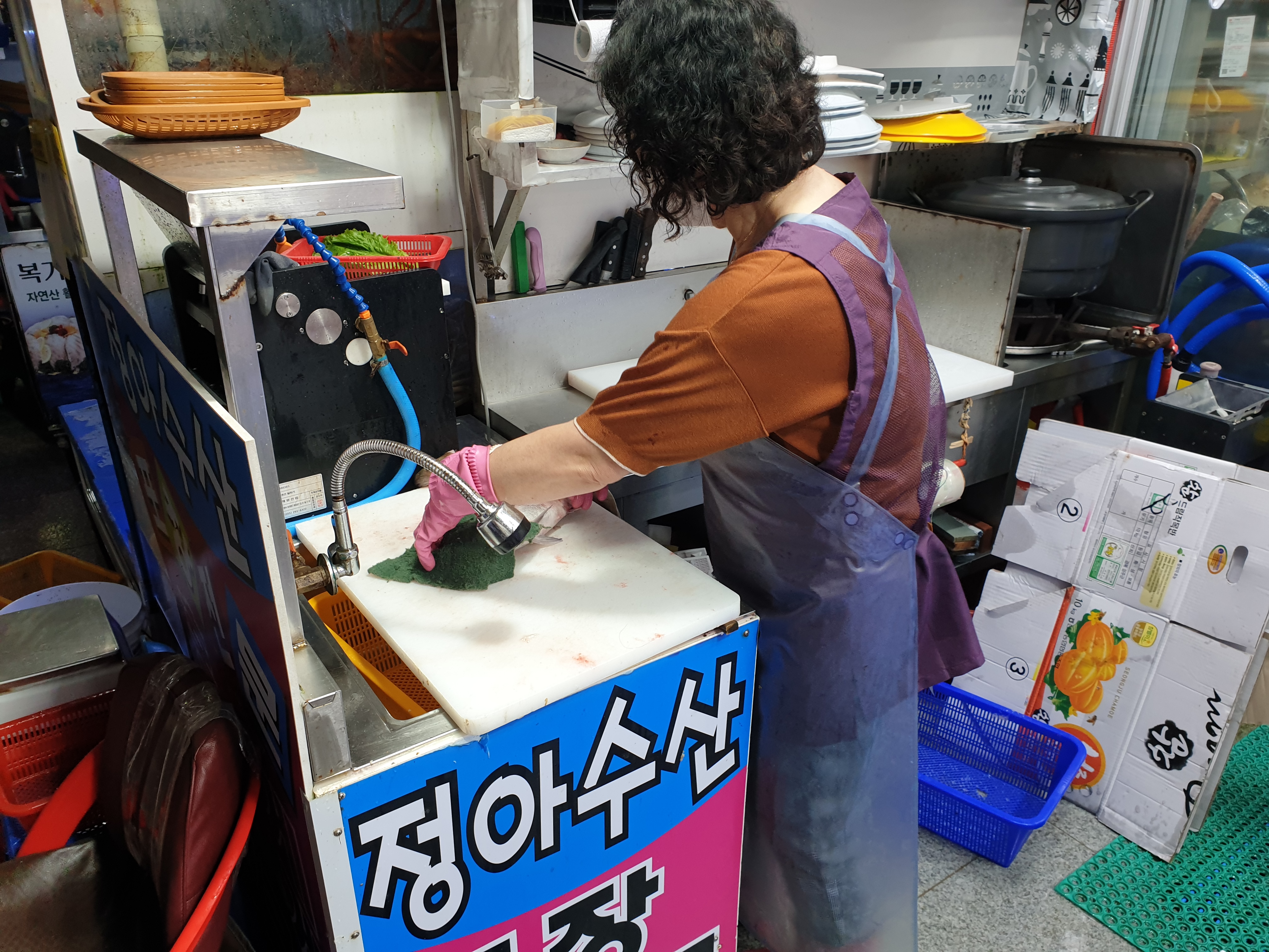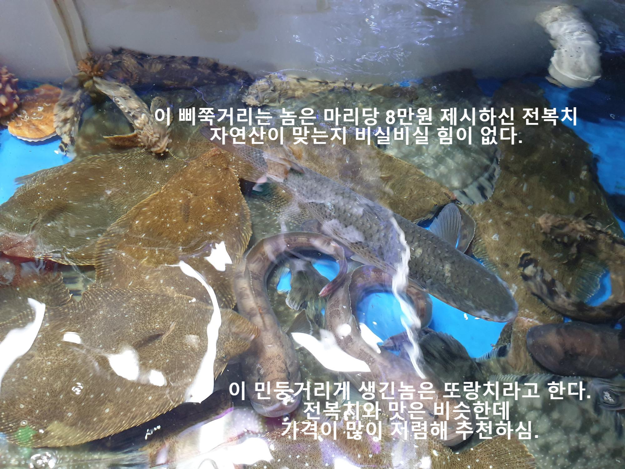 그 중에서 지인의 픽인 정아수산에서 회를 뜨게 되었습니다. 후에 이야기로는 이 집 어항에 가장 다양한 어종이 있었다고 하더군요. 그런 디테일까지 챙기다니 ㄷㄷㄷ.
