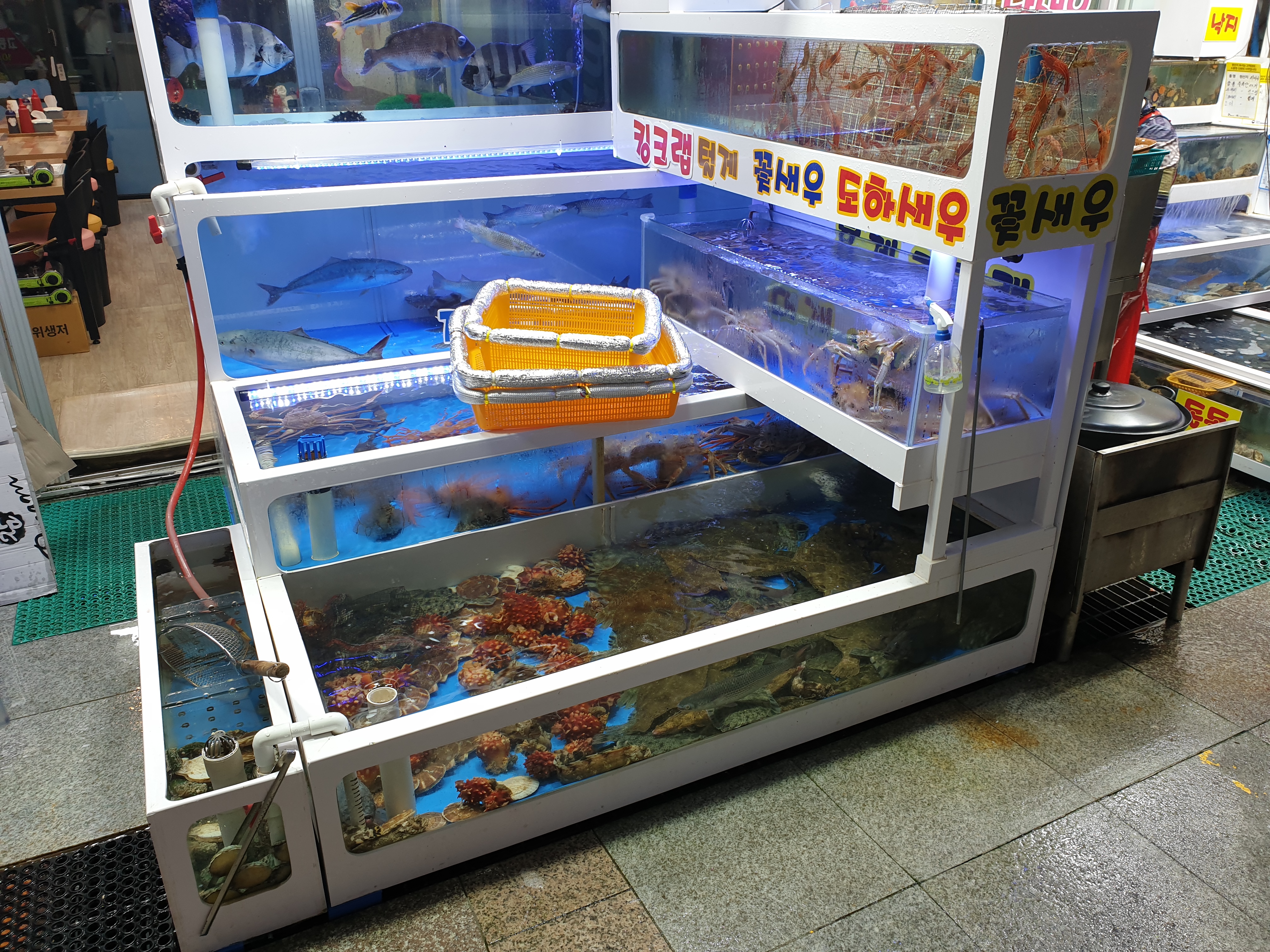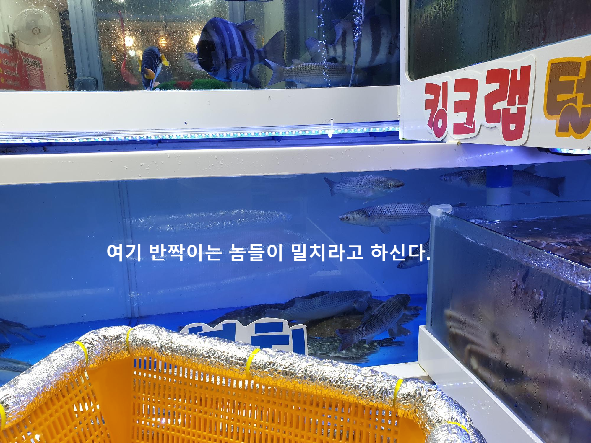 이것저것 많아 보이나요? 개인적으로는 뭐 이런 센터에서는 거의 다 비슷하다고 생각하는 주의기 때문에 별말없이 지인픽을 따라서 갔습니다. 그리고는 이제 생선을 골라야겠죠. 활어회들이 살아 움직이는게 싱싱해보이기는 합니다.