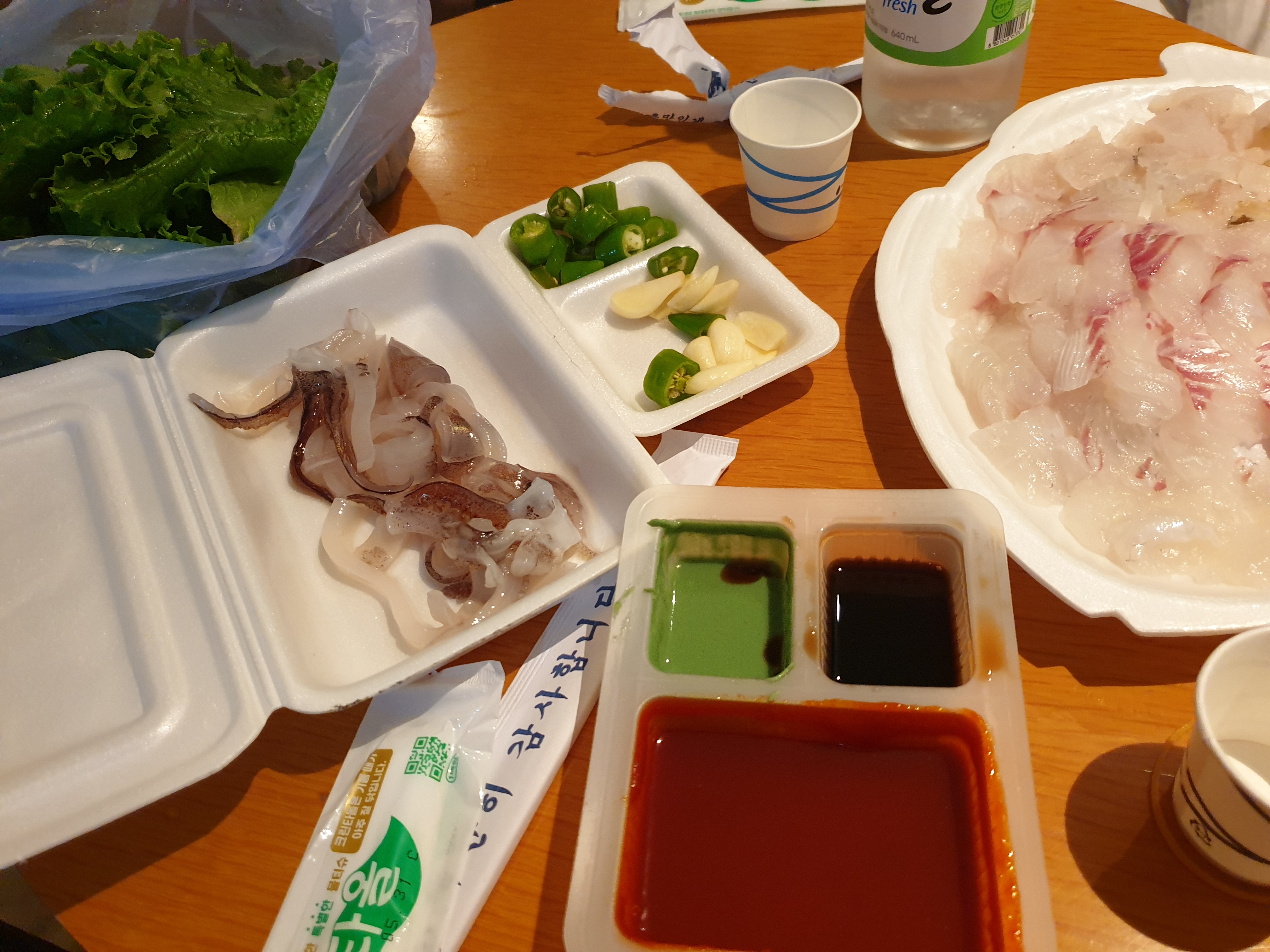 타지에서 늦게까지 운영하는 횟집을 발견하지 못했던 저에게 아주 밝은 희망의 빛이었던 정아수산 및 대포항 수산시장 회센터. 만약에 여러분들도 비슷한 시기에 비슷한곳 방문하신다면 이곳은 꽤 늦은 시간까지 영업을 하고있으니 참고하시길 바라겠습니다.