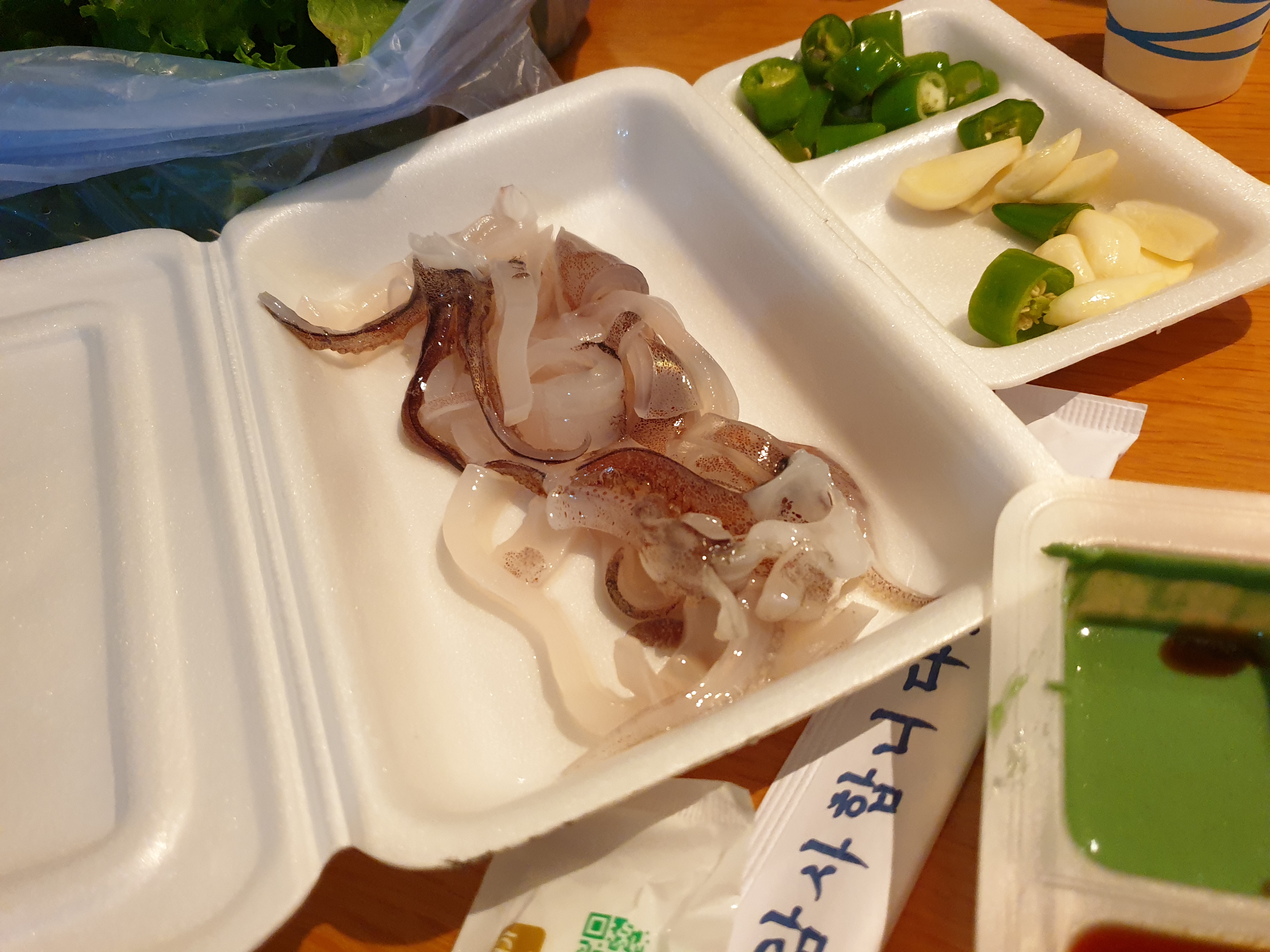 마지막 오징어 써비스까지. 물건이 작긴 하지만 요즘 미쳐버린 오징어 가격을 생각한다면 서비스 해주신것 자체가 신기하네요.