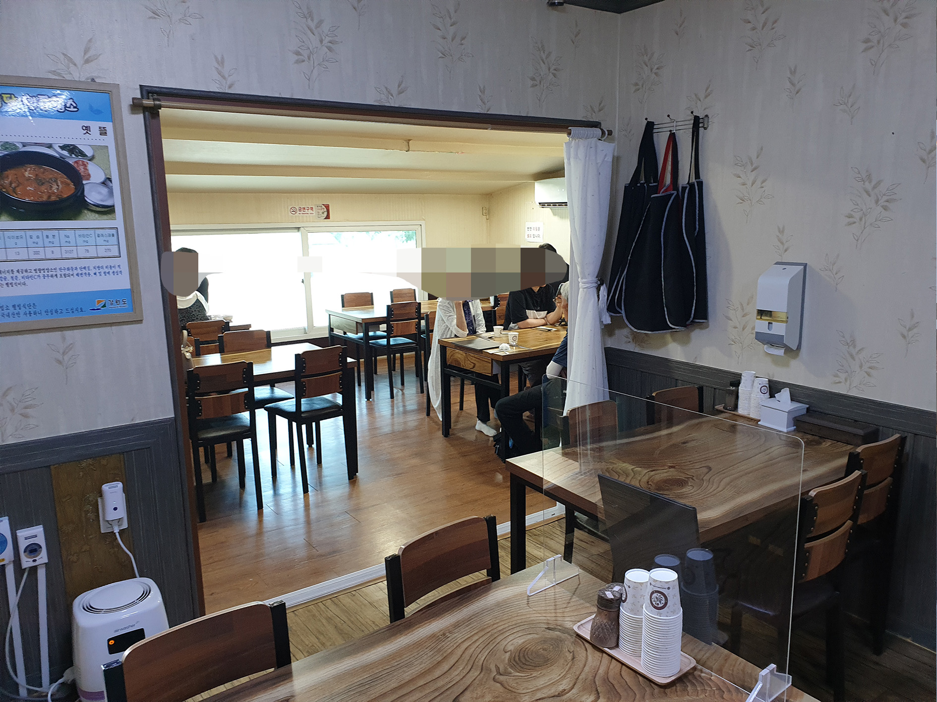사진으로 찍으니 빛 반사 때문에 내부하 하나도 안보이네요. 이렇게 사장님의 부엌이 바깥창을 통해서 다 보입니다.
