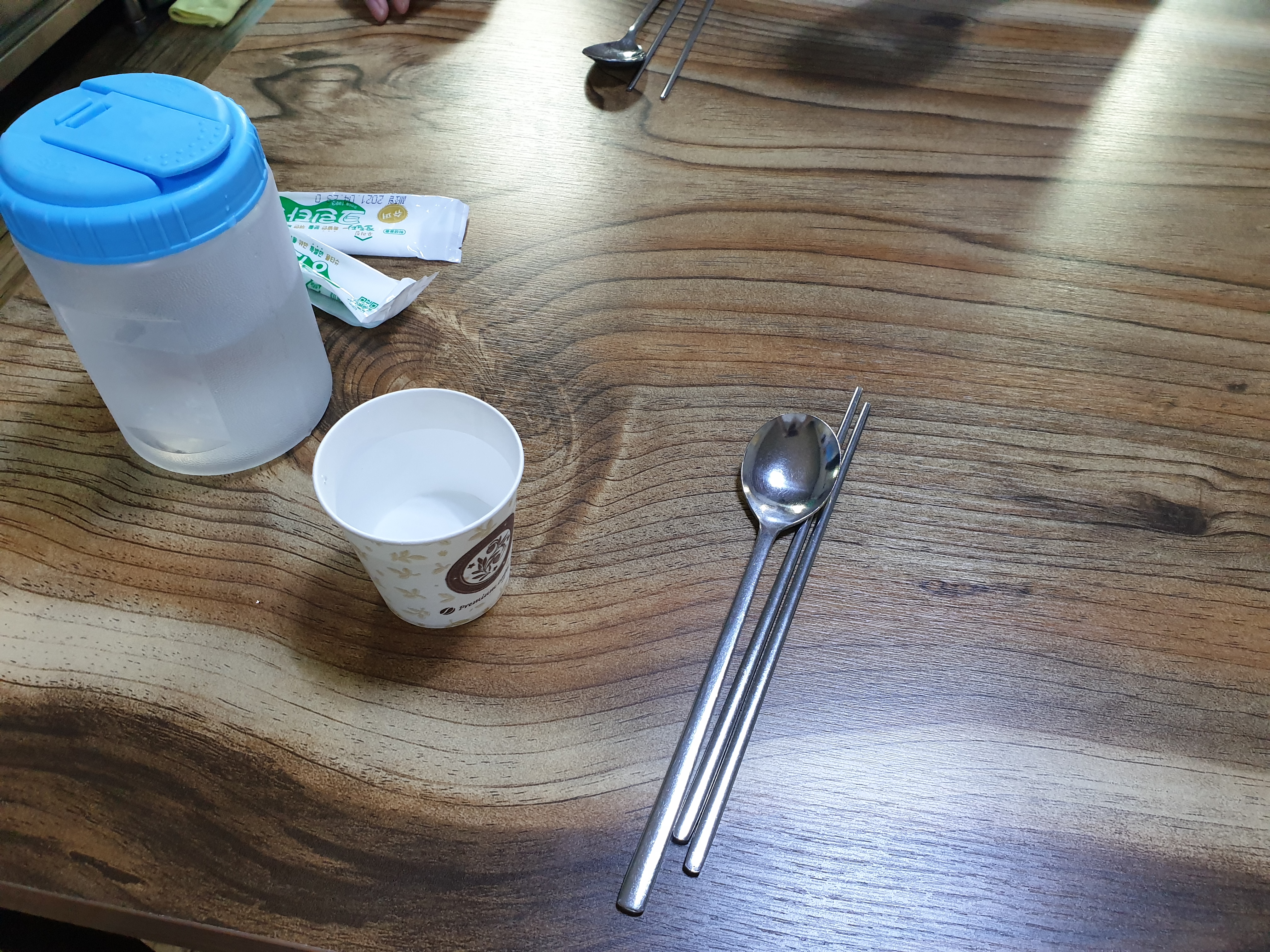 물은 종이컵에 제공이 됩니다. 일반 생수가 제공이 되는군요.