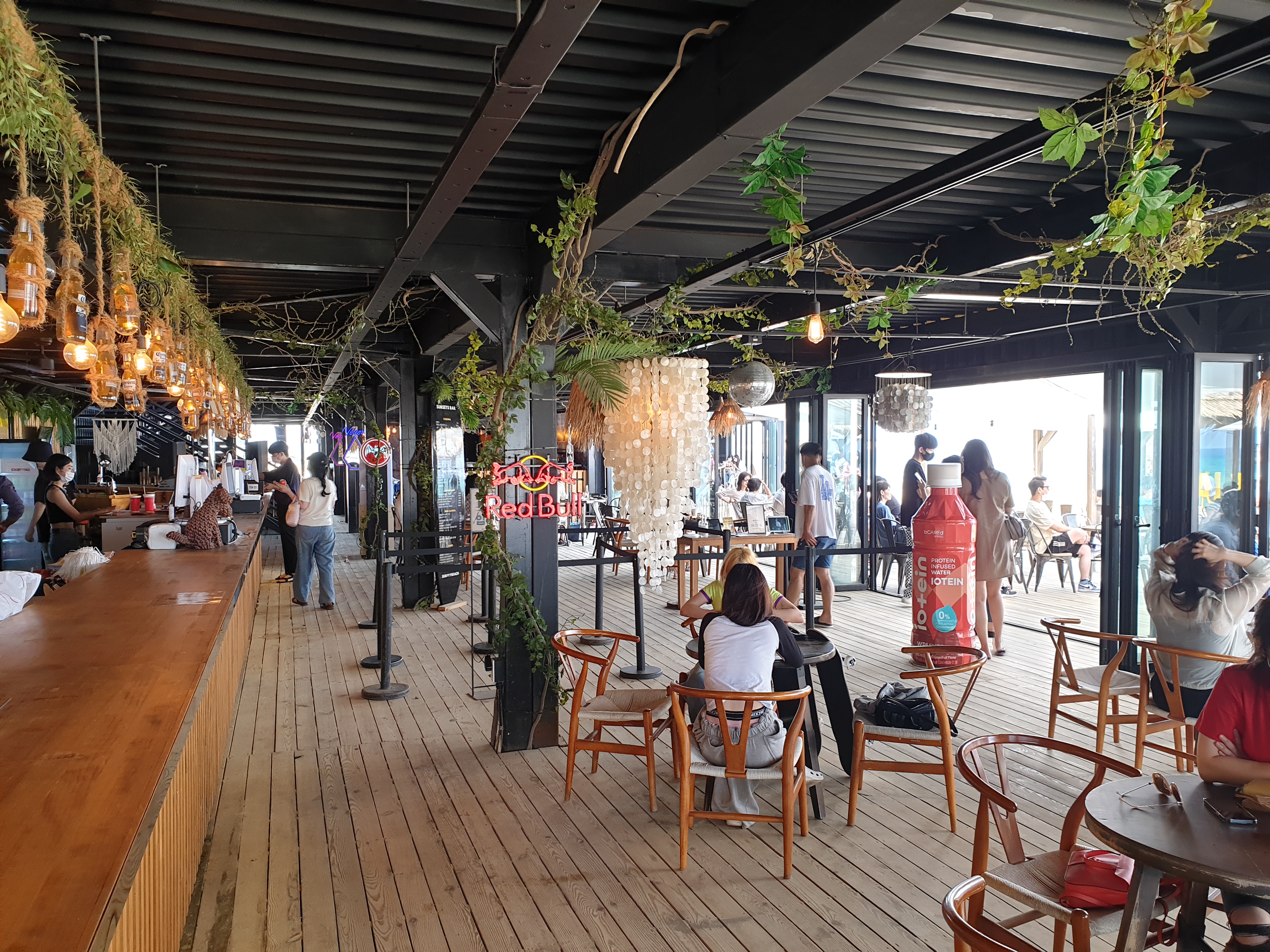 서피비치 입구 들어서서 왼편에 있는 서피비치 테라스? 일단 입구만 지나면 분위기가 장난이 아닙니다. 벌써 무슨 동남아에 온 느낌이 들어요. 미국 마이애미는 못가봐서 그 느낌도 있을지는 모르겠네요^^