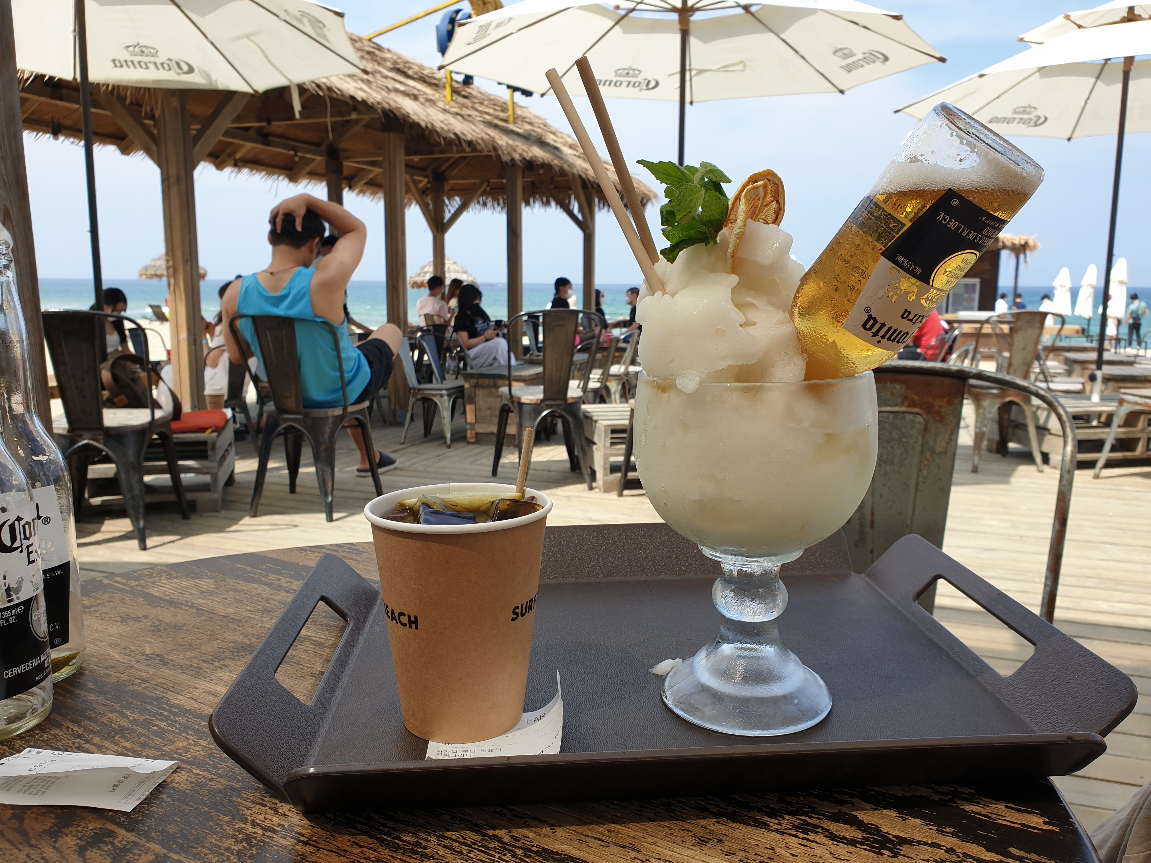바깥에서 본 서피비치의 모습입니다. 물만 보라카이 느낌이 아니고 실제로 동남아 어딘가의 해변같은 분위기가 마치 해외여행 온 것 같은 착각을 불러 일으킵니다. 그리고 저 뿐만이 아니라 서피비치에 방문한 모든 분들이 이런 느낌을 느끼려고 방문하는것 같아요 ㅋㅋㅋㅋ