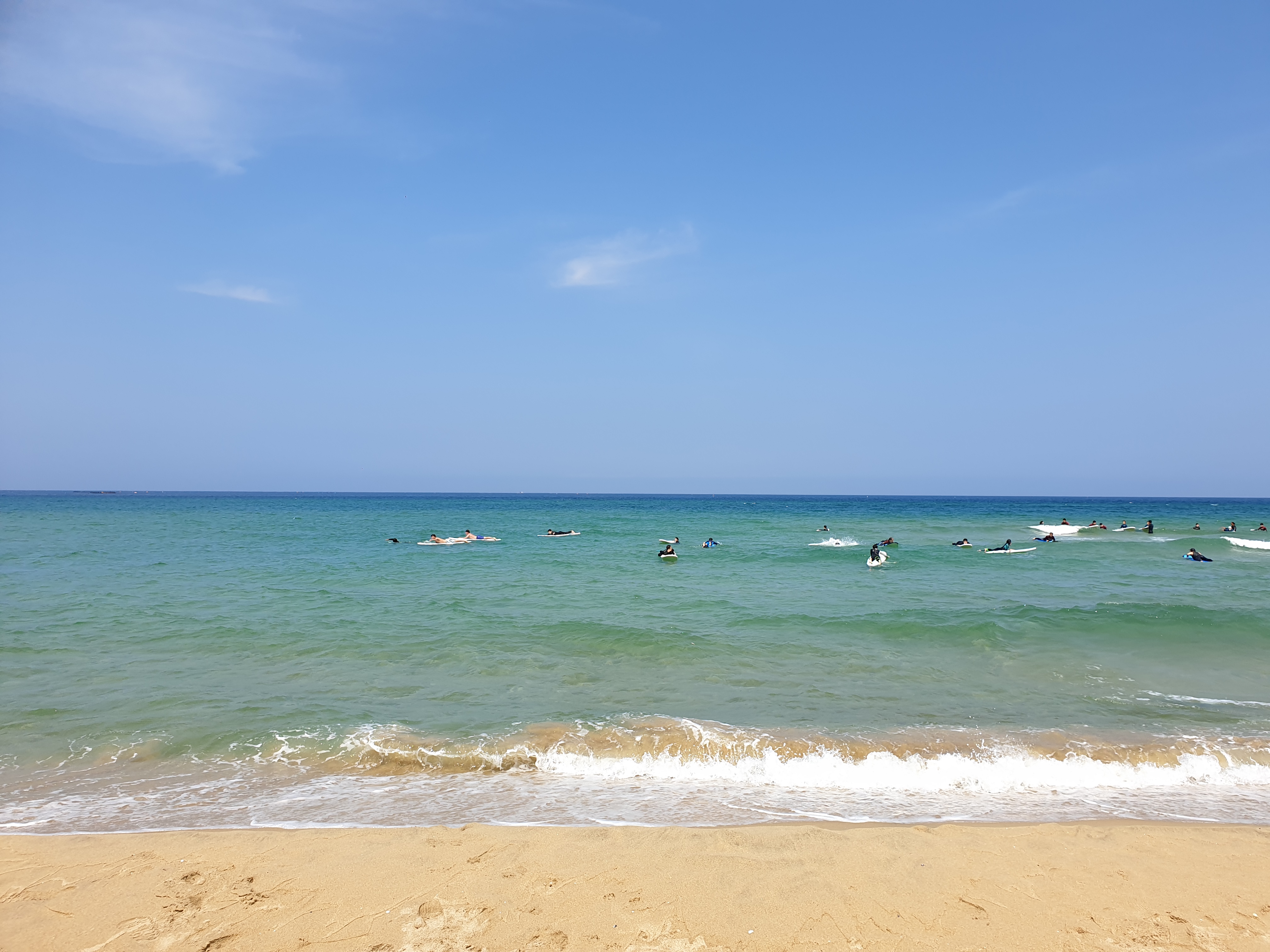 서피비치 입구를 넘어서자 마자 보이는 바다의 모습입니다. 표지에 써 있기로는 서핑하는 사람이 아니라면 물놀이는 금지라고 하더라구요. 안전상의 이유도 있고 쾌적한 서핑 환경을 위해서도 제한하는것 같아요.