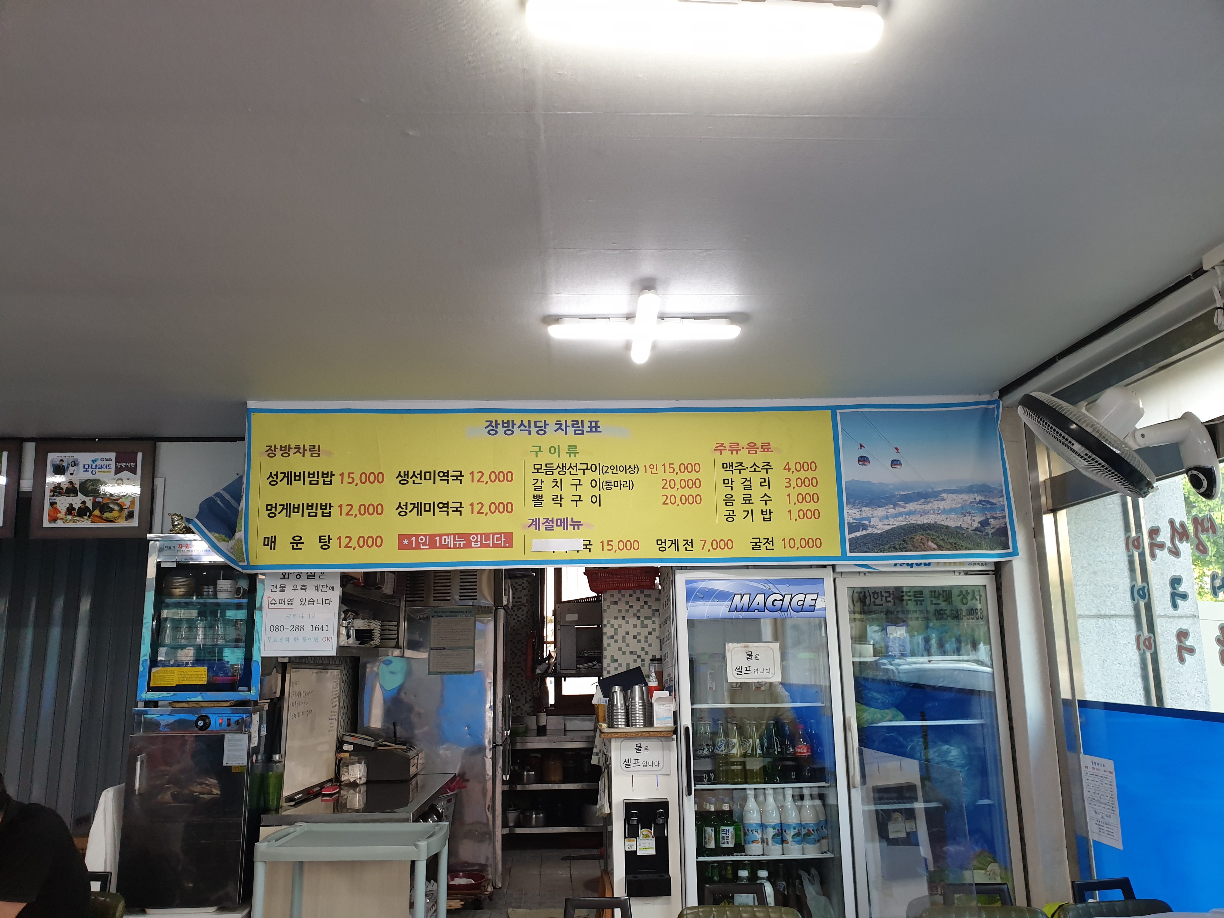 일단 장방식당 방문 이유가 성게비빔밥에 있었기 때문에 성게비빔밥(15,000원)과 미역국(12,000원) 하나 그리고 갈치구이(20,000원)를 시켜 먹기로 했습니다.