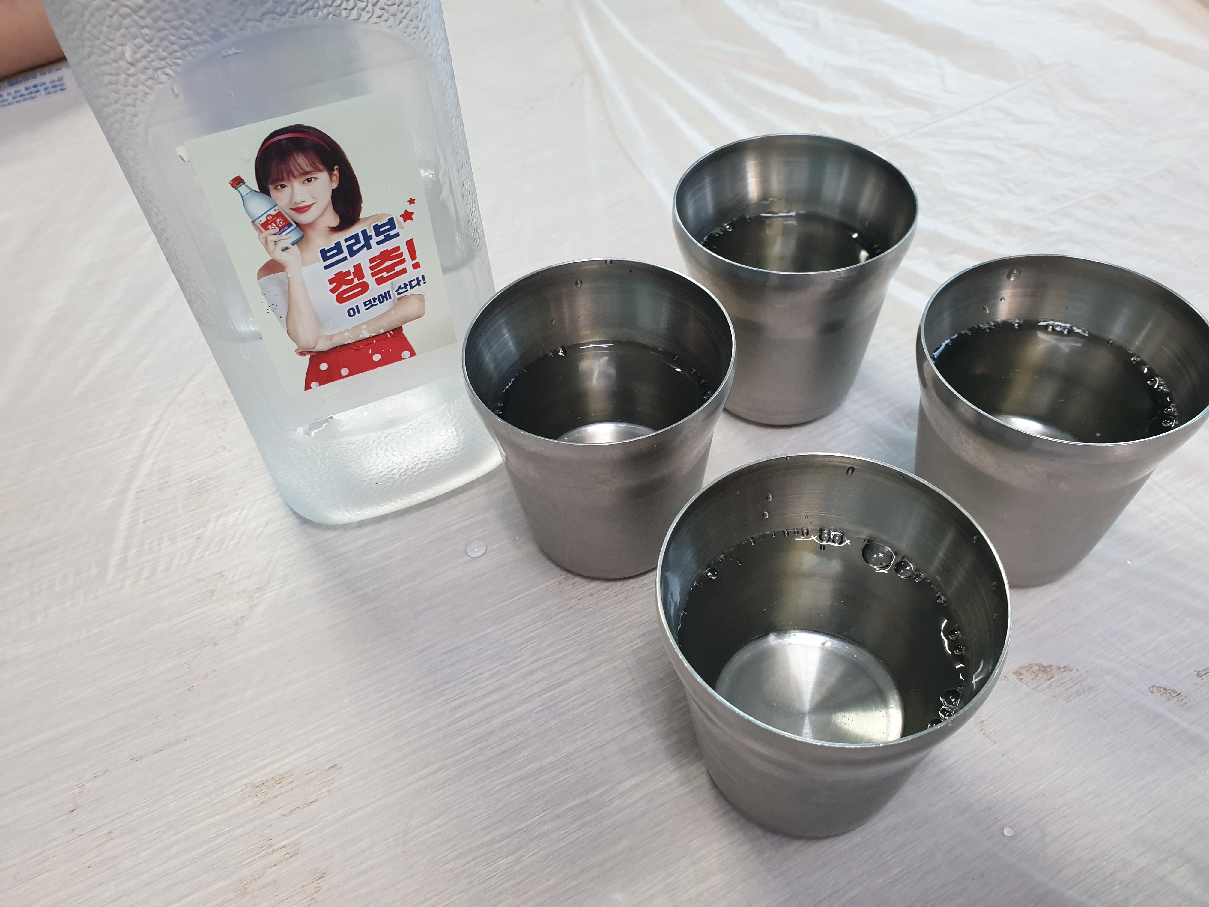 기본 물 세팅입니다. 일반 생수가 제공이 되며 컵은 스텐컵입니다. 종이컵만 보다가 오랜만인 느낌입니다. 반갑네요.
