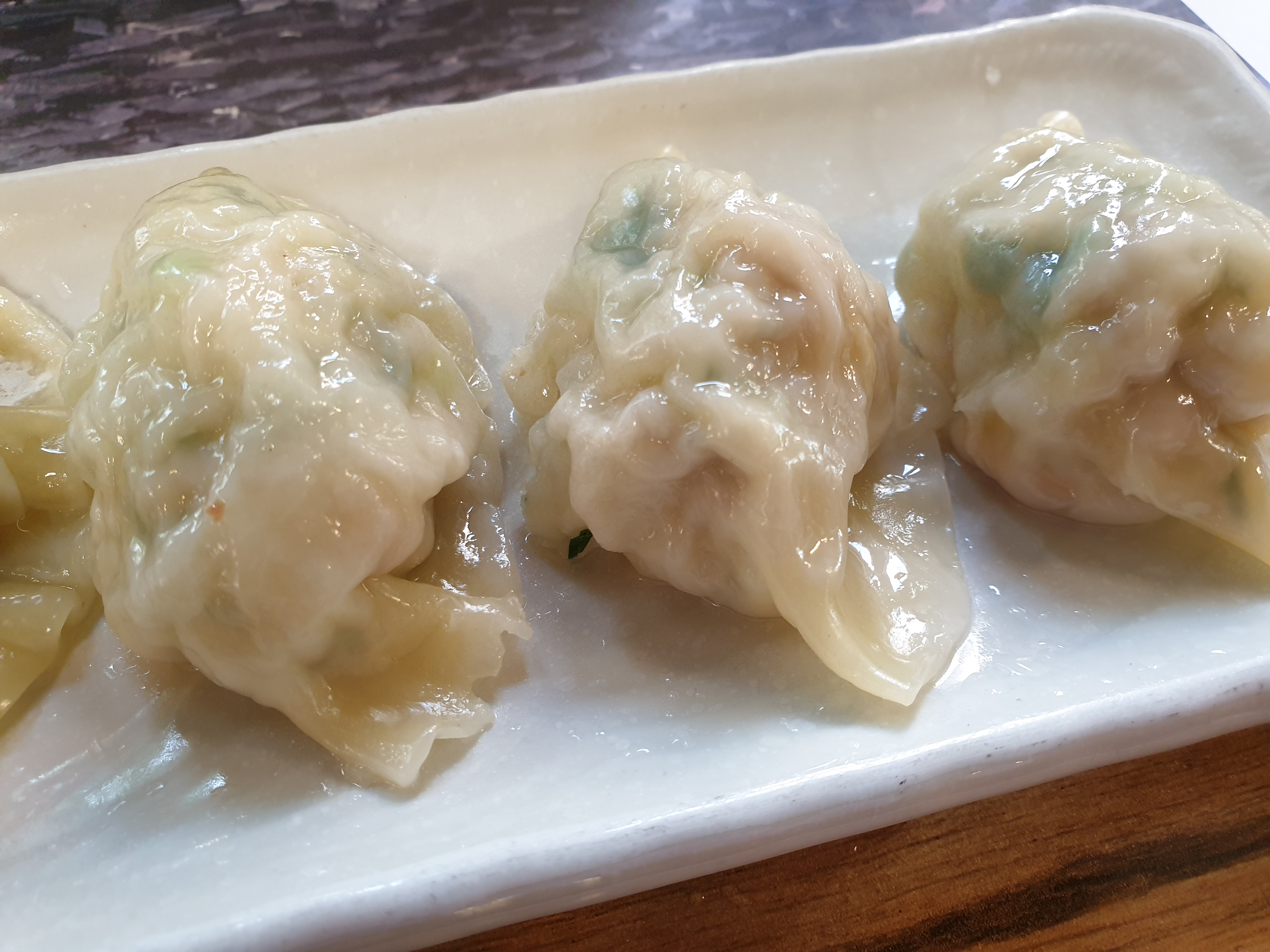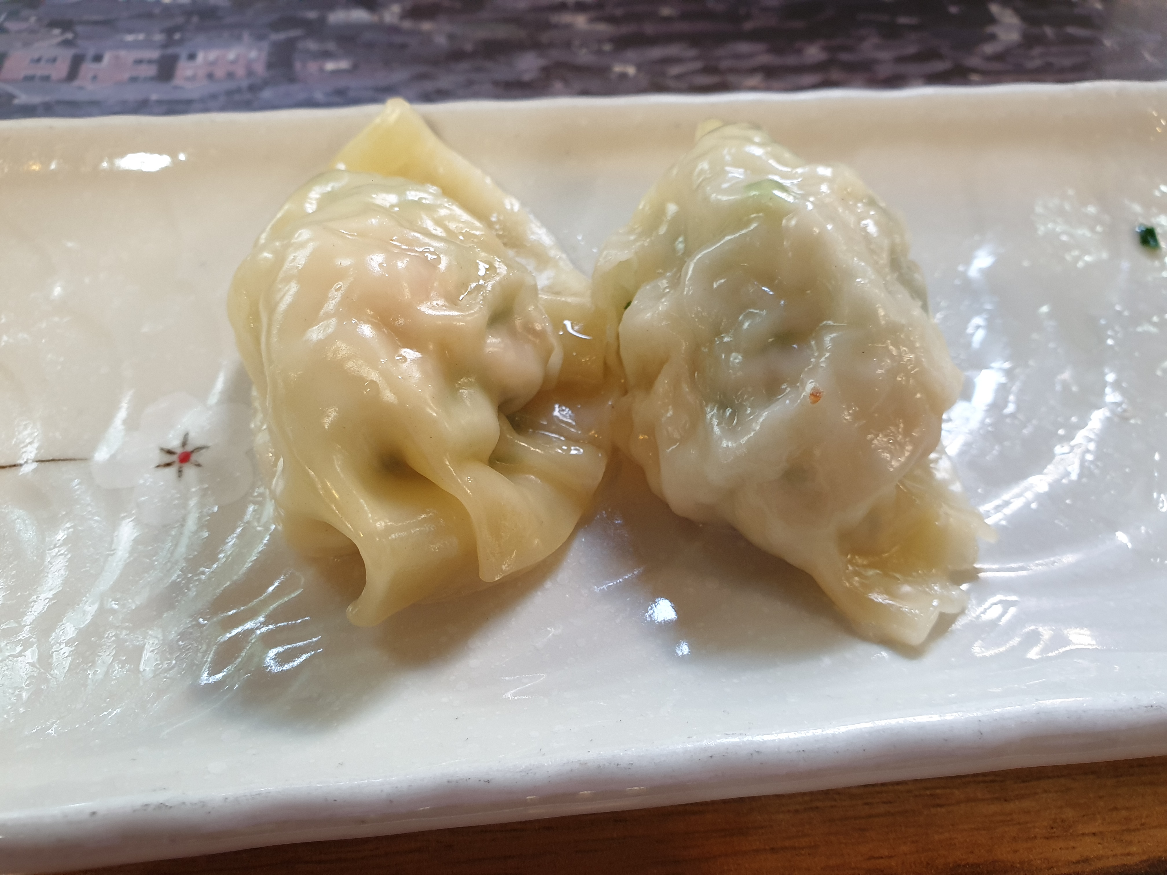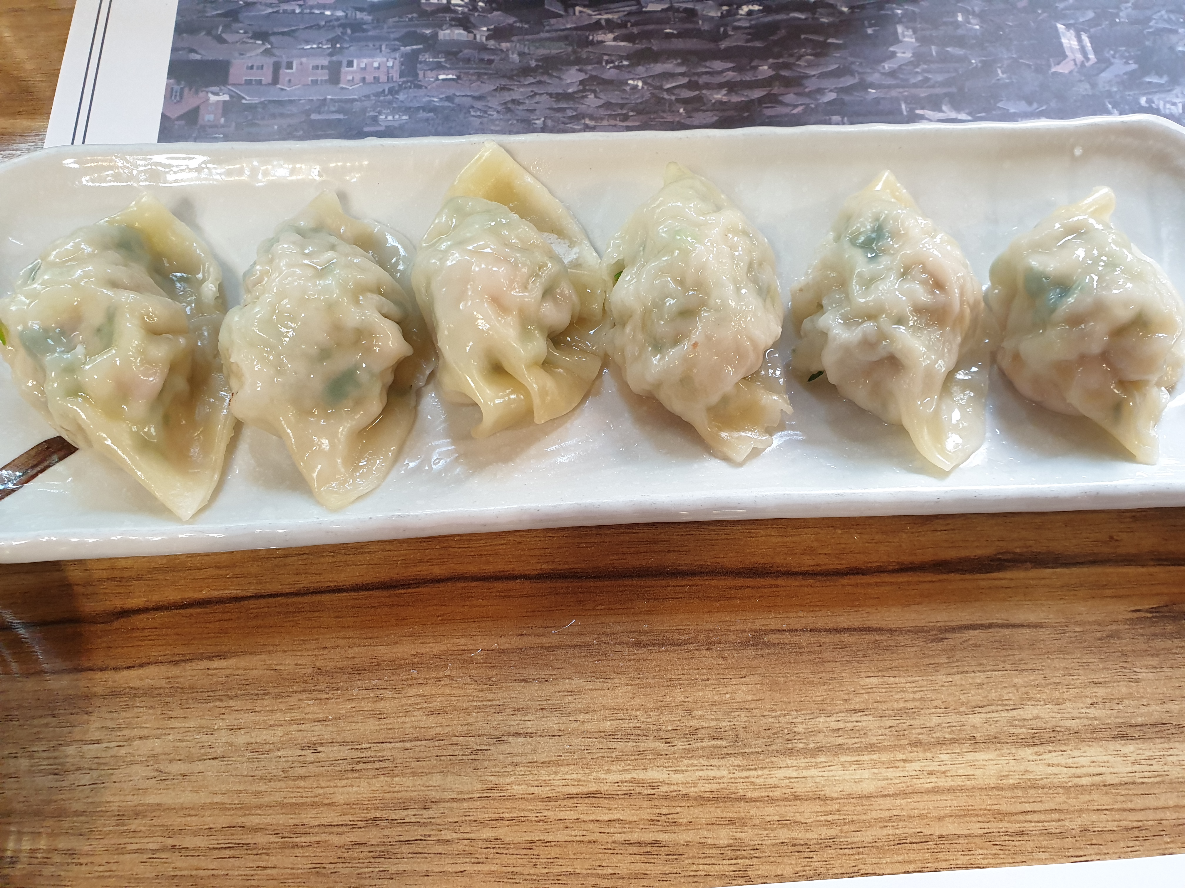 기다리던, 그러나 기대는 크게 하지 않은 손찐만두(7,000원)가 나왔습니다. 그런데 냉면 시킨 김에 곁들여 시킨 만두가 비주얼이 일단 예사롭지가 않습니다. 만두피가 두툼 한거 같으면서도 만두속이 비쳐보입니다.