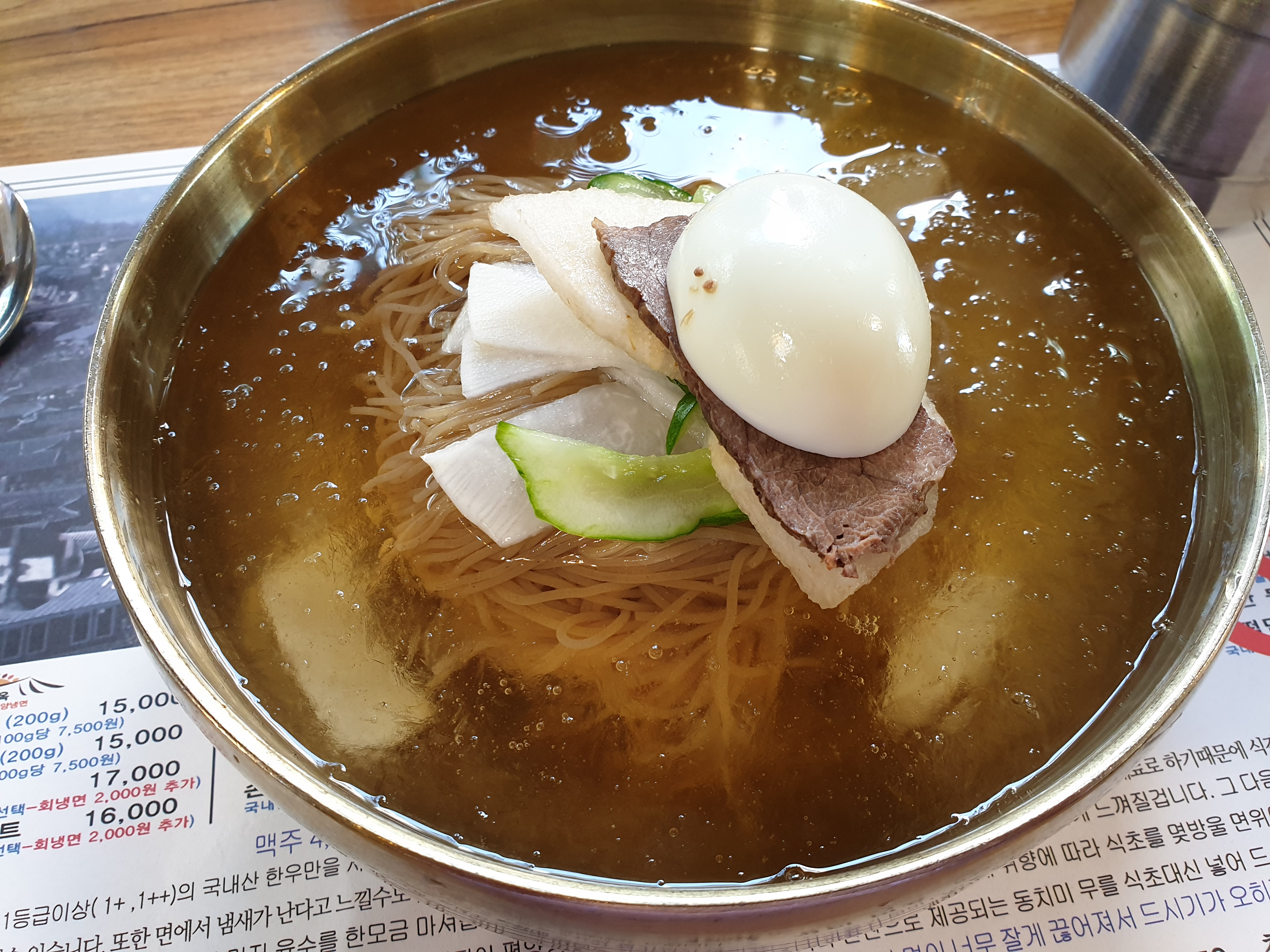 맛에 대해 느낀바는 정말 맛있다는 것입니다. 같이 간 동행의 경우엔 평양냉면을 처음 접하는 사람이었습니다만 너무너무 맛있다고 아주 좋아했습니다. 저도 인정할 수 밖에 없는 맛이었습니다. 이 육수는 텀블러에 담아 여름에 들고다니며 마시고 싶다고 했습니다. 참고가 되시길 바라겠습니다.