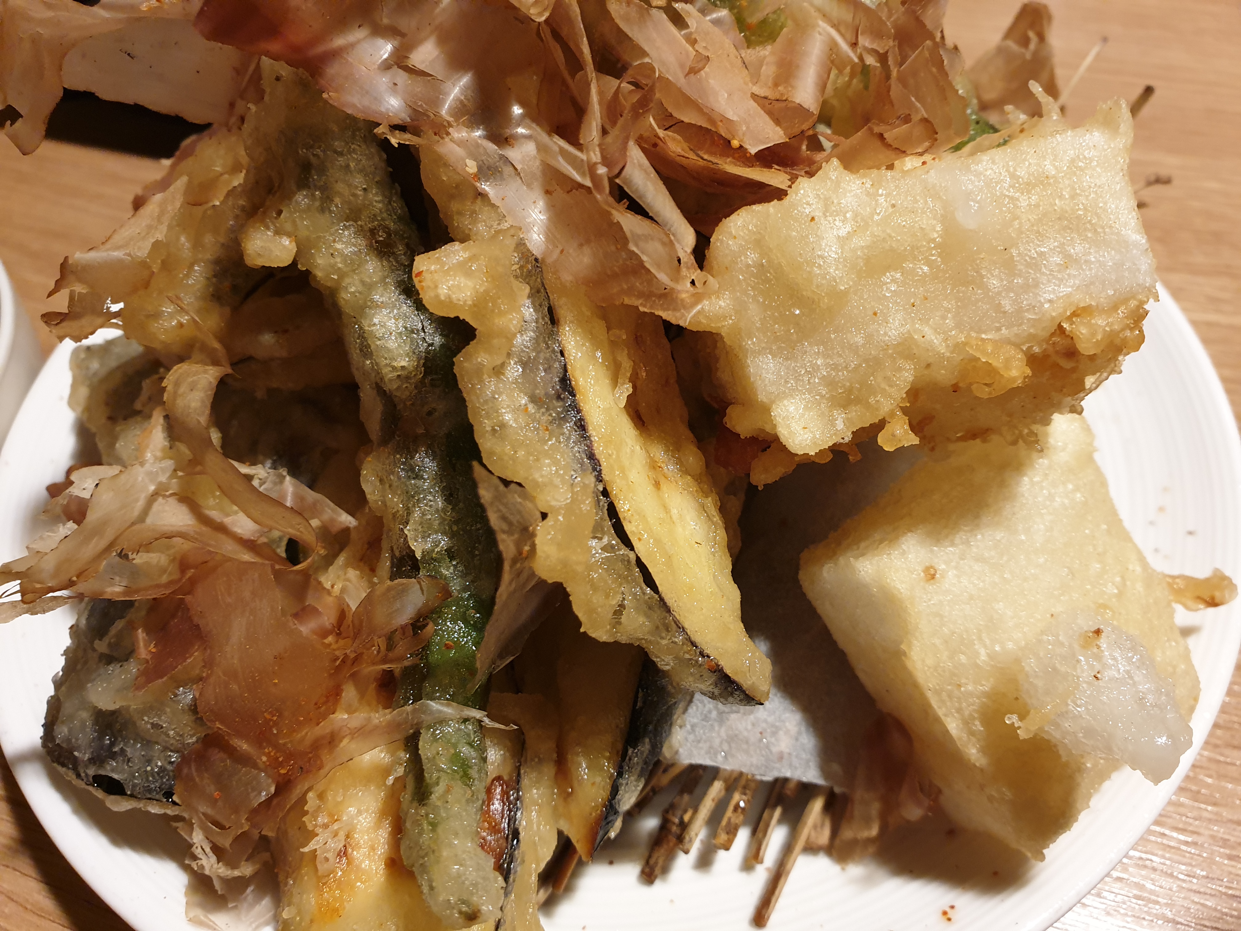 다음 안주는 가지 튀김(10,000원) 입니다. 이것도 혼술 대 마왕 각이 날카롭습니다. 그런데 지삼선과는 결이 좀 다르고 말 그대로 가지 튀김입니다. 먹어 보니 그냥 그런 느낌이 들었습니다. 저의 최애 안주 중 하나가 마라 미방에서 판매하는 지삼선인데요, 이 가지 튀김도 술 안주로 너무 좋았습니다. 그리고 가지 튀김이라고 해서 가지만 튀겨진건 아니고 고추나 떡도 몇 점 함께 튀겨져 나온답니다.