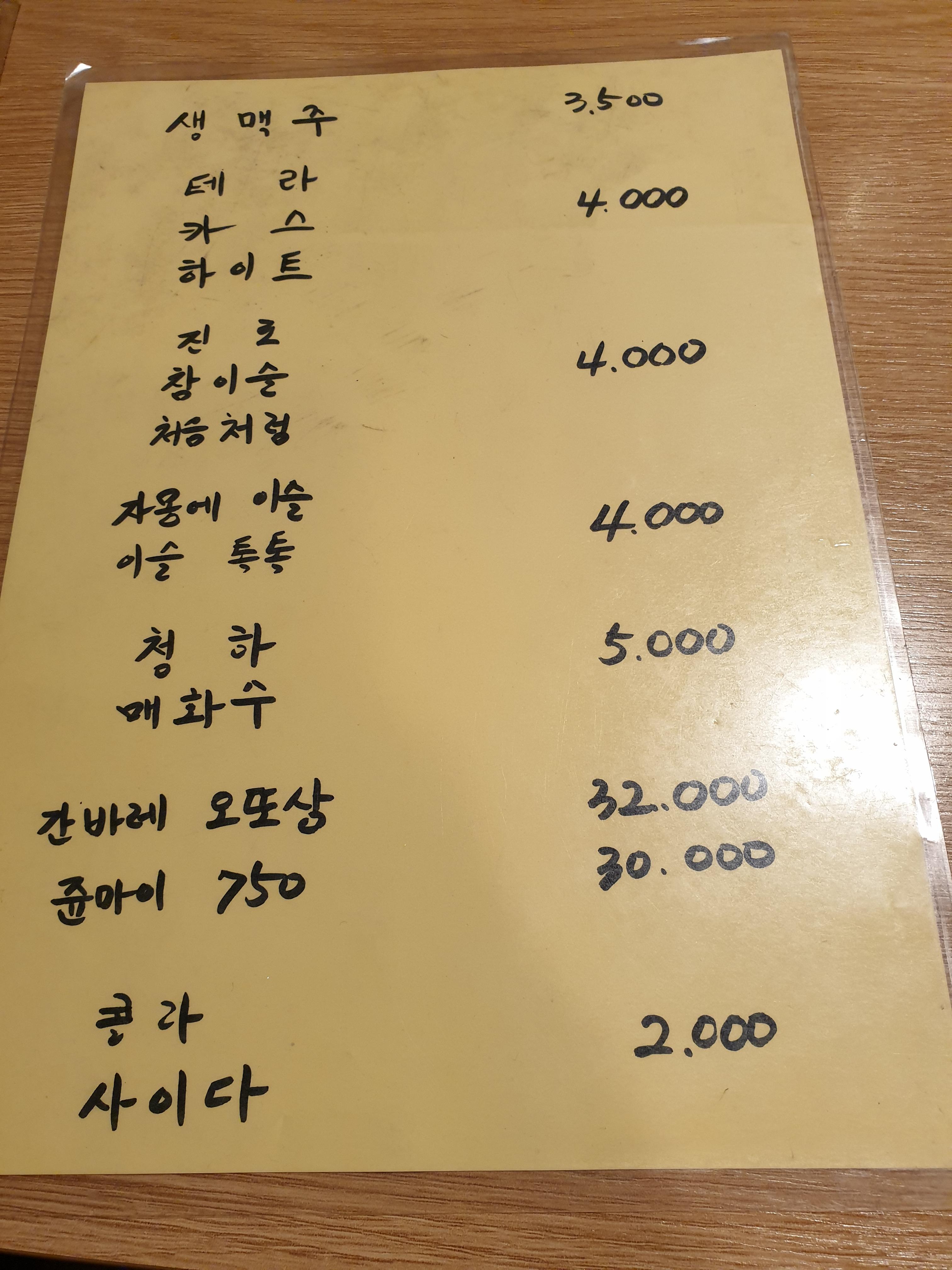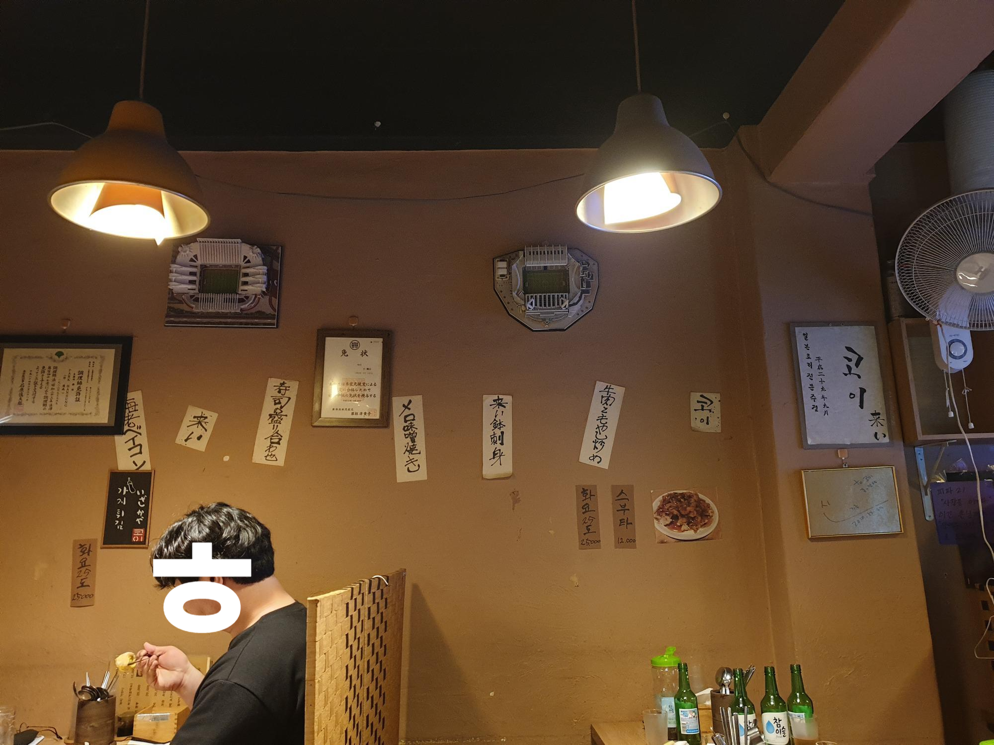 안주 기다리는 동안 가게의 내부 모습입니다. 가게는 정말 작습니다. 그래도 테이블 8개 정도는 깔려있는것 같습니다. 일단 테이블이 거의 다 차 있었습니다. 그런데 사장님 혼자서 요리하랴 청소하랴 분주하신데 돌아가는게 제일 신기했습니다. 사장님은 엄청나게 친절하신분이셨는데 정말 악의 없이 헤헤 하시며 이것저것 챙겨주시는게 인상깊었습니다. 상당한 내공의 소유자같은 그런 느낌...?