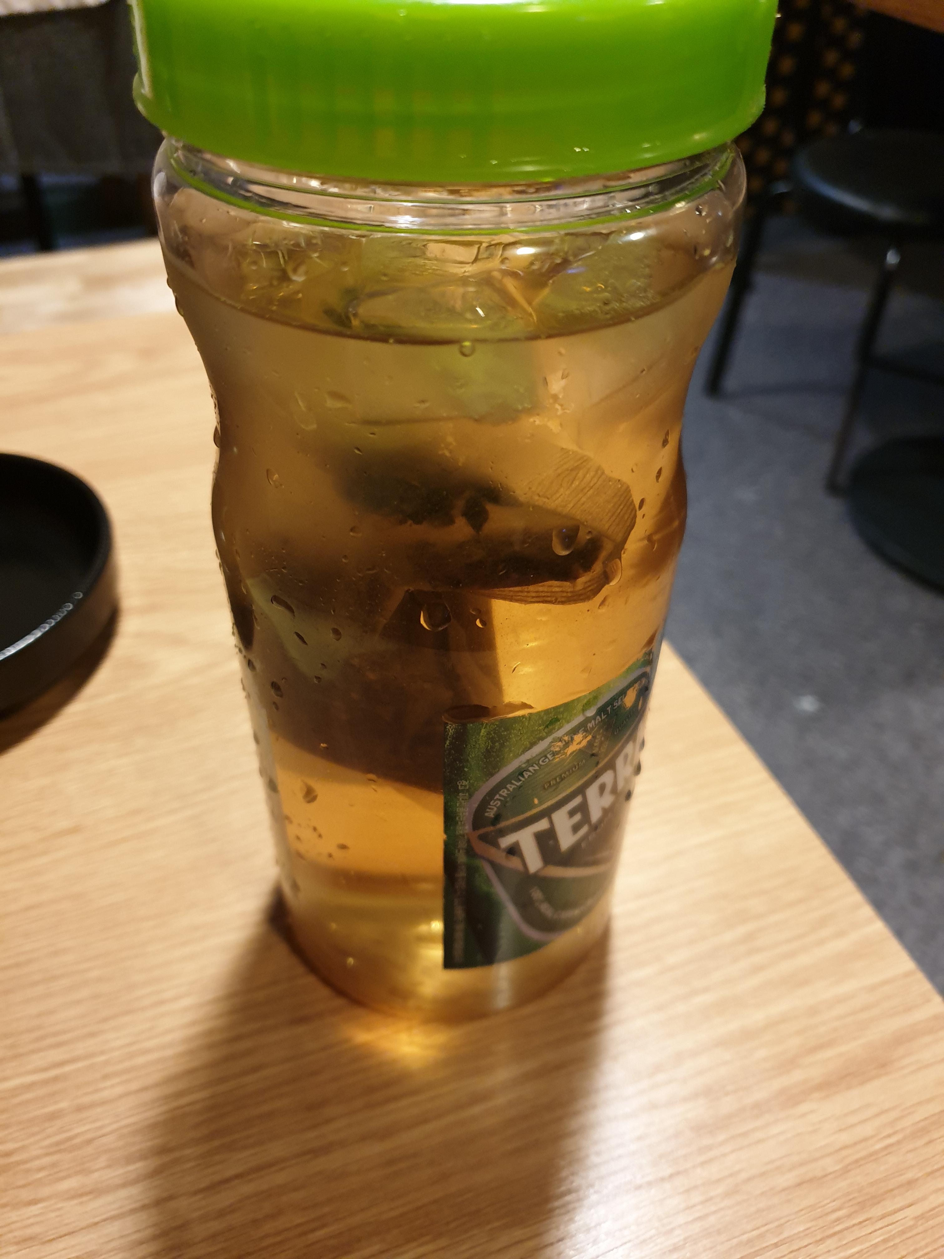 기본으로 제공되는 물입니다. 정확이 뭔지는 모르겠으나 큼직한 티백이 떡 들어가 물색이 맛있어 보입니다. 둥둥 떠있는 얼음은 진짜 시원해 보입니다. 방문을 위해 한동안 걸었기에 땀뻘뻘이었는데 물 딱 보곤 얼마나 시원할지 목구멍이 기대하는게 느껴질 정도입니다.