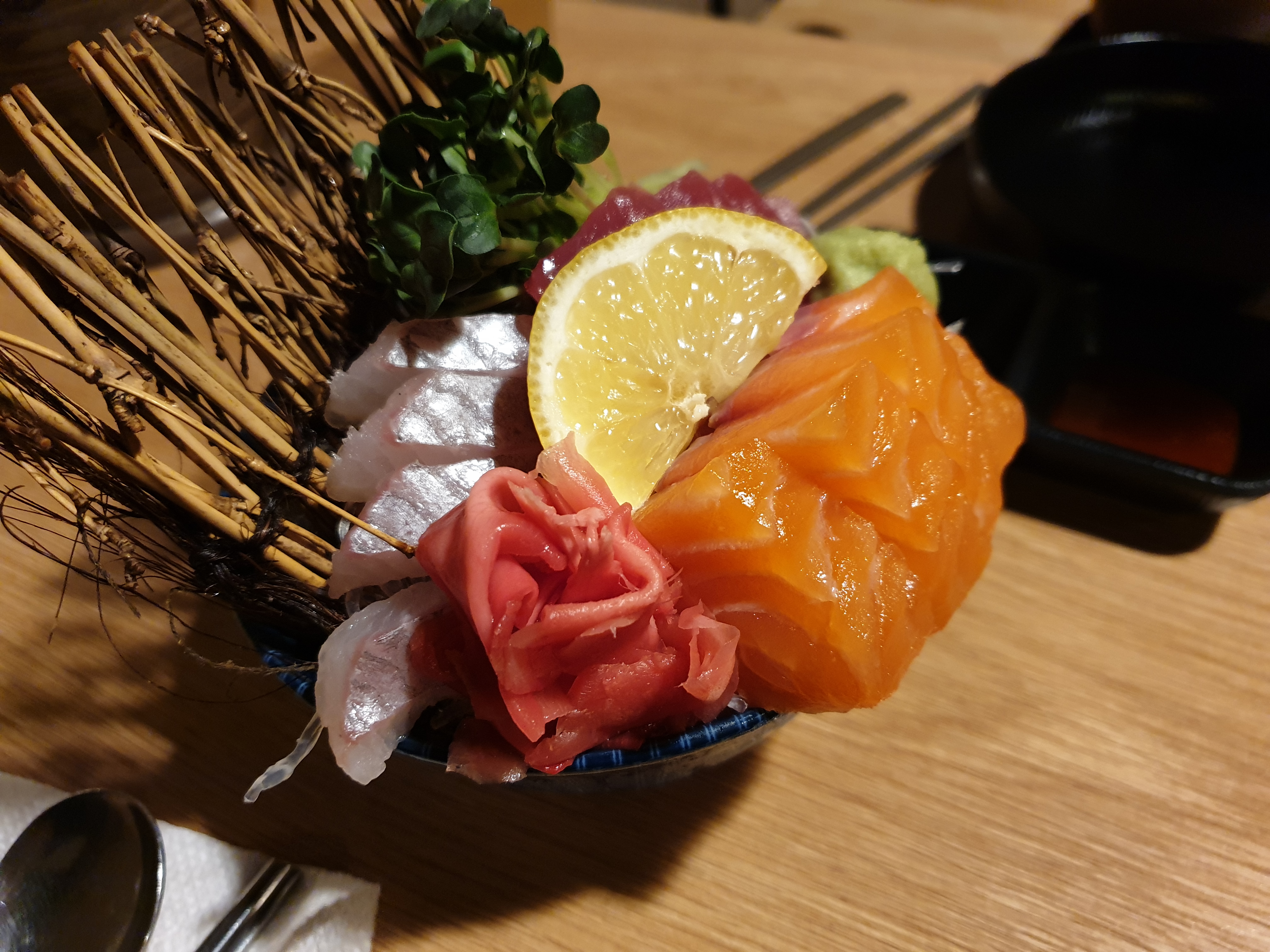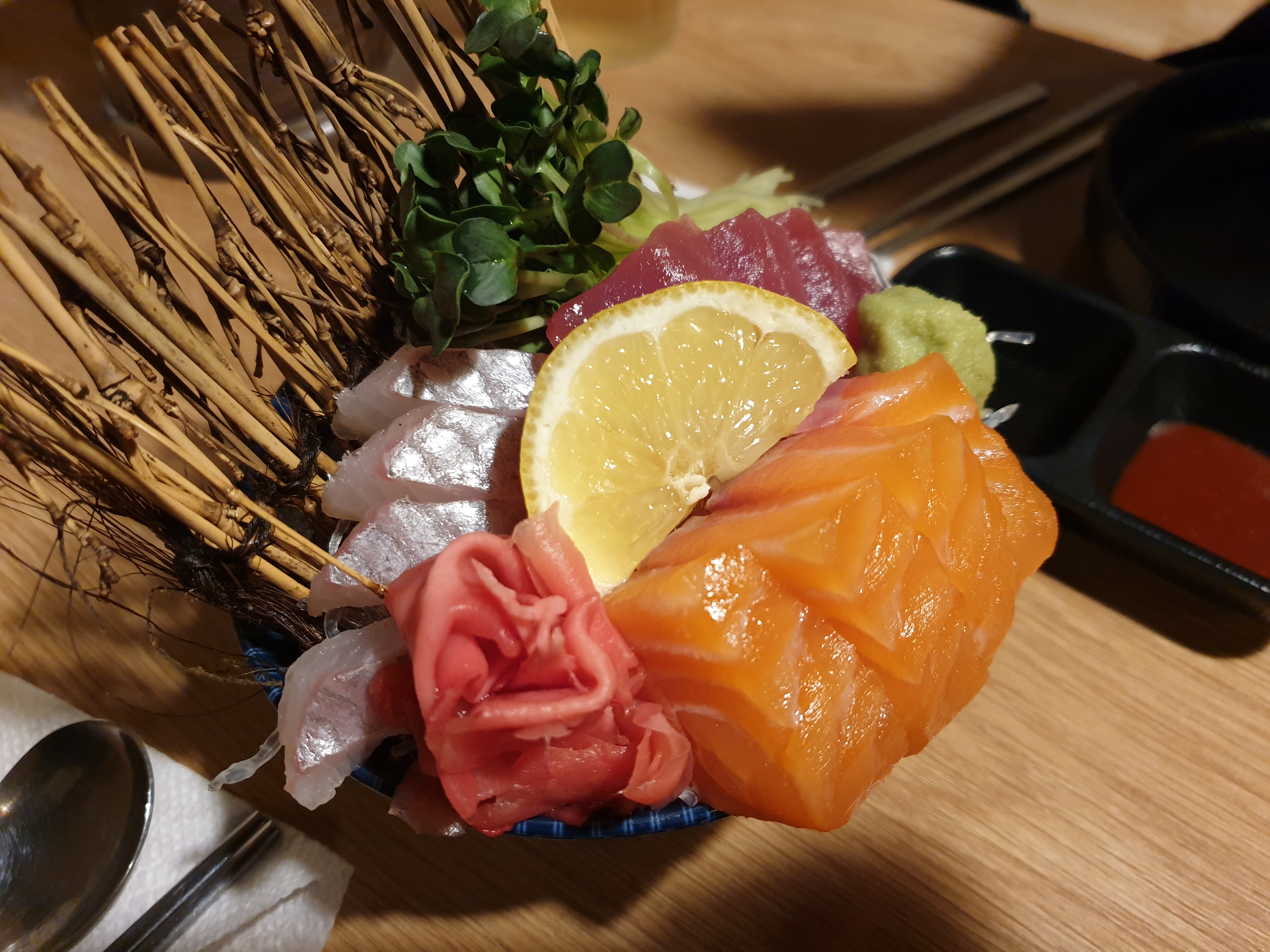 일단 코이의 메뉴판입니다. 직접 손수 제작하신것같은 느낌의 주류 메뉴부터 두 페이지 가량의 다양한 안주를 제공하십니다. 주방 안에 도와주시는 분이 계실 줄 알았는데 남자사장님 혼자 전부 하신다고 합니다. 일단 사발 사시미(12,000원) 하나를 주문해 봤습니다.
