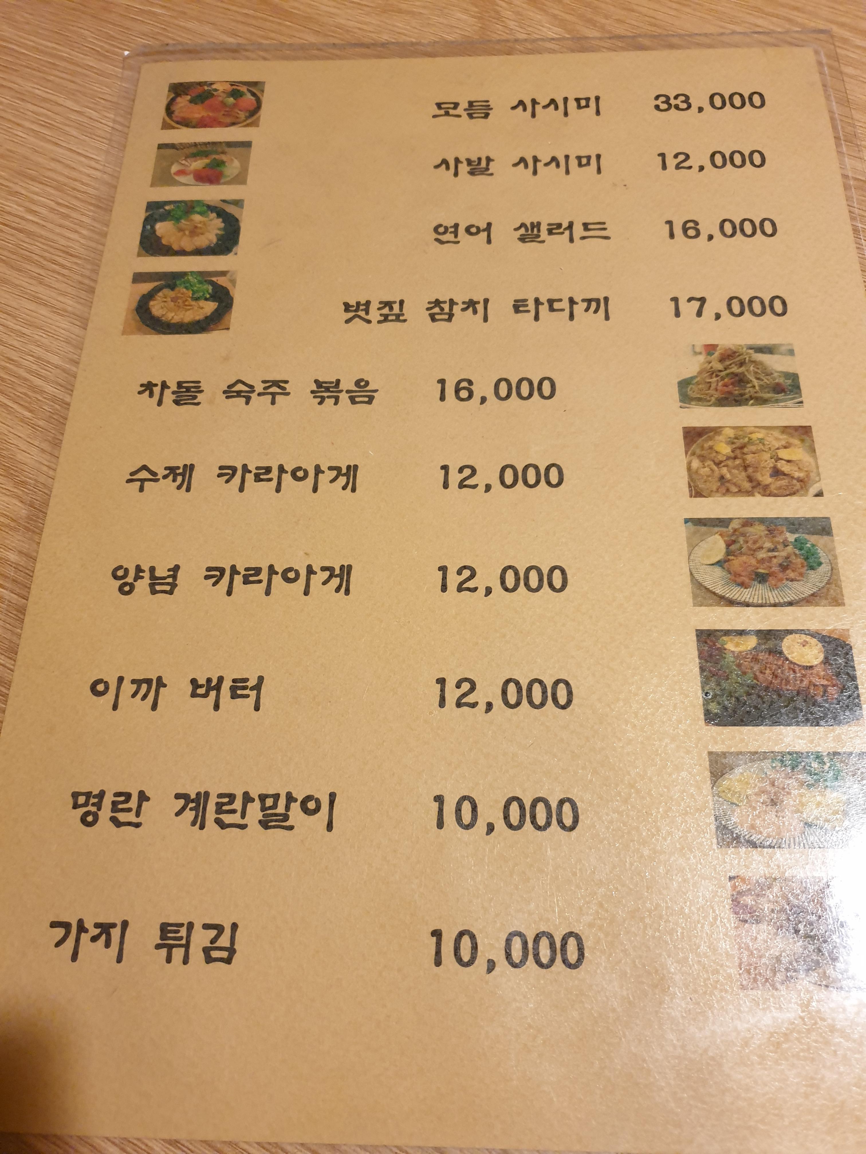 사시미 기본 세팅인가봅니다. 초장과 간장이 나왔습니다. 따로 기본반찬이나 기본안주는 나오지 않았던것 같습니다.