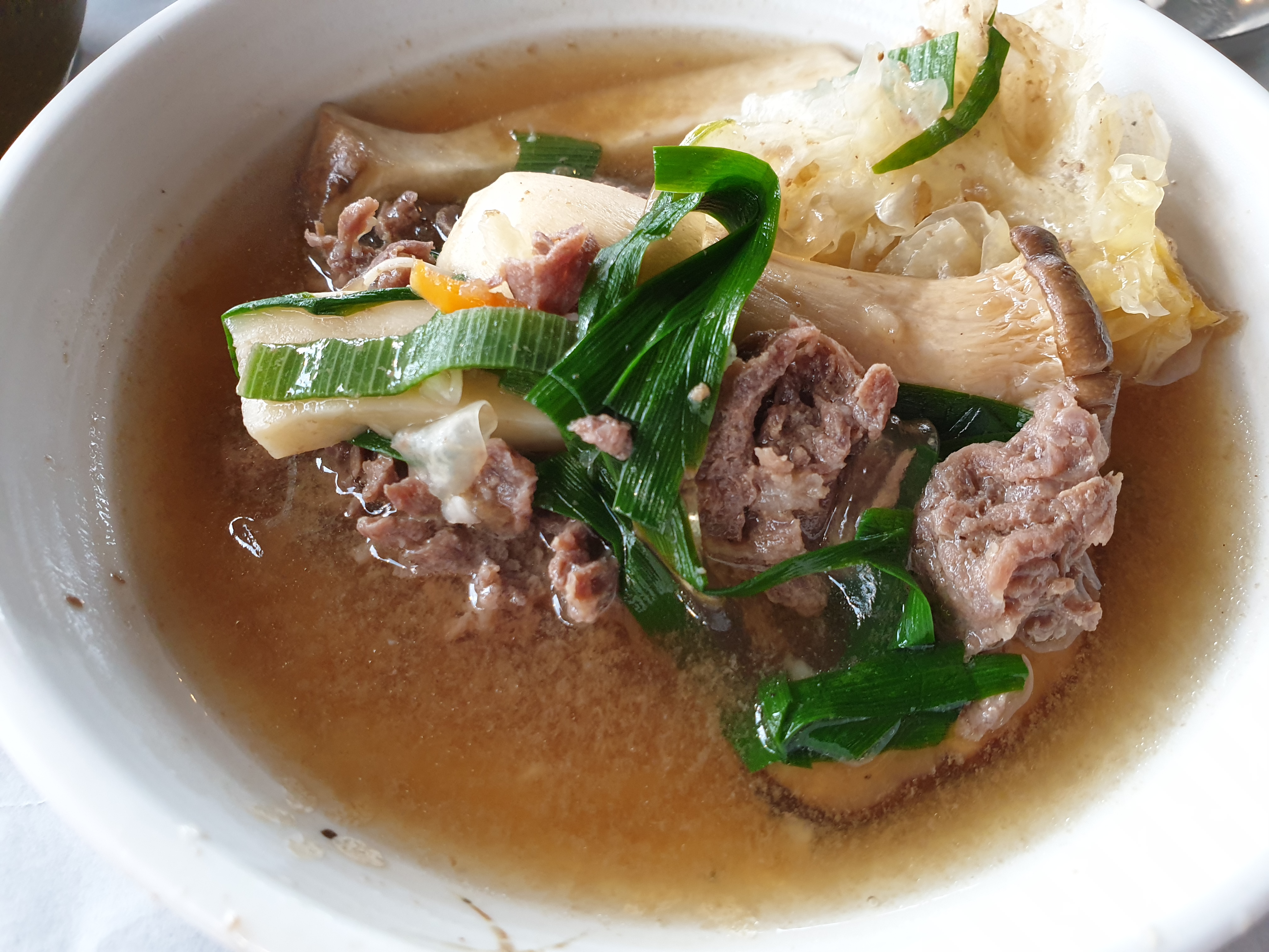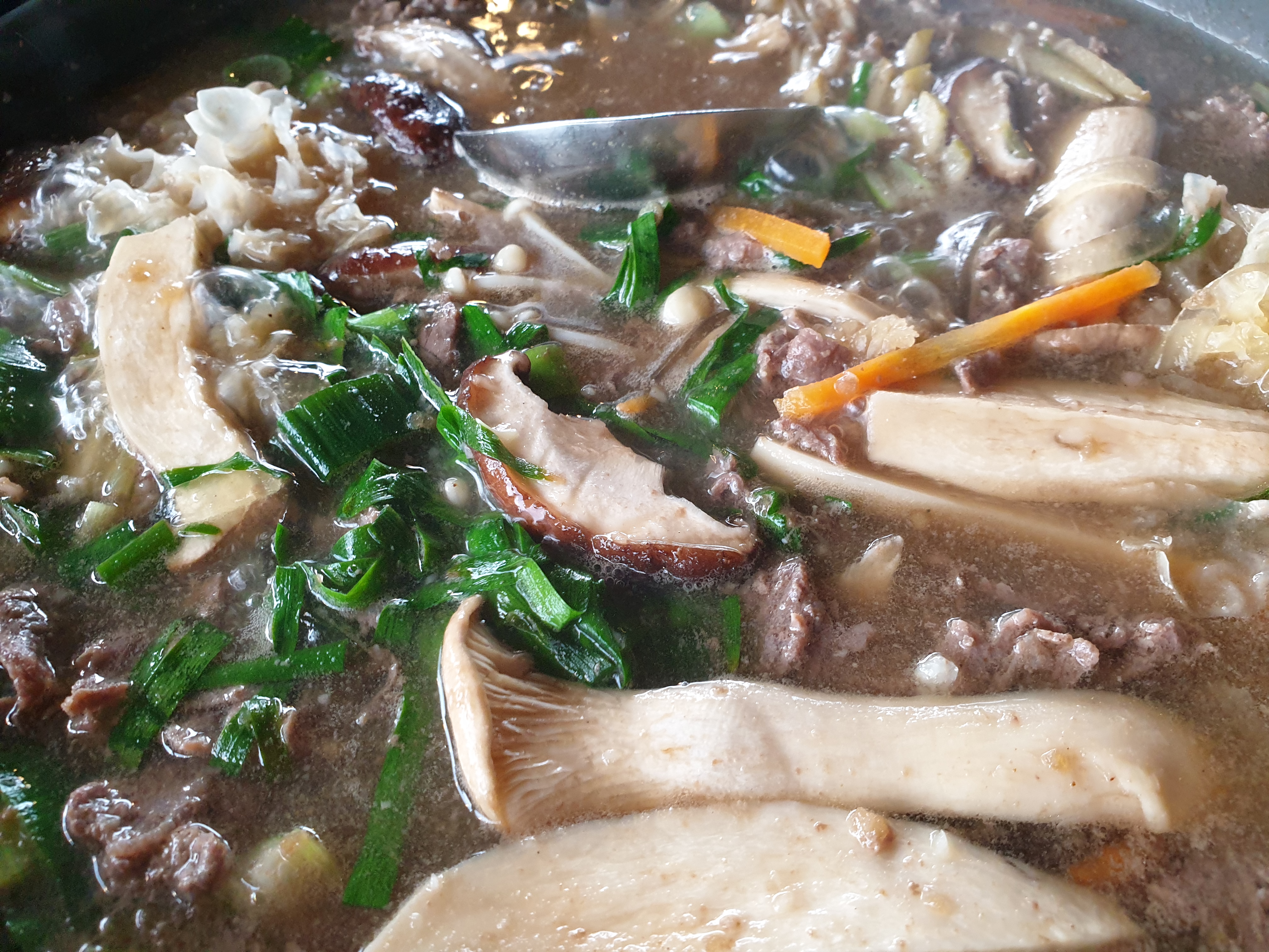 한우버섯불고기전골(15,000원/1인분)입니다. 정돈되어 있을때의 사진이 없는것이 아쉽습니다. 제가 일찍이 사진을 찍었어야 했는데 죄송합니다. 일단 표고버섯, 새송이버섯 백목이버섯 등등 무수히 많은 버섯들이 인상적입니다. 개인적으로 버섯을 아주 좋아하는데요, 만약 버섯이 익숙하지 못한분이라면 집어 먹을것이 얼마 없다는 생각이 들 수도 있겠습니다.