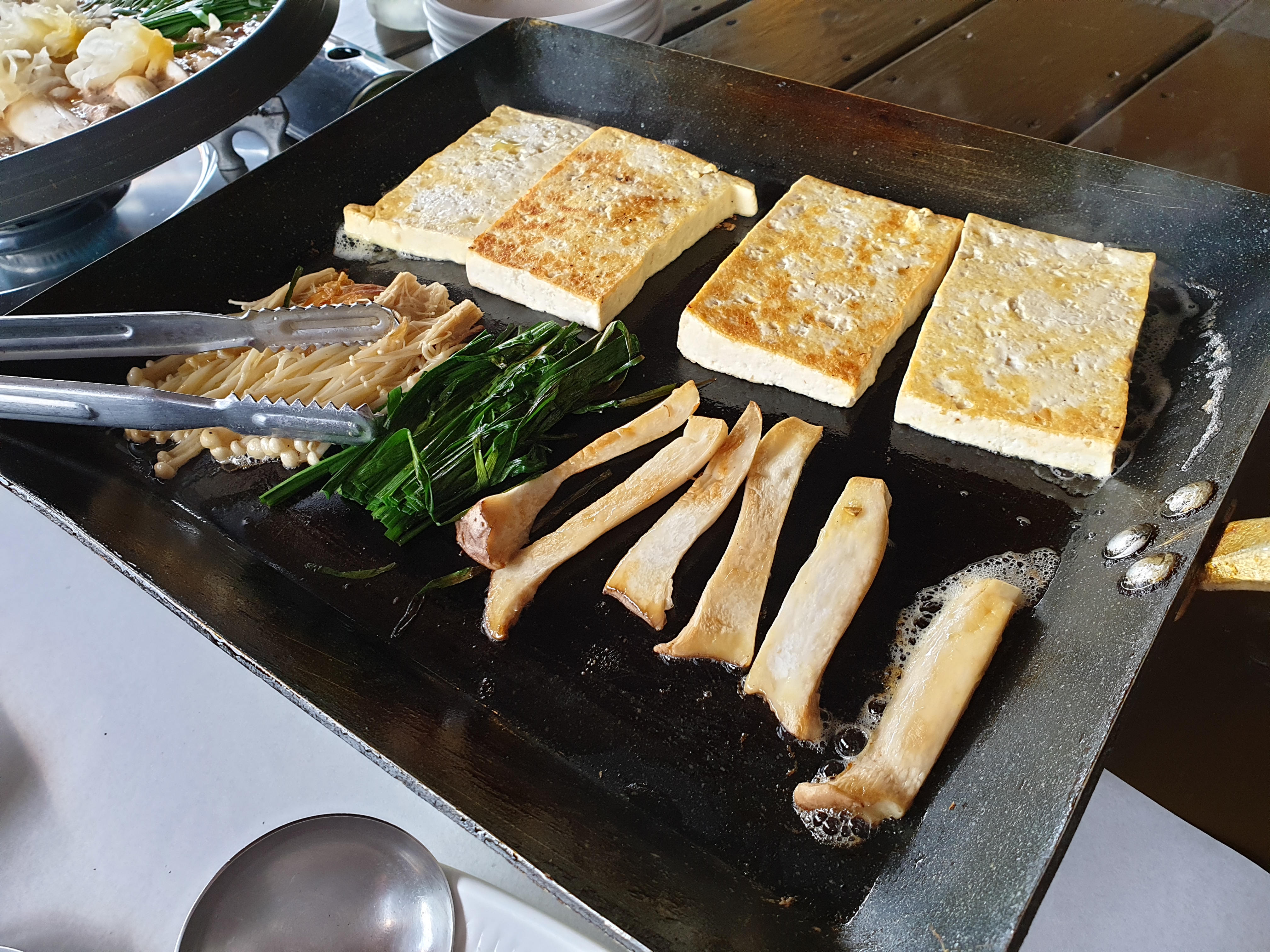 일단 들기름손두부구이(10,000원)입니다. 아마도 직접 한듯한 두부와 팽이버섯, 부추, 새송이버섯 등 이 올라가며, 사장님이 직접 구워주십니다. 들기름향이 일단 폴폴 올라오는것이 이 부분에서 이미 콧구멍은 행복합니다.