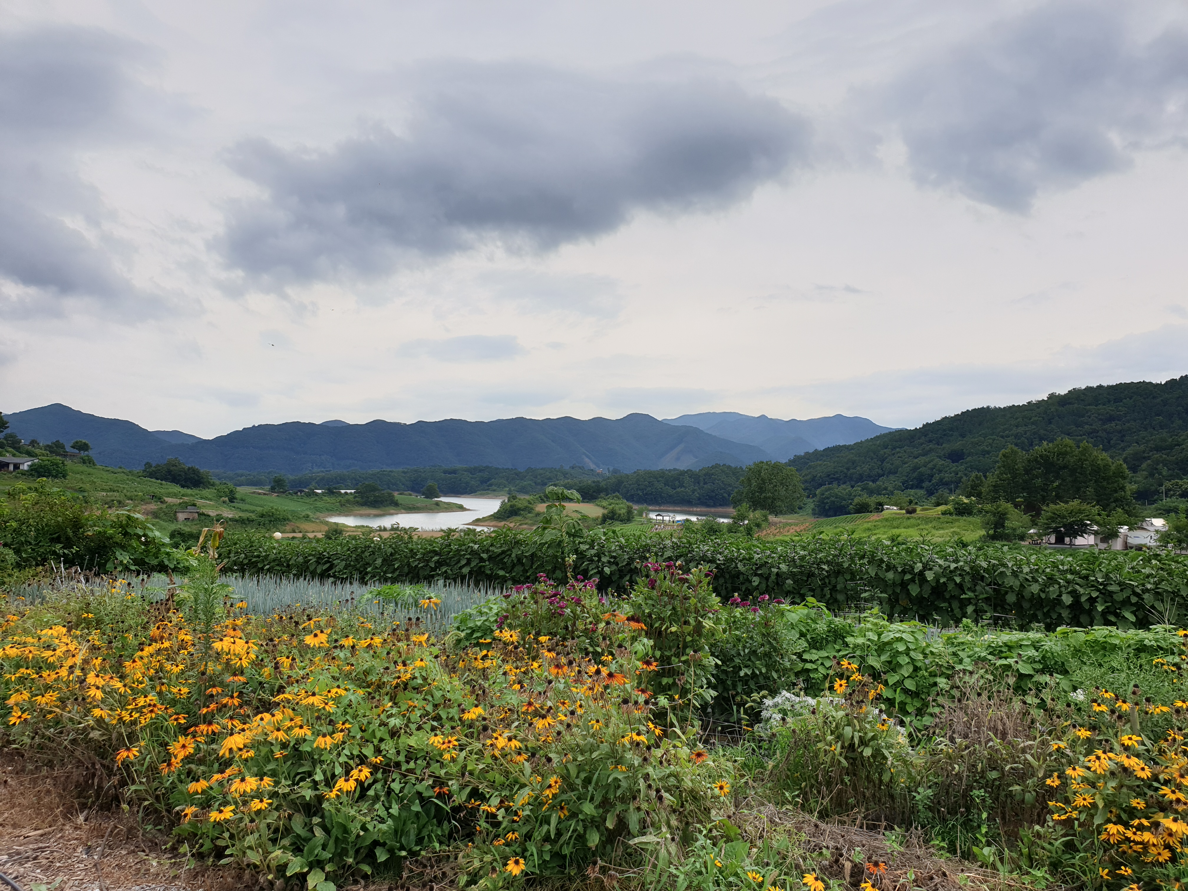 가게 테이블 앞의 경치입니다. 말 그대로 장관입니다. 드 넓은 벌판이랑 강물 저 너머로 산이 병풍처럼 쫙 두르고있는 모습입니다. 빌딩 숲만 보다가 보니 살짝 벅차오르는것이 있었습니다.