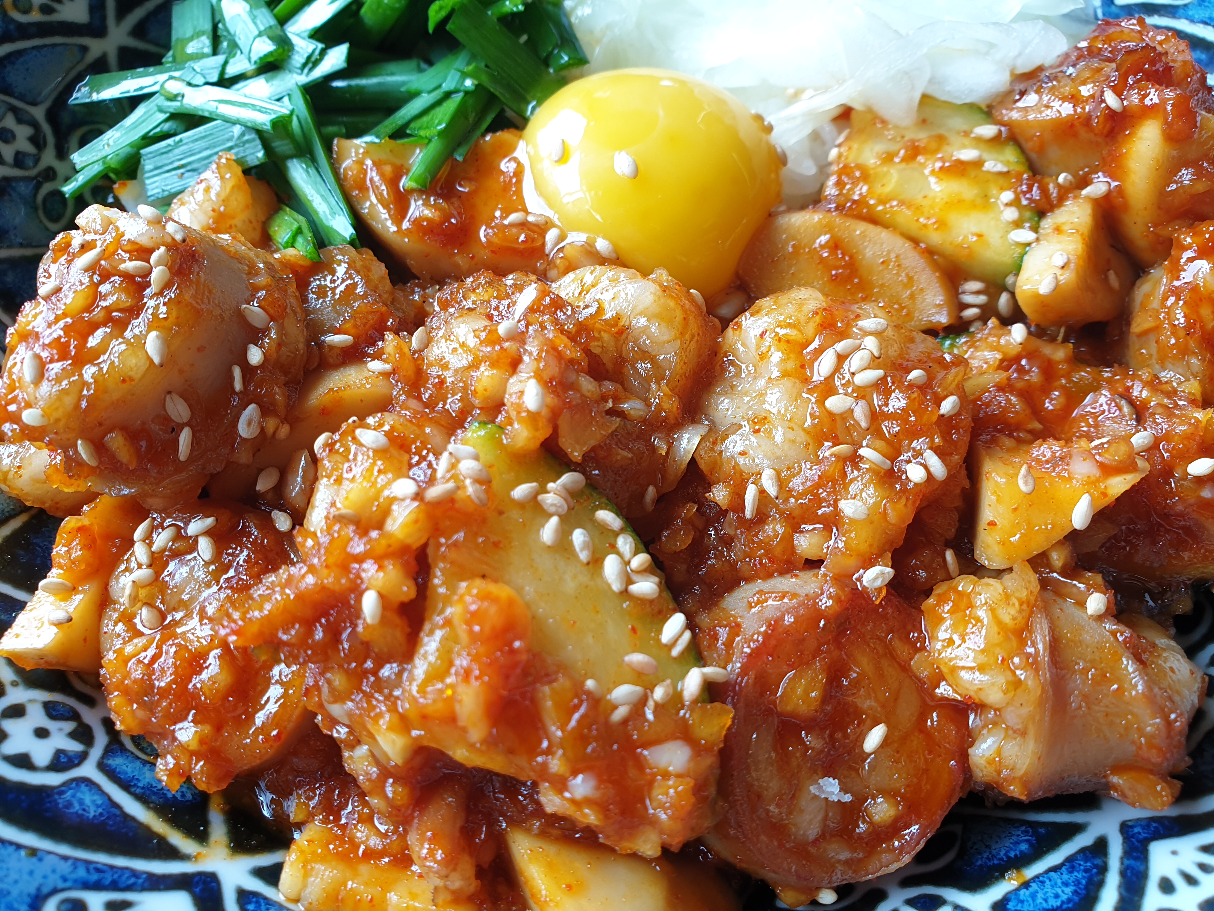 다음은 대창덮밥(13,900원)입니다. 앞의 참나물 파스타와 우삼겹크림 리조또는 둘만의 조합으로는 조또 느끼할 수 있습니다. 거기서 대창덮밥이 등장해서 밸런스를 환상으로 맞춰줍니다. 대창은 따로 놓고 먹어도 아주 맛있다고 할 수 있을정도로 정말 맛잇습니다. 그 외에 부추와 양파랑 비벼먹으면 그냥 큰일입니다. 아주 맛있습니다.