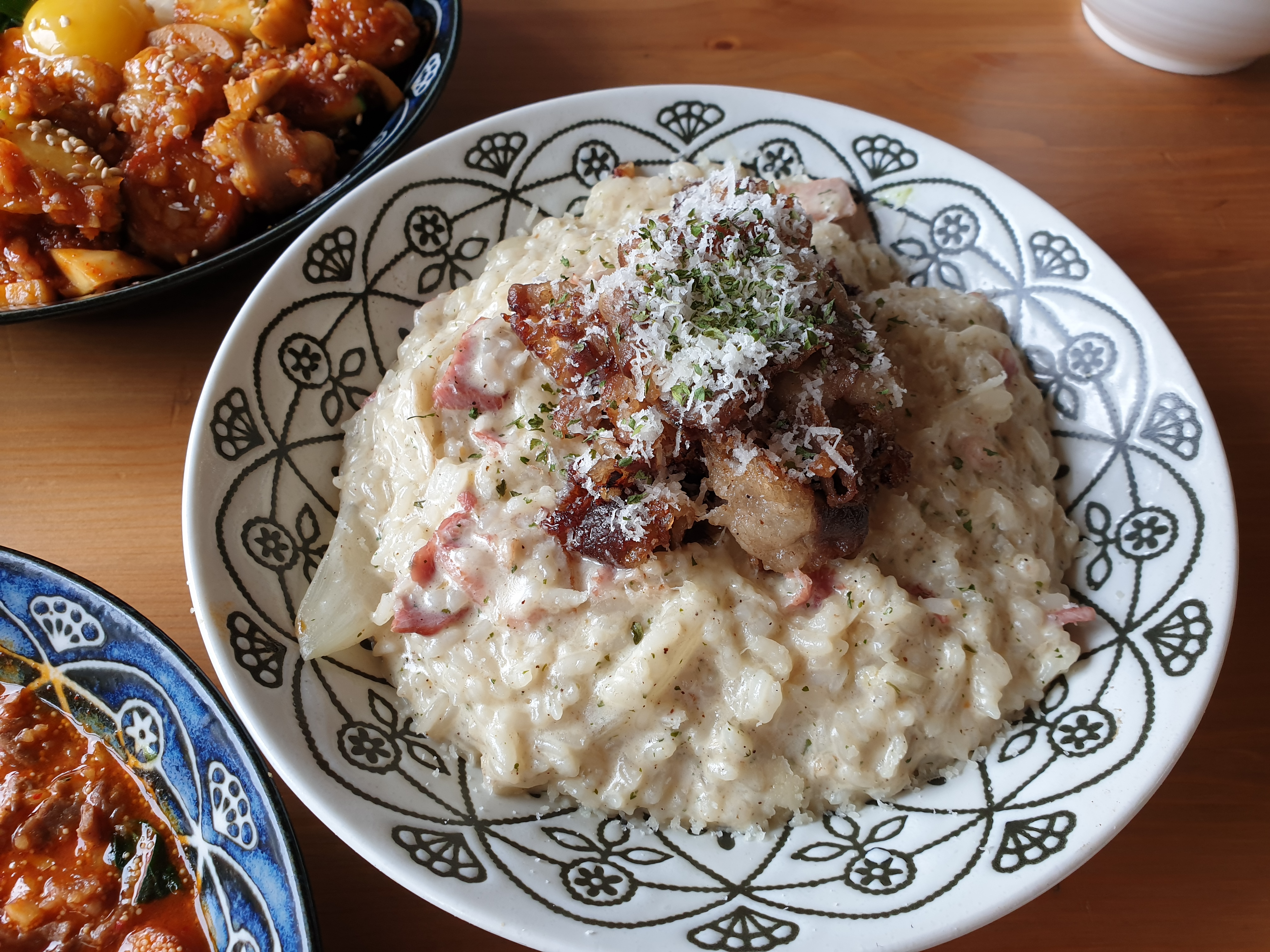 다음은 우삼겹 크림리조또(15,900원)입니다. 제가 또 리조또 좋아하는데요. 딱 보기만 해도 맛있을것같은 리조또입니다. 질어보이지도 않고 푸석해보이지도 않고 아주 그냥 먹기 딱좋은 모습에 밥알도 하나하나 살아서 보이는게 눈으로 찍어먹어보기만 해도 맛있다고 느껴집니다.(혀로 본 맛도 맛있었음)