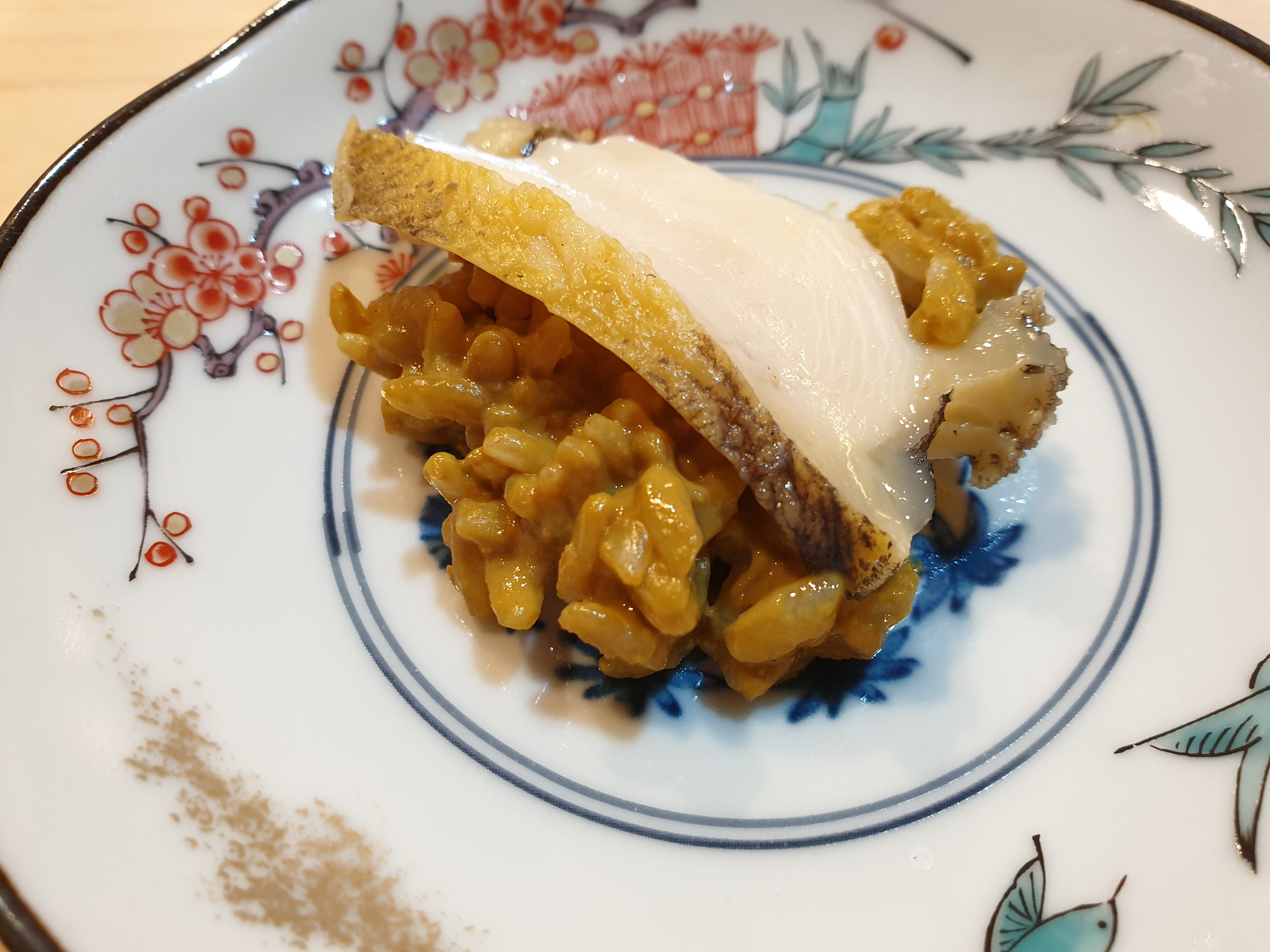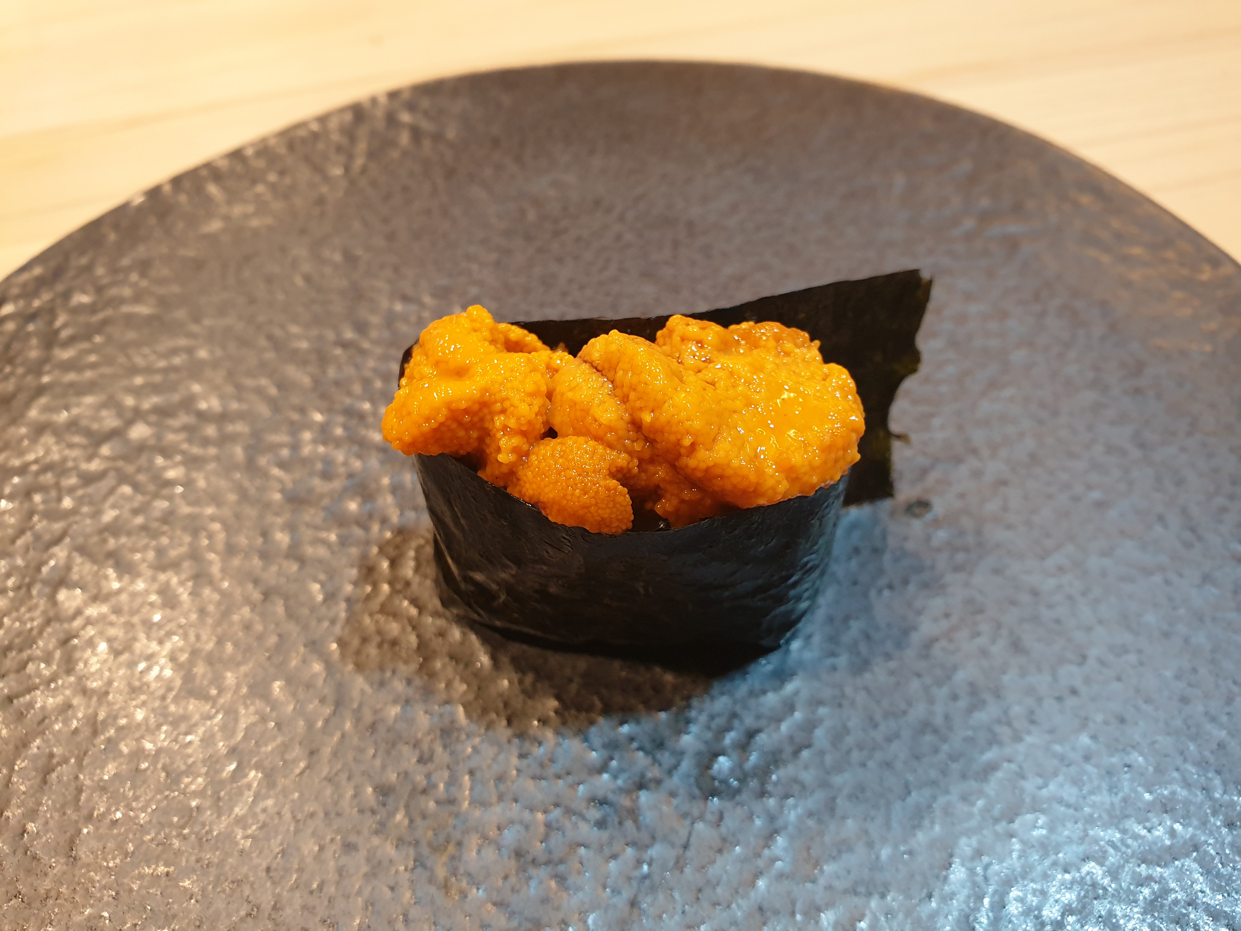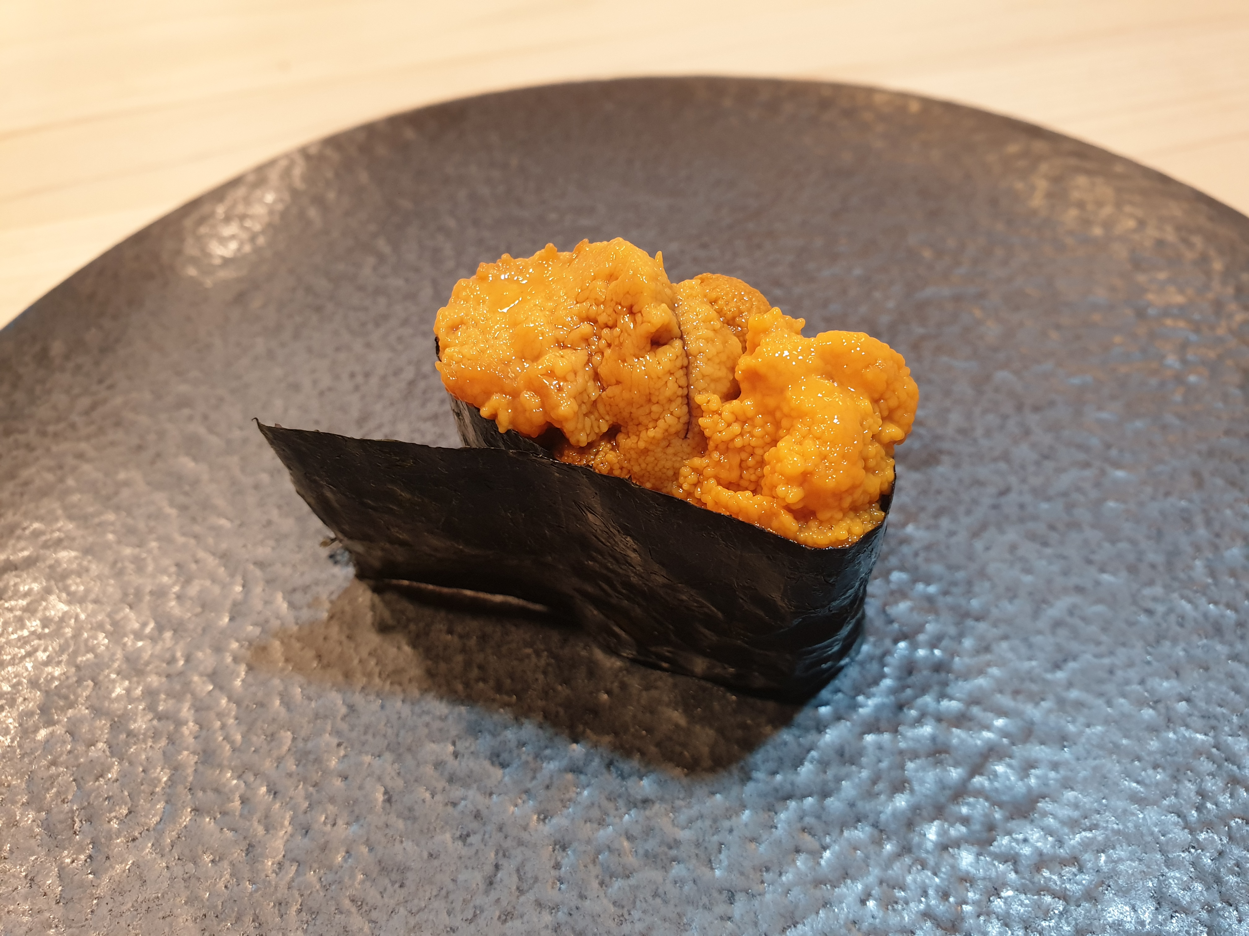 우니. 제주도에서 먹은 성게알과는 다른 모습 다른 형태이죠. 이것은 이것대로 아주 맛있었습니다. 한입에 쏙.