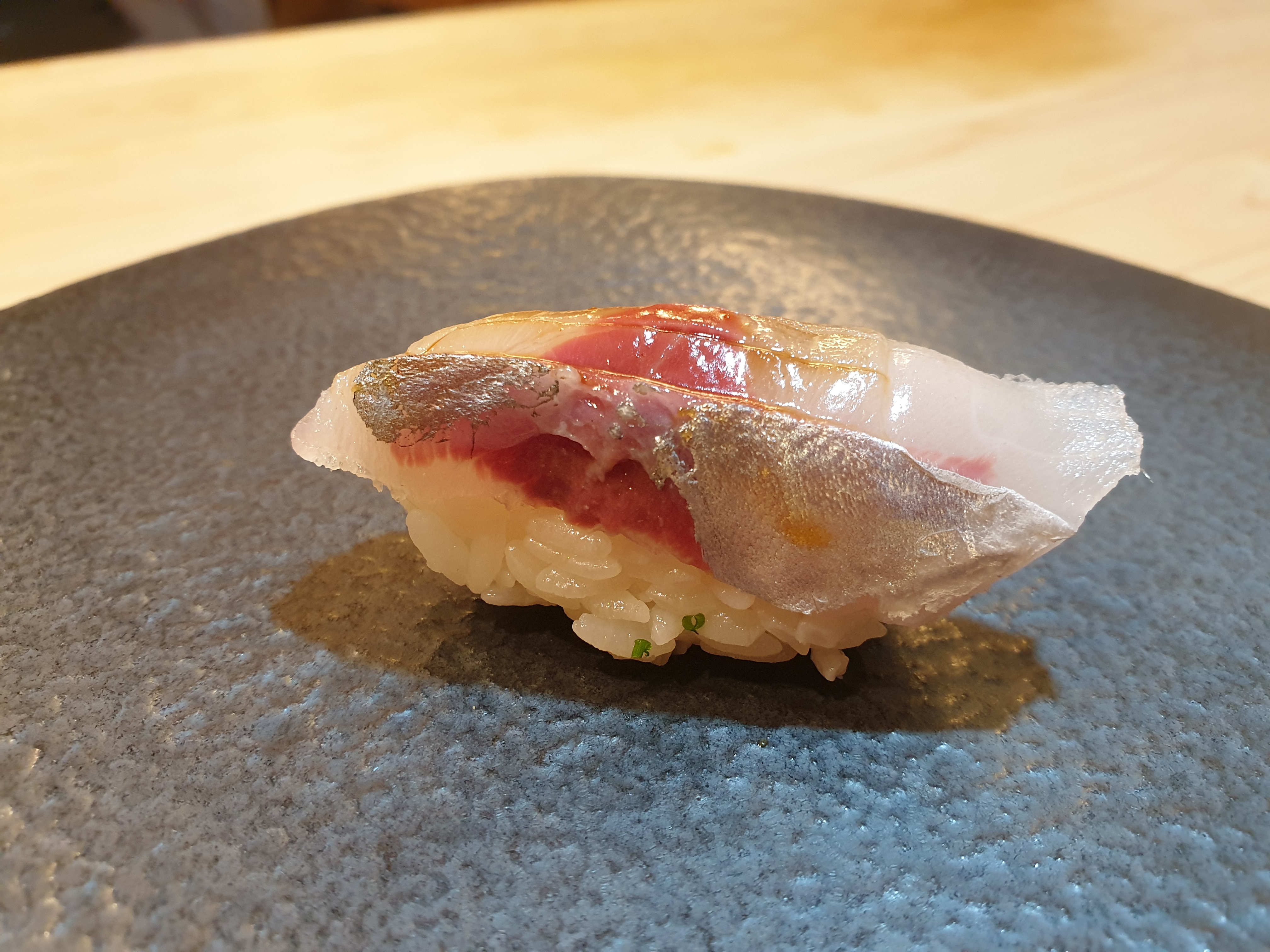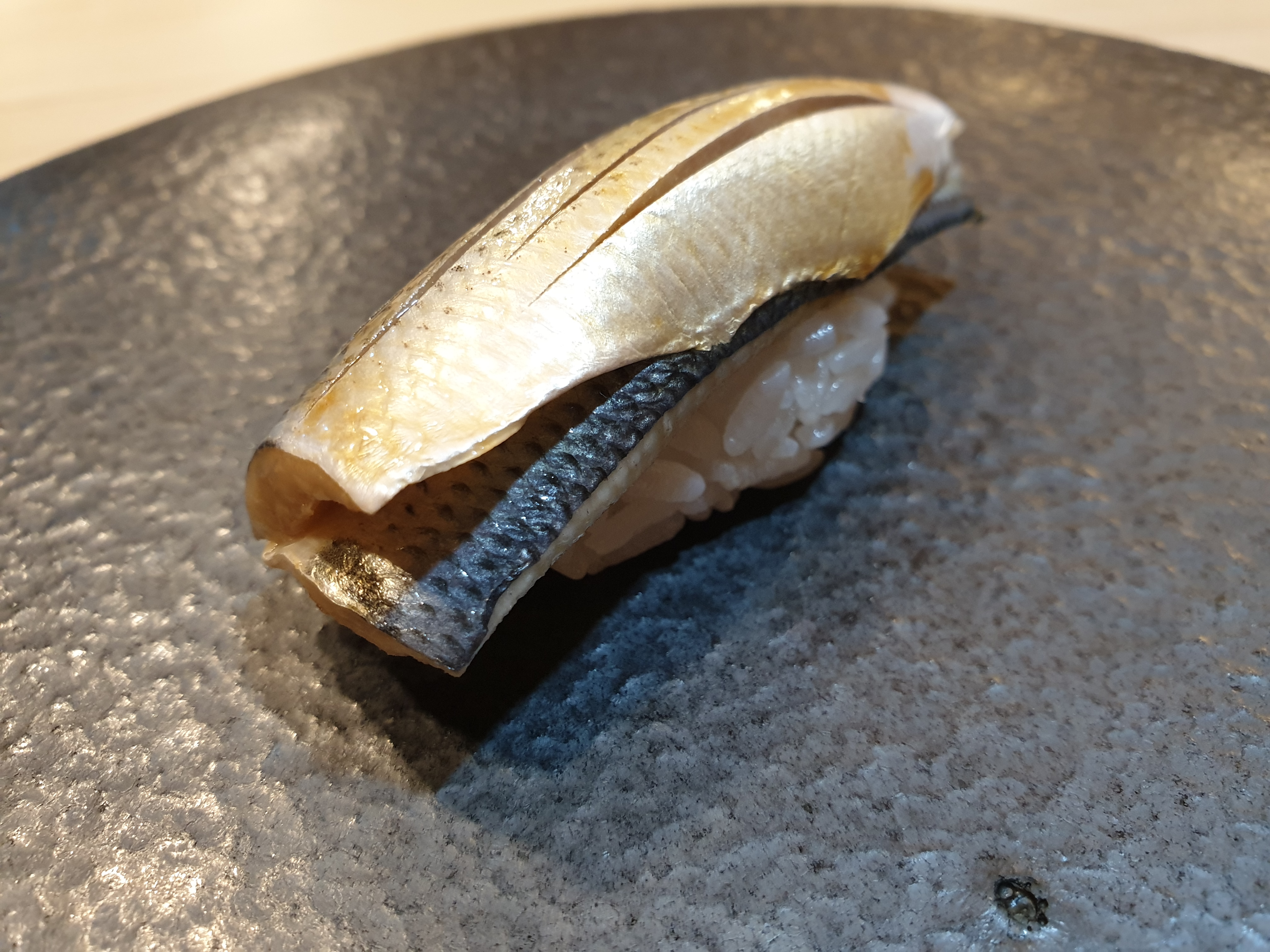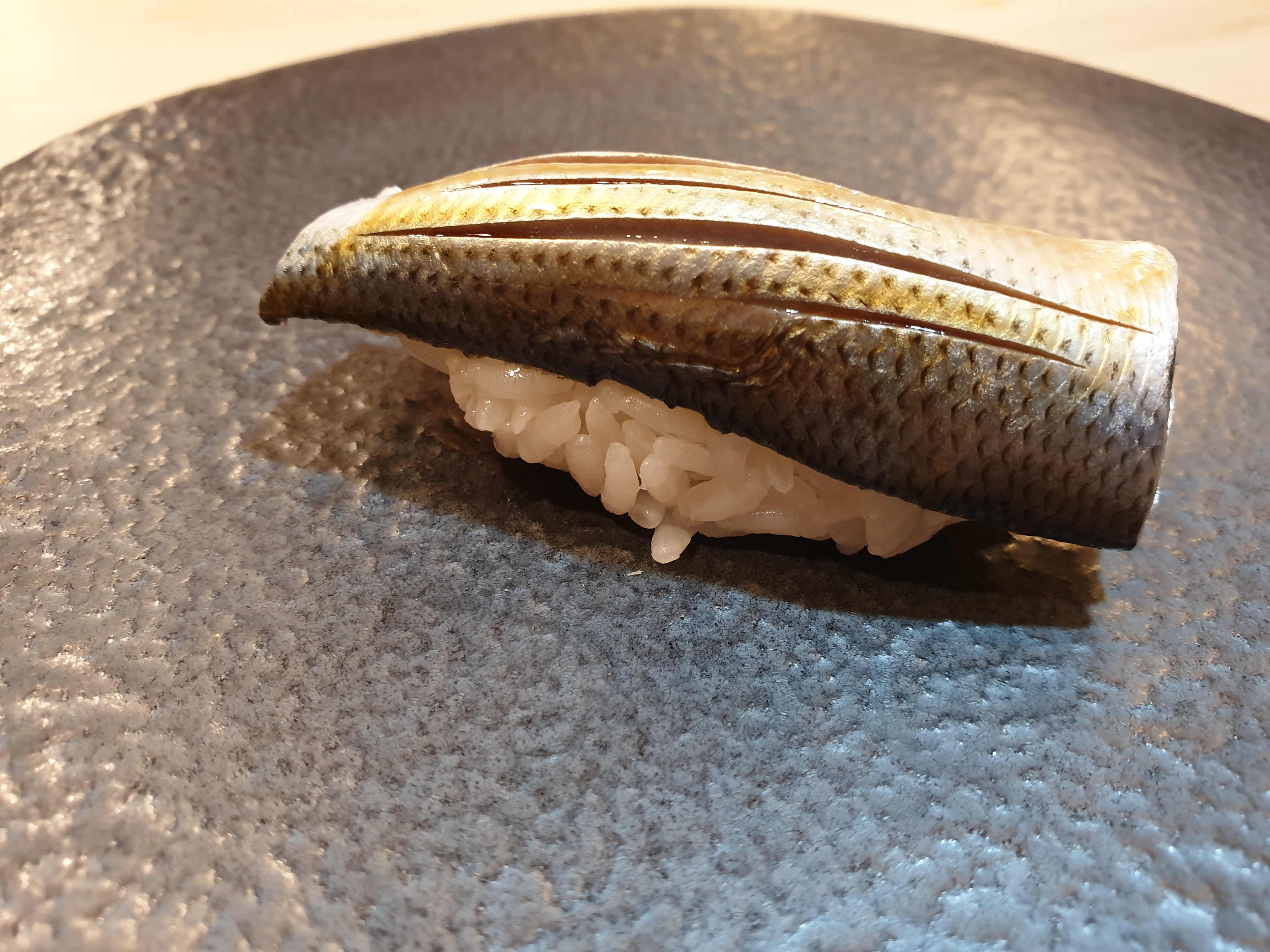 다양한 맛이 나서 맛의 정점이라하는 전갱이초밥입니다. 정말 맛이 좋았습니다. 행복한 맛. 진짜 미친.