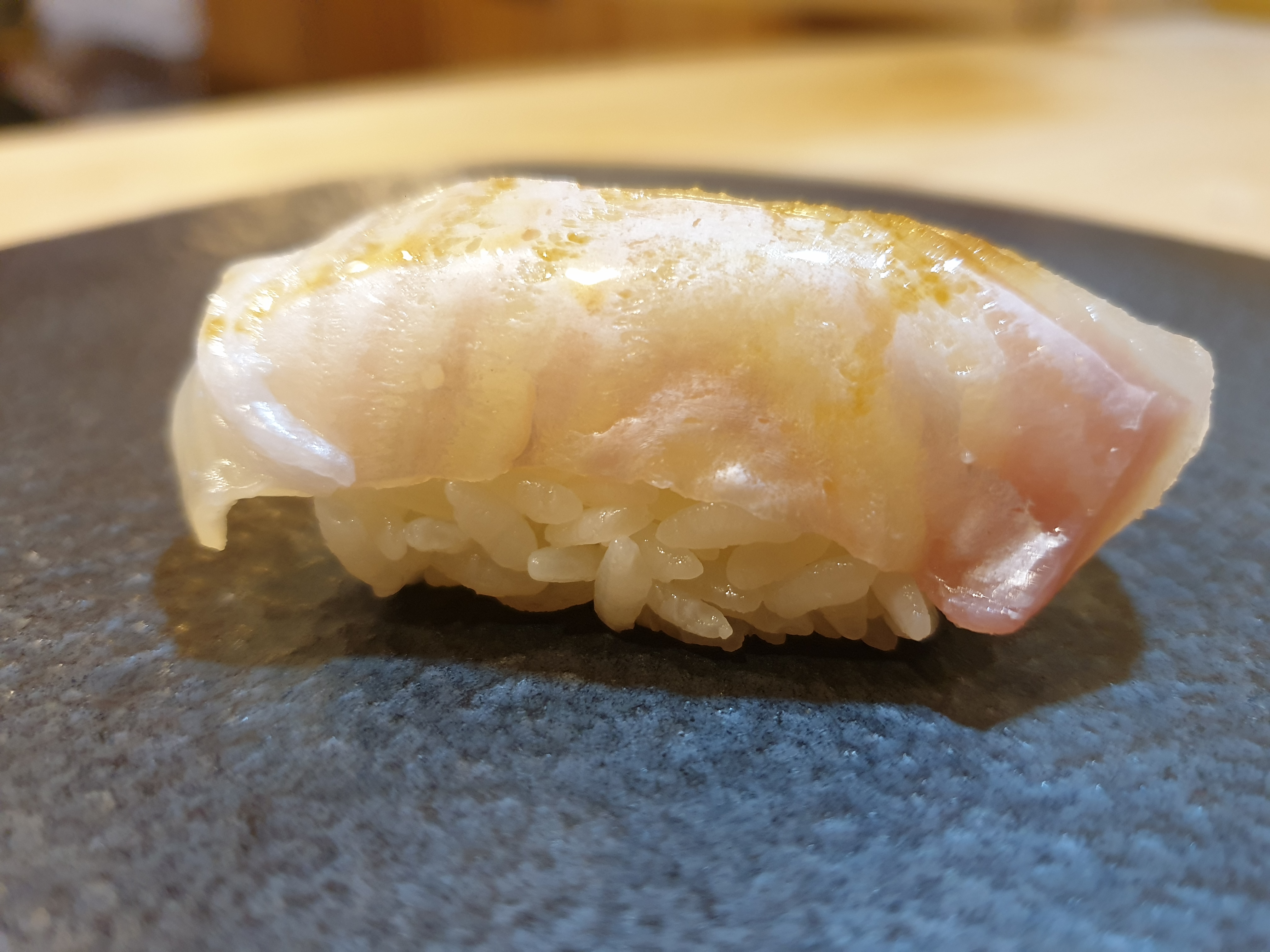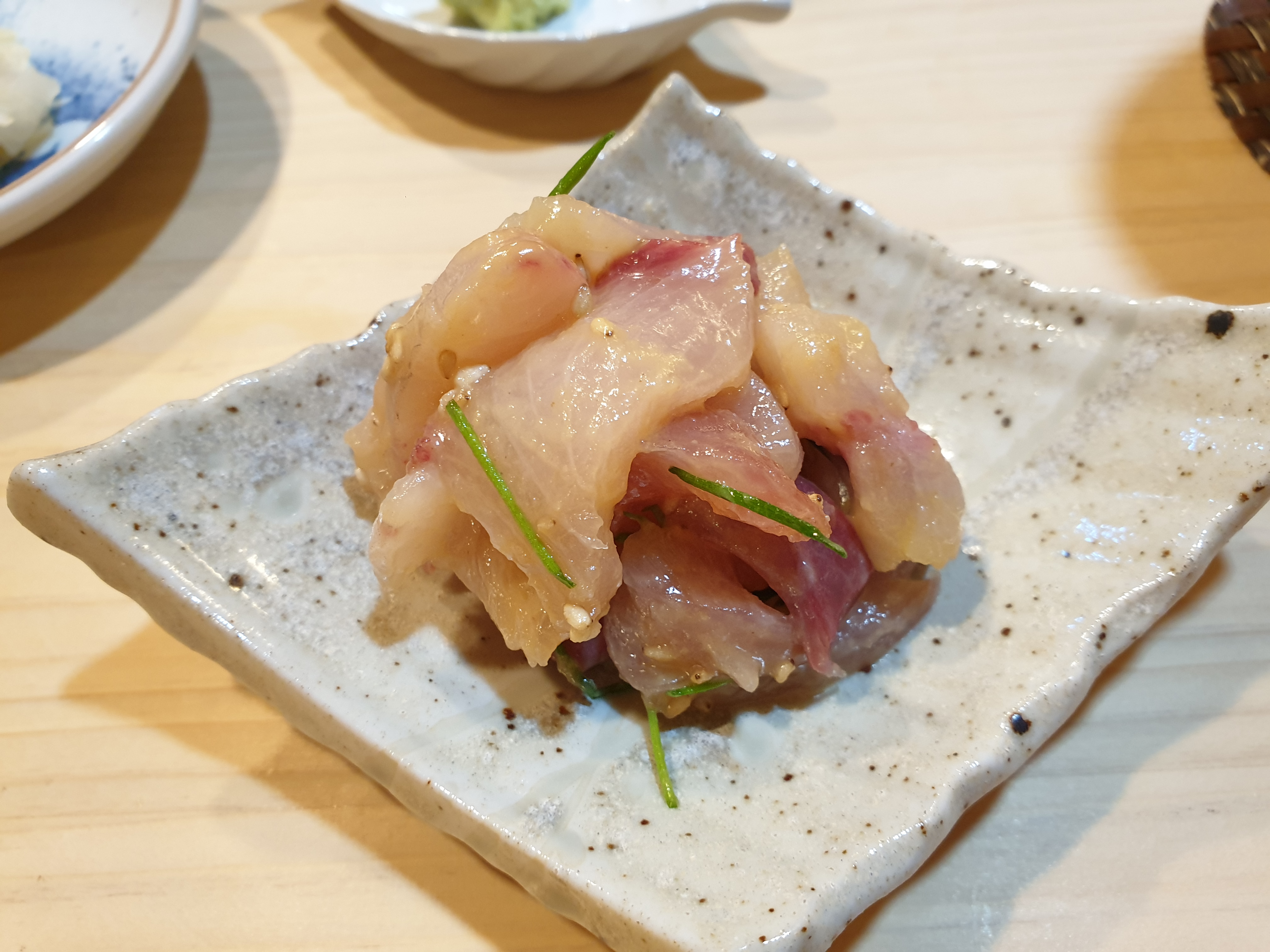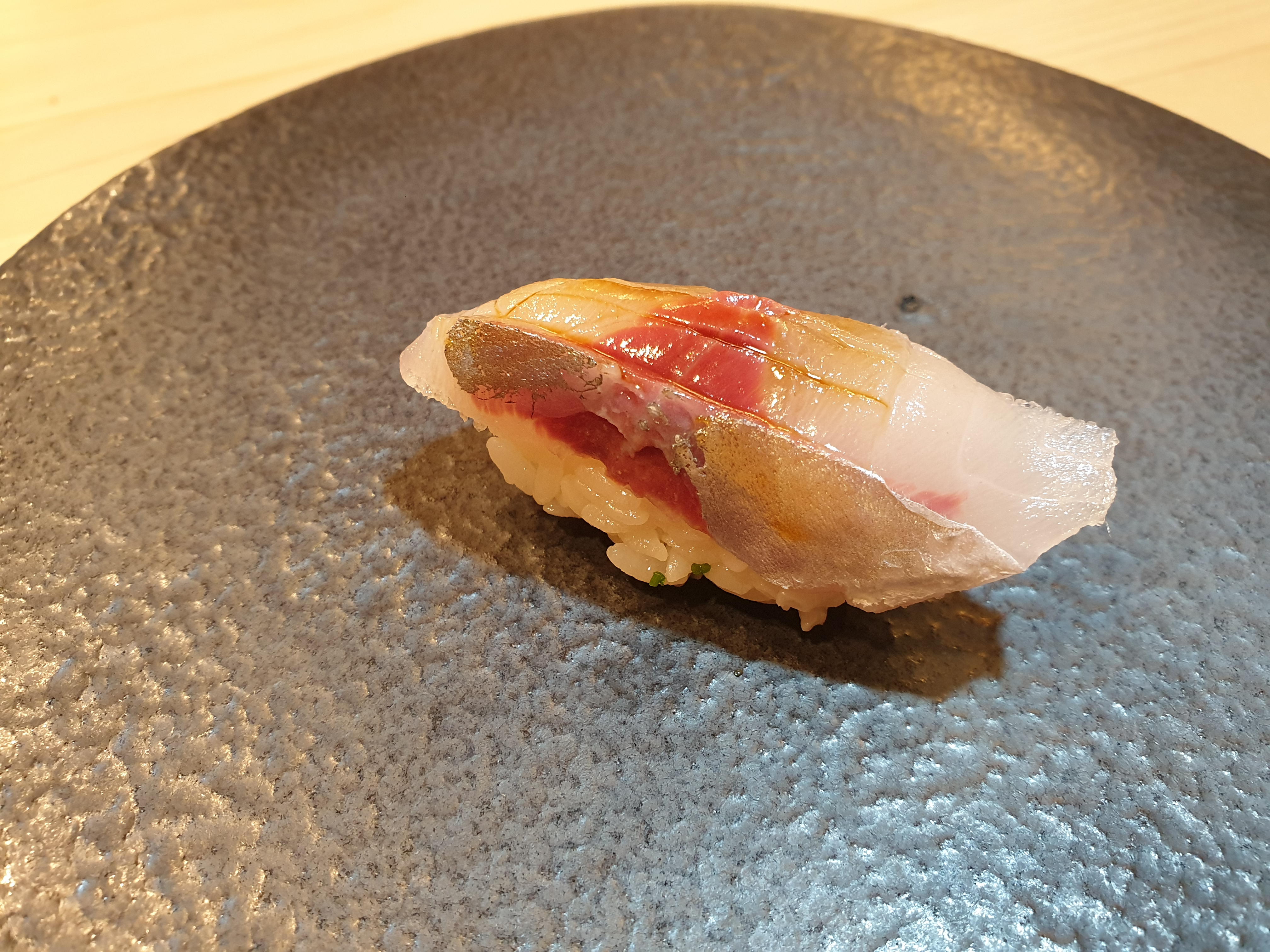 다양한 맛이 나서 맛의 정점이라하는 전갱이초밥입니다. 정말 맛이 좋았습니다. 행복한 맛. 진짜 미친.