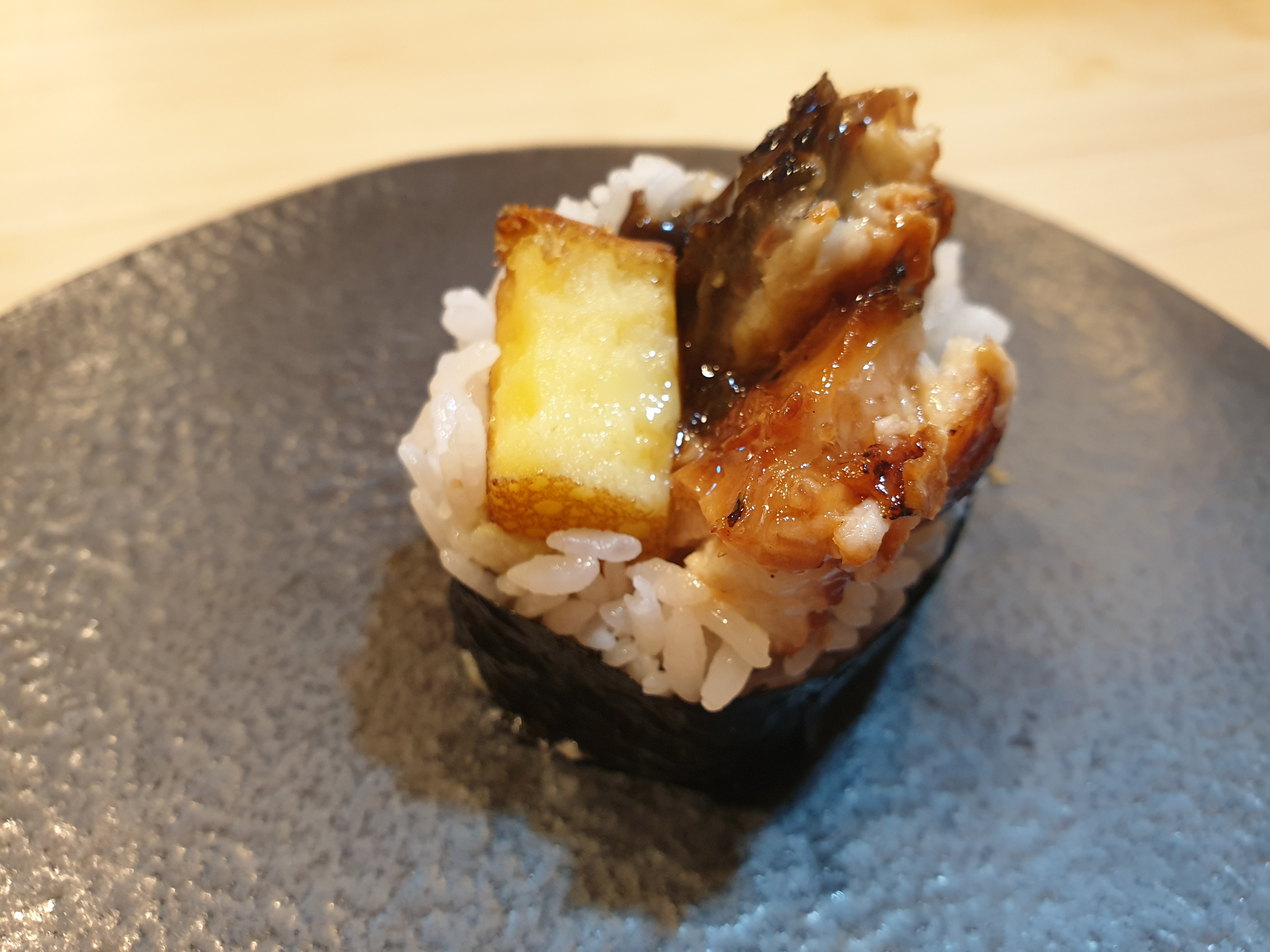 미친 크기의 장어마끼. 너무도 감사하게도 꼬다리를 받게되었습니다. 꼬다리가 제일 맛있다고 생각하는데 제 생각을 읽어주셨나봐요. 한입에 넣으니 입안가득 맛과 향이 차는걸로 모자라서 식감까지 꽉 차버렸습니다. 아주 행복했습니다.