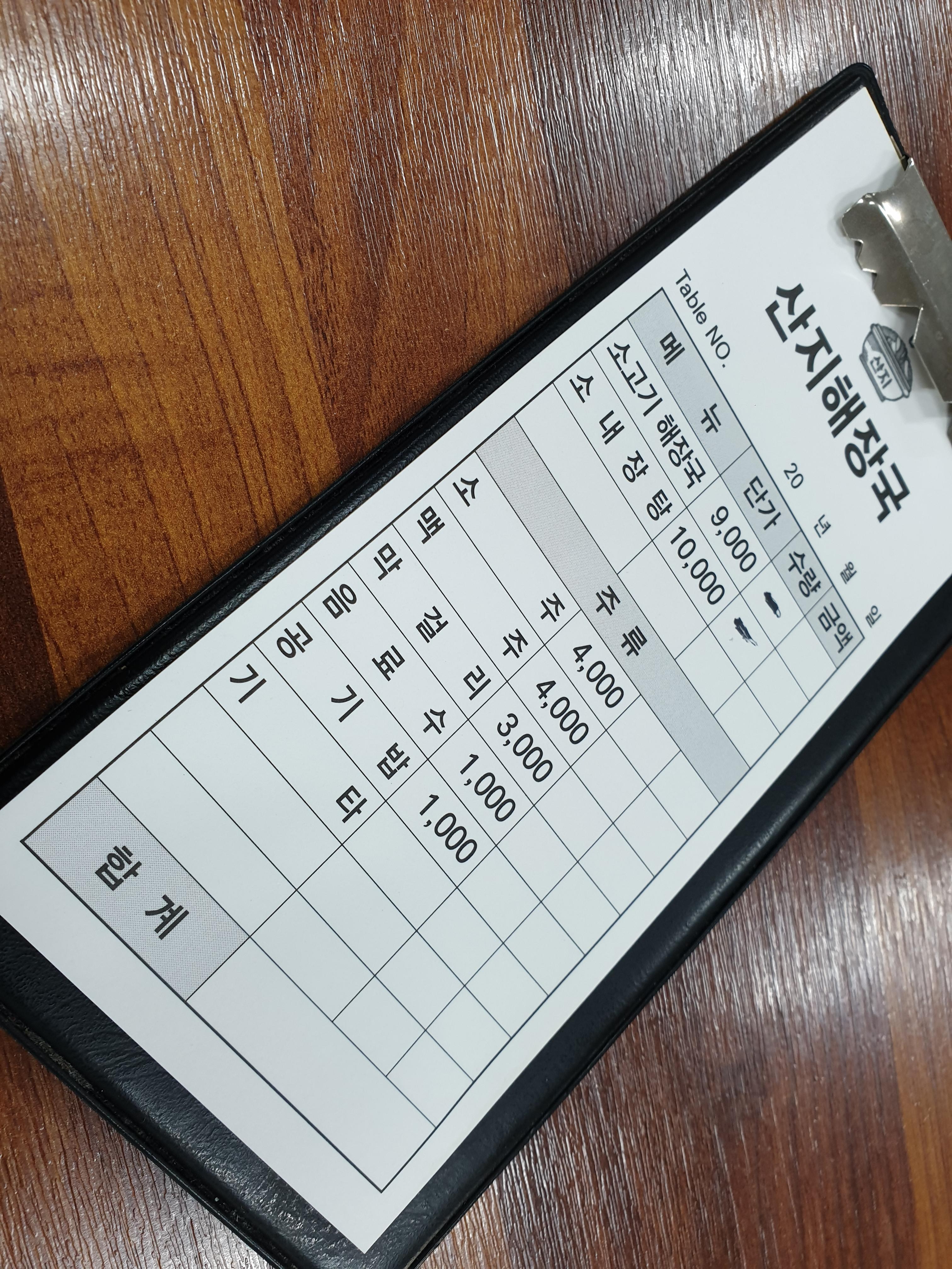 음식 메뉴는 단 둘! 소고기해장국(9,000원)과 소 내 장 탕(10,000원)입니다. 아래는 주류 등 음료메뉴가 있는데 전날 과음한 관계로 눈에 들어오지도 않았습니다.