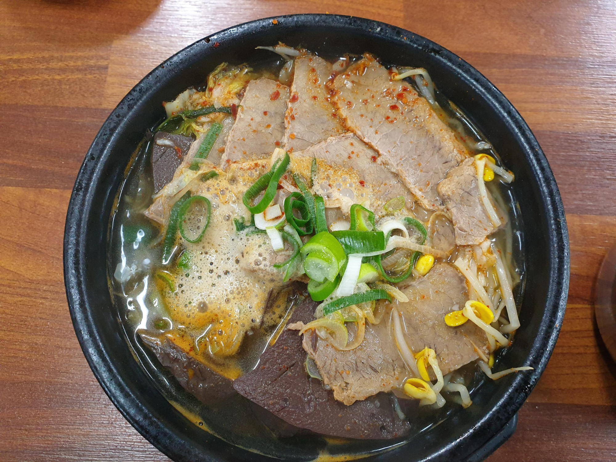 소 내 장 탕(10,000원) 비주얼입니다. 그냥 정신이 아득해지는 비주얼입니다. 맛은 있는데 이게 내장이 너무 많아서 국물이 맑지않고 느끼한 느낌입니다. 소기름이 너무 첨가되어서 그런가 아무튼 그런 느낌입니다. 무겁고 깊다면 그런 느낌이고 속이 안좋은 경우엔 느끼하고 기름지게도 느껴질 수 있습니다.