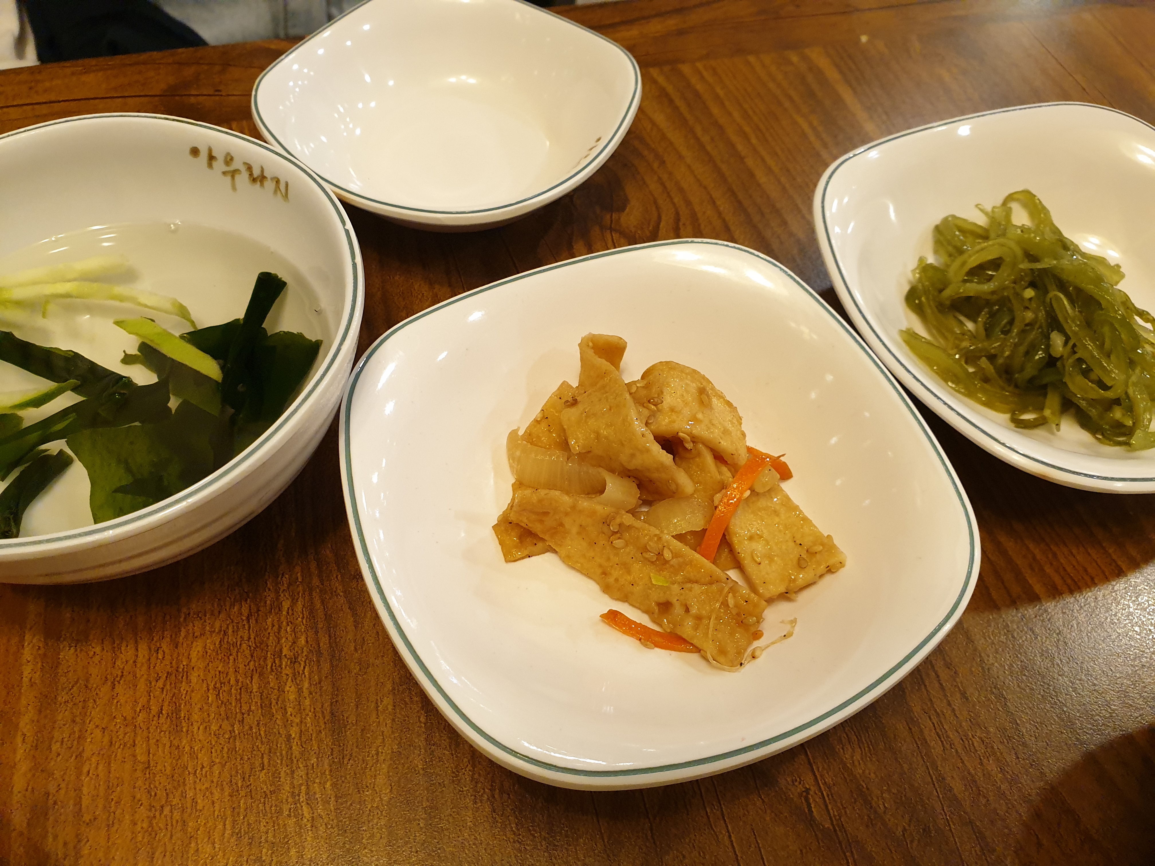 기본 반찬입니다. 반찬은 특이한건 없네요. 맛도 특이한건 없습니다. 반찬으로 올라오는 완두콩 오랜만에 보네요.